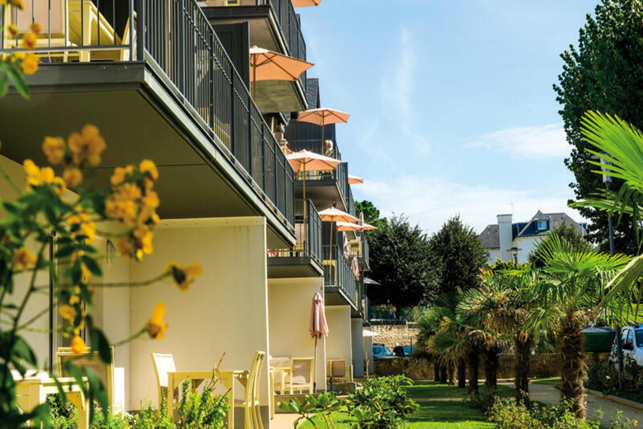 Beliggende i hjertet af Bénodet, en berømt badeby i Bretagne, tilbyder Résidence Les Jardins d'Arvor**** et idyllisk tilflugtssted på spidsen af ??Finistère, kun 50 m fra havet. Med direkte adgang til Trez Beach omfatter denne bolig 134 lejligheder fordelt på seks lave bygninger, hvilket sikrer en perfekt blanding af komfort og bekvemmelighed. Gæsterne kan nyde en halvåben opvarmet swimmingpool, en sauna og et hammam med adgang til rabatbehandlinger på det nærliggende Relais Thalasso, kun 150 m væk, med opvarmede havvandsbassiner, en vandrende flod og aromaterapirum. De rummelige 3-værelses hyttelejligheder kan rumme op til seks personer og byder på en terrasse eller balkon, et fuldt udstyret køkken, et soveværelse med dobbeltseng, et soveværelse med 2 enkeltsenge og en hyggelig hytte med køjesenge. Yderligere funktioner inkluderer et badeværelse, brusebad og to separate toiletter. Der er gratis trådløs internetadgang i hele boligen, og kæledyr under 8 kg er velkomne mod et ekstra gebyr (med begrænsninger). Babysæt kan reserveres på forhånd, og sengetøj og håndklæder leveres til alle gæster. Faciliteterne på stedet inkluderer gratis udendørs parkering (afhængigt af tilgængelighed) og overdækket mod betaling. Gæster kan også nyde ekstraudstyr såsom morgenmad, skift af sengetøj og slutrengøring. Med sin førsteklasses beliggenhed nær øgruppen Glénans tilbyder ejendommen nem adgang til lokale attraktioner og uendelige muligheder for afslapning, hvilket gør den til den perfekte base for en mindeværdig Bretagne-ferie.