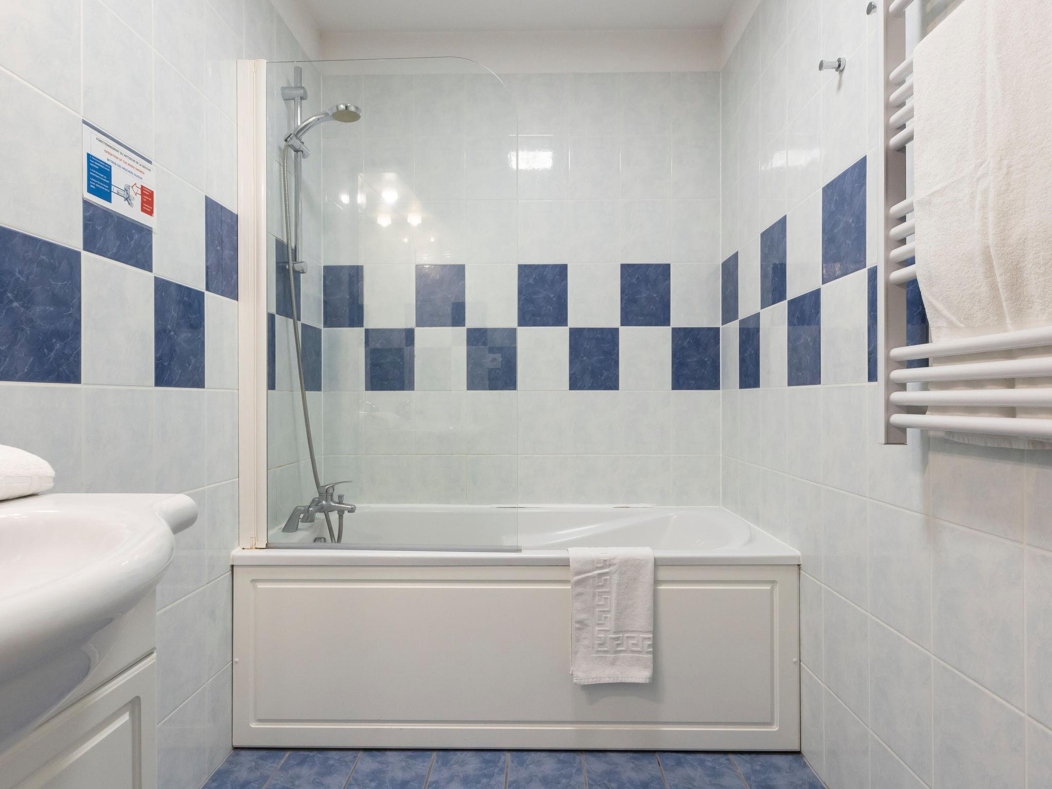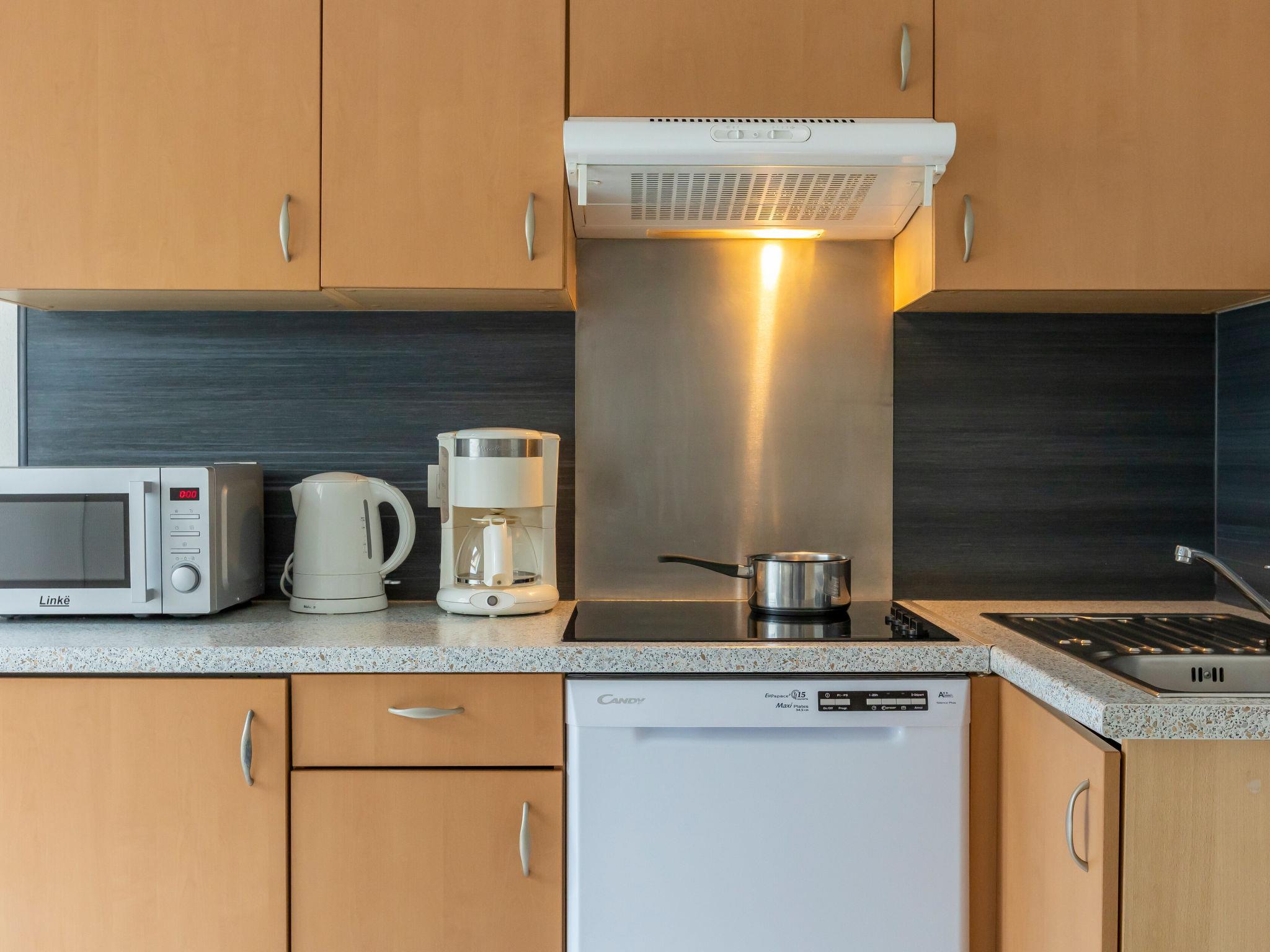 "Odalys Référence Le Domaine des Rois", 2-room apartment 38 to 40 m2. Simple furnishings: living/dining room with 1 pull-out bed (2 pers.). 1 room with 2 sleeping facilities. Sleeping alcove with 2 sleeping facilities. Kitchenette (dishwasher, 2 ceramic glass hob hotplates, microwave). Bathroom, sep. WC. Electric heating. Balcony or terrace. Facilities: baby cot (extra). Internet (WiFi, free). Maximum 1 pet/ dog allowed. The property is one of a type of property or apartment.