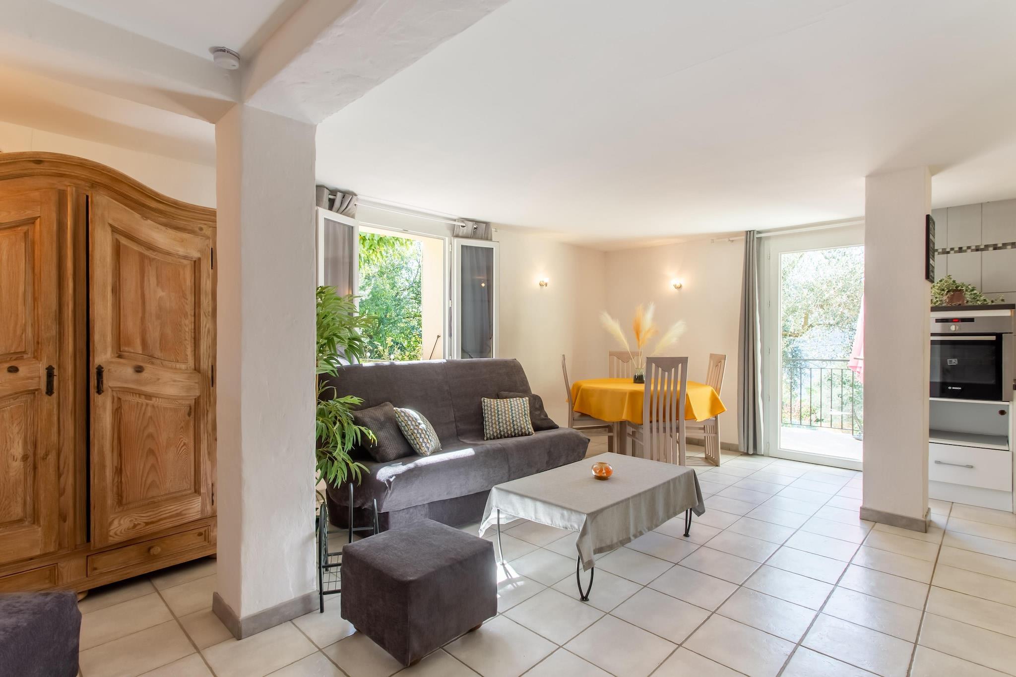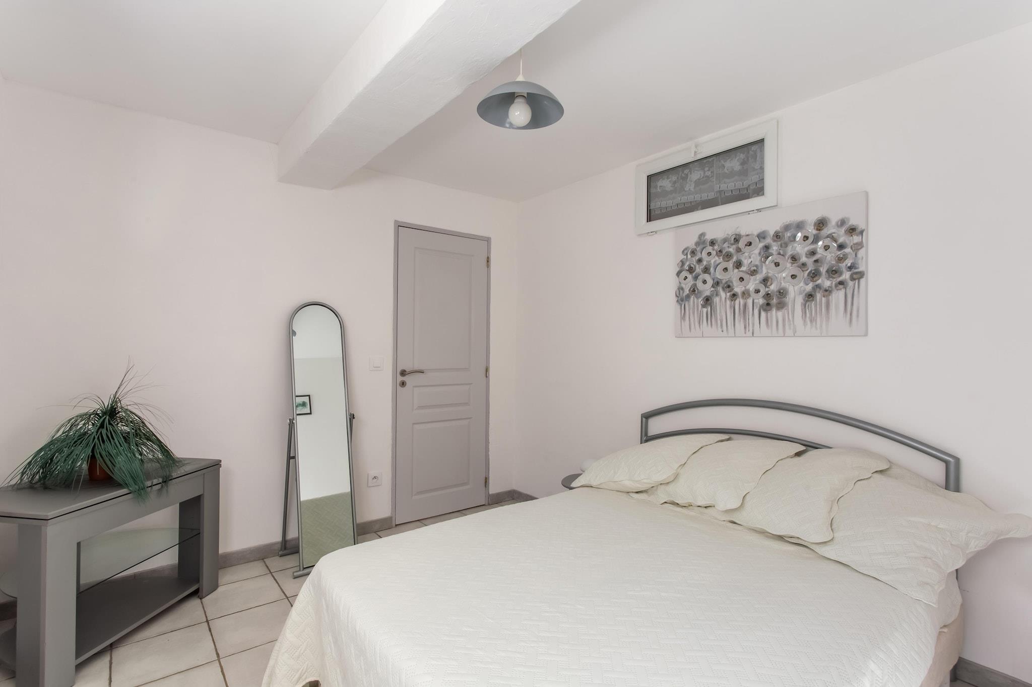 Dette hyggelige feriehus i Berre-Les-Alpes er ideelt for op til 5 gæster, og tilbyder en fredelig flugt i bakkerne i Provence-Côte d'Azur. Stueetagen byder på et fuldt udstyret åbent køkken, en komfortabel stue/spisestue med internationalt tv og dvd-afspiller, to soveværelser - heraf et med en 3-personers køjeseng - og et badeværelse med bruser. Elektrisk varme og insektnet sikrer komfort året rundt, mens gratis Wi-Fi og kæledyrsvenlige faciliteter gør det perfekt til familier. Træd udenfor for at nyde en indhegnet 500m² have med møbler, en solrig terrasse og privat parkering. Uanset om du nipper til kaffe ved havedørene eller spiser udendørs, inviterer hjemmets rolige omgivelser til afslapning. En vaskemaskine tilføjer bekvemmelighed til længere ophold. I nærheden kan gæsterne udforske tennisbaner (6 km), Pool Claude Jouve (6 km) og golfbaner (30 km). Havet ligger kun 20 km væk, og lokale restauranter og butikker ligger inden for 2 km. Med sin blanding af komfort, natur og tilgængelighed er dette hjem en charmerende base for at opdage den franske riviera.