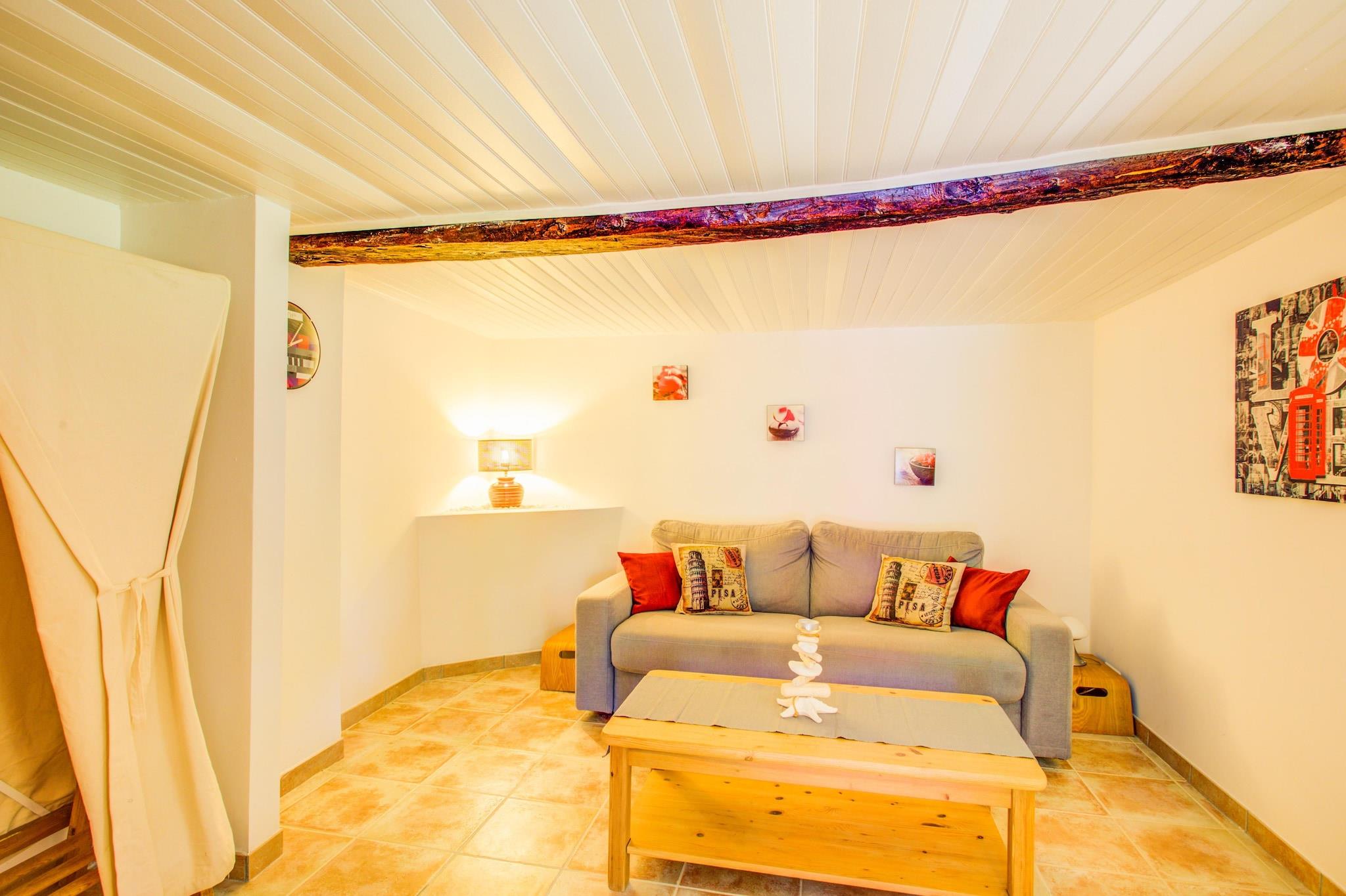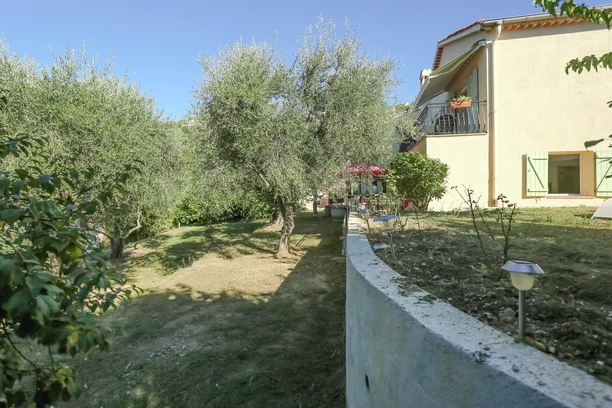 Dette kæledyrsvenlige feriehus i Berre-les-Alpes er et charmerende tilflugtssted for op til 4 gæster, der blander enkelhed og komfort i rolige omgivelser. Stueetagen har en hyggelig stue med en dobbelt sovesofa, tv med internationale kanaler, dvd- og cd-afspillere og en separat spiseplads til intime måltider. Køkkenet er veludstyret med komfur, ovn, mikroovn, opvaskemaskine, køleskab og vaskemaskine, og byder på alt det nødvendige for et afslappende ophold. Ovenpå finder gæsterne et fredeligt soveværelse med dobbeltseng og et badeværelse med bruser og toilet. Insektskærme i hele hjemmet giver ekstra komfort, mens den private indhegnede have (500m²) indbyder til udendørs nydelse med sin terrasse, havemøbler og plads til kæledyr at gå frit omkring. Gratis Wi-Fi er tilgængelig, hvilket gør det nemt at holde forbindelsen på dette landlige tilflugtssted. Beliggende i hjertet af Provence-Côte d'Azur-regionen tilbyder boligen adgang til tennisbaner og en offentlig pool kun 6 km væk, mens det glitrende Middelhav ligger 20 km fra dit dørtrin. Lokale restauranter og butikker er en kort 2 km kørsel, der giver en smag af fransk gæstfrihed uden travlhed. Perfekt til par eller små familier, der søger fred, privatliv og et stykke rustik charme.