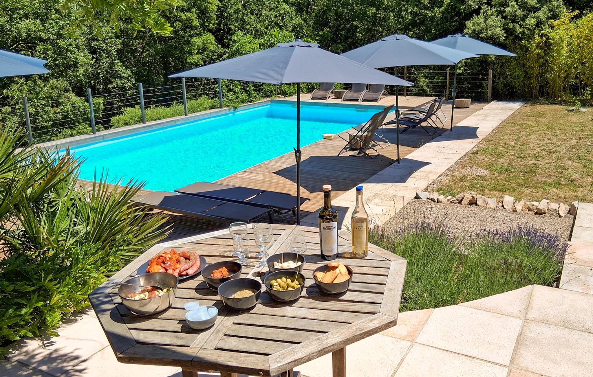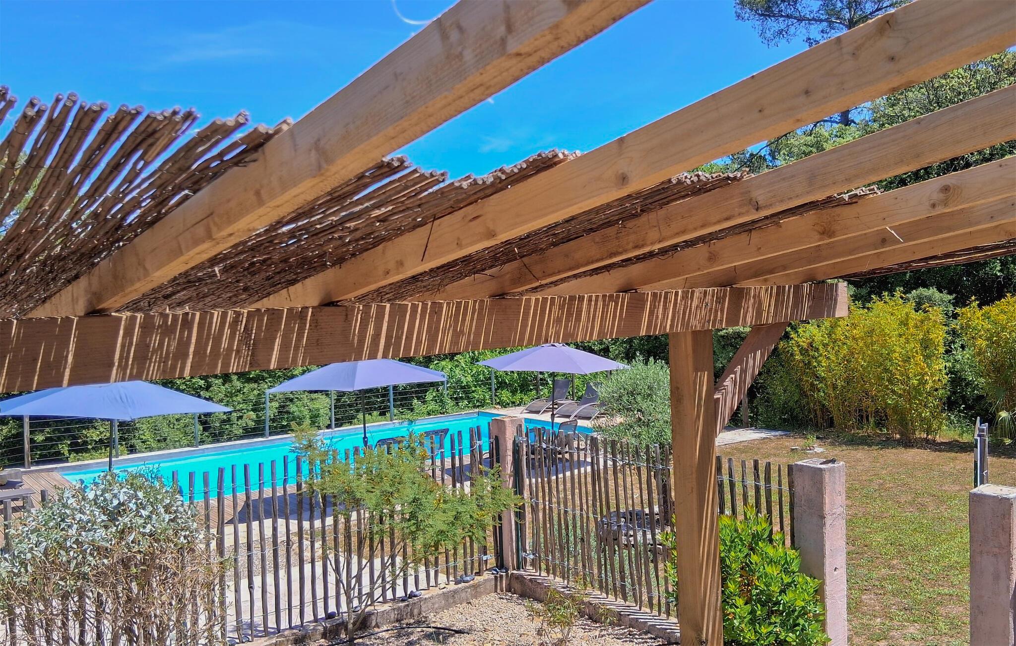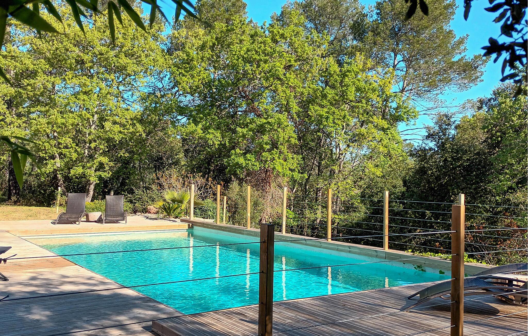 Nyd afslappende dage i dette charmerende feriehus med adgang til pool. Dette velholdte og smagfuldt indrettede hus er ideelt til en afslappende ferie i solrige Provence, omgivet af idyllisk natur. Tilbered jeres yndlingsretter, planlæg jeres aktiviteter over afslappende måltider, og slap af på sofaen med en bog eller et brætspil efter en lang dag. Lyt til cikadernes kvidren, mens I nyder morgenmaden på jeres skyggefulde terrasse og tag en forfriskende dukkert i den dejlige fælles pool. Nyd den fredelige atmosfære med en siesta på en liggestol og snak i de lune sommeraftener ved livlige grillfester. Vandr gennem de bølgende bakker i Massif des Maures og besøg historiske landsbyer som Le Luc eller Flassans-sur-Issole. Slentr gennem markedet i Besse-sur-Issole, prøv provencalske specialiteter og kig efter håndlavede varer. Tag en dagstur til Middelhavet nær Hyères, kør gennem de skovklædte dale eller udforsk Argens-floden på en kanotur.