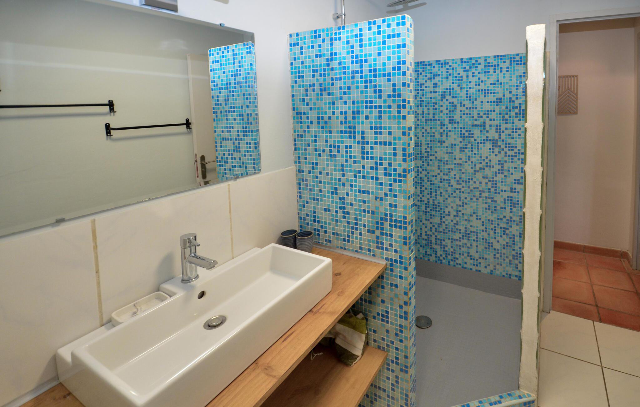 Nyd afslappende dage i dette charmerende feriehus med adgang til pool. Dette lyse og indbydende hus er ideelt for par eller små familier, der ønsker at slippe væk fra hverdagens rutiner og nyde en afslappende ferie omgivet af idyllisk natur i solrige Provence. Tilbered jeres yndlingsretter, planlæg jeres aktiviteter over afslappende måltider, og slap af på sofaen med en bog eller et brætspil efter en lang dag. Lyt til cikadernes kvidren, mens I spiser morgenmad på jeres skyggefulde terrasse, og tag en forfriskende dukkert i den dejlige fælles pool. Nyd den fredelige atmosfære med en siesta på en liggestol, og snak i timevis ved stemningsfulde grillaftener på lune sommeraftener. Vandr gennem de bølgende bakker i Massif des Maures, og besøg historiske landsbyer som Le Luc eller Flassans-sur-Issole. Slentr gennem markedet i Besse-sur-Issole, prøv provencalske specialiteter, og kig efter håndlavede varer. Tag en dagstur til Middelhavet nær Hyères, kør gennem de skovklædte dale, eller udforsk Argens-floden på en kanotur.