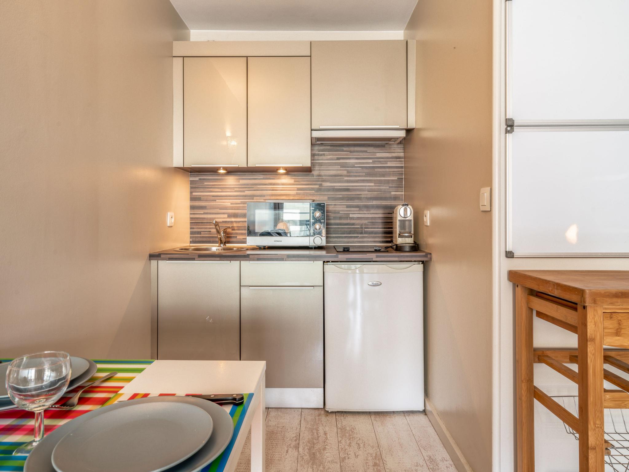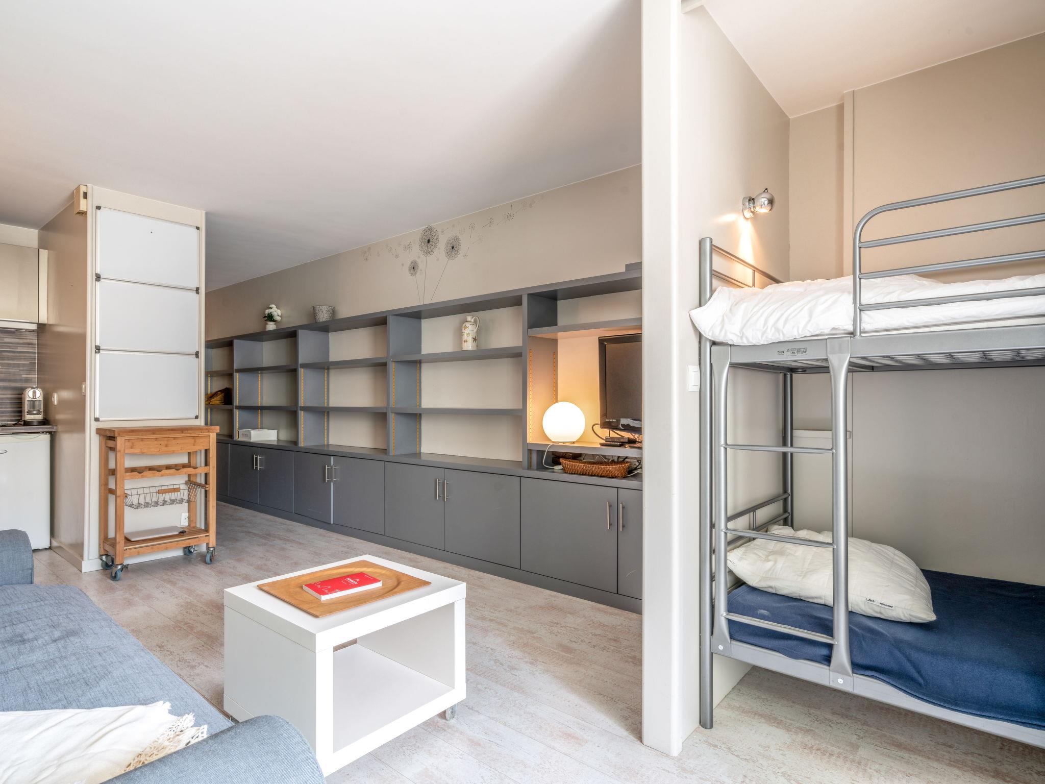1-room studio 32 m2 on 4th floor. Object suitable for 2 adults + 2 children. Modern furnishings: living/dining room with 1 double sofabed (140 cm, length 190 cm), TV (flat screen). Exit to the loggia. Alcove, 2 bunk beds (90 cm, length 190 cm). Open kitchen (2 ceramic glass hob hotplates, microwave, electric coffee machine, Capsules for coffee machine (Nespresso) extra). Shower/WC. Balcony furniture, covered balcony. View of the resort. Facilities: hair dryer. Internet (WiFi, free). Please note: smoke alarm. Instead of an enclosed bedroom, some sleeping areas are located in an open-plan area (gallery, alcove, etc.). 641220014635C