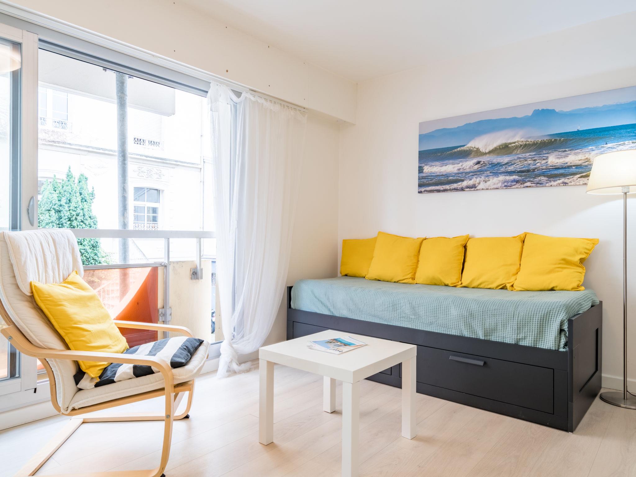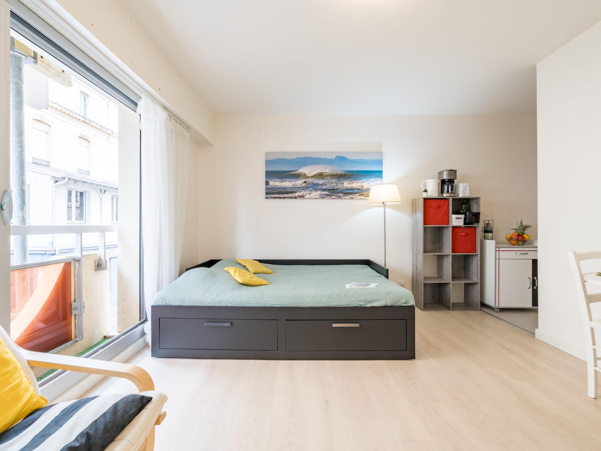 1-room studio 26 m2 on 1st floor. Bright, comfortable furnishings: living/sleeping room with 2 pull-out beds (2 x 80 cm, length 190 cm). Kitchenette (dishwasher, toaster, kettle, microwave, electric coffee machine). Shower/WC. Electric heating. Facilities: washing machine, iron, hair dryer. Internet (WiFi, extra). Please note: non-smokers only. Smoke alarm. Offer by a private individual according to Art. 155, IV of CGI. 64122004199BC