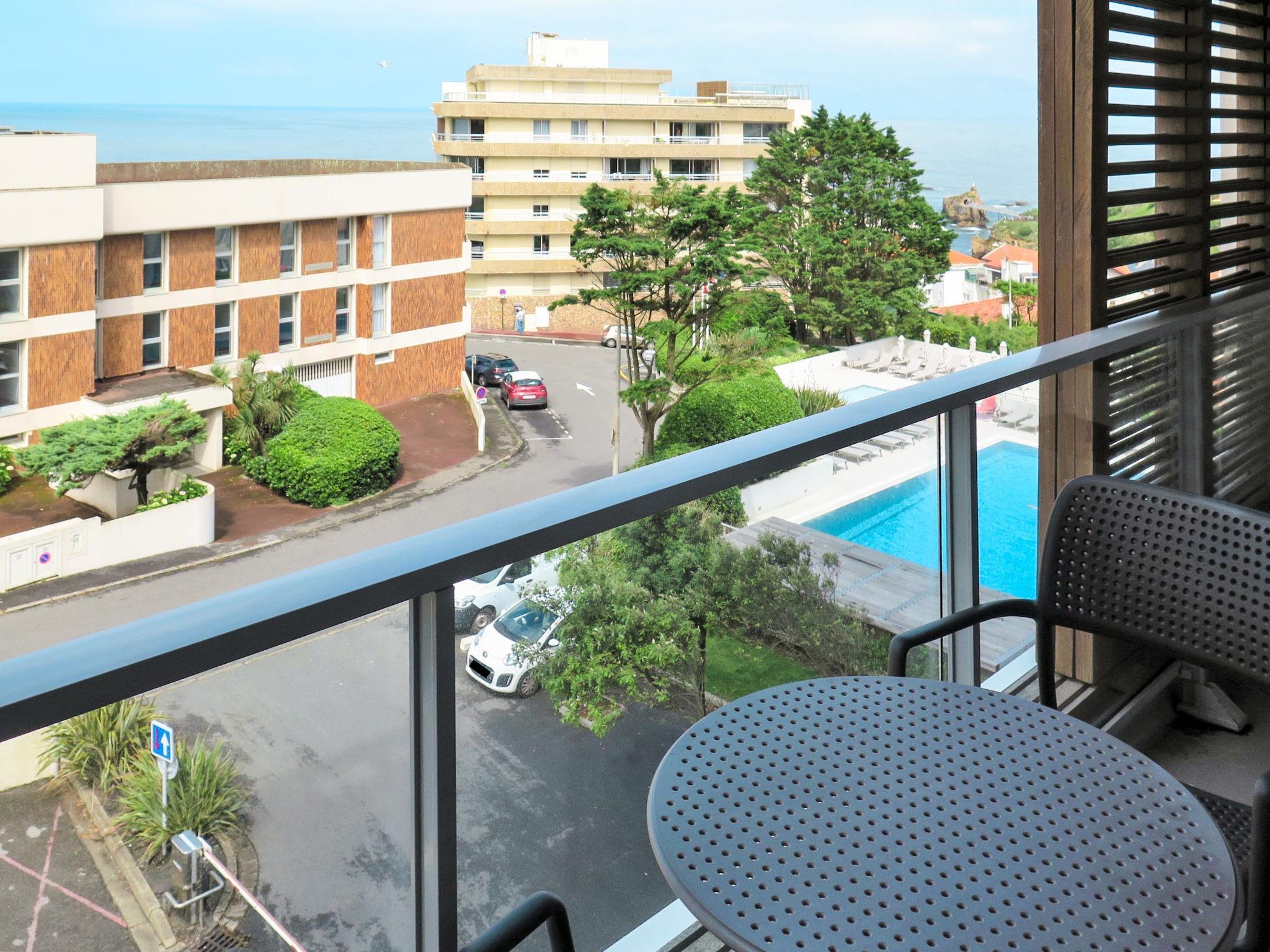 Child friendly resort "Le Grand Large", 8 storeys. 2 houses in the resort. 118 apartments in the residence. In the centre of Biarritz 100 m from the centre of Biarritz, in a central position, 300 m from the sea. For shared use: swimming pool fenced (17 x 8 m, depth 185 - 230 cm, seasonal availability: 05.Feb. - 05.Nov.). Children's pool, table tennis, boccia, terrace. In the complex: reception, restaurant, bar, internet access, WiFi, table tennis, lift, washing machine, tumble dryer (for shared use, extra). Breakfast possible (extra). Parking (extra), communal covered parking (extra). Grocery 300 m, sandy beach "Plage du Port-Vieux" 300 m. Please note: the photograph shows a typical example. The holiday properties may differ in living space, floorplan, equipment and furnishing.