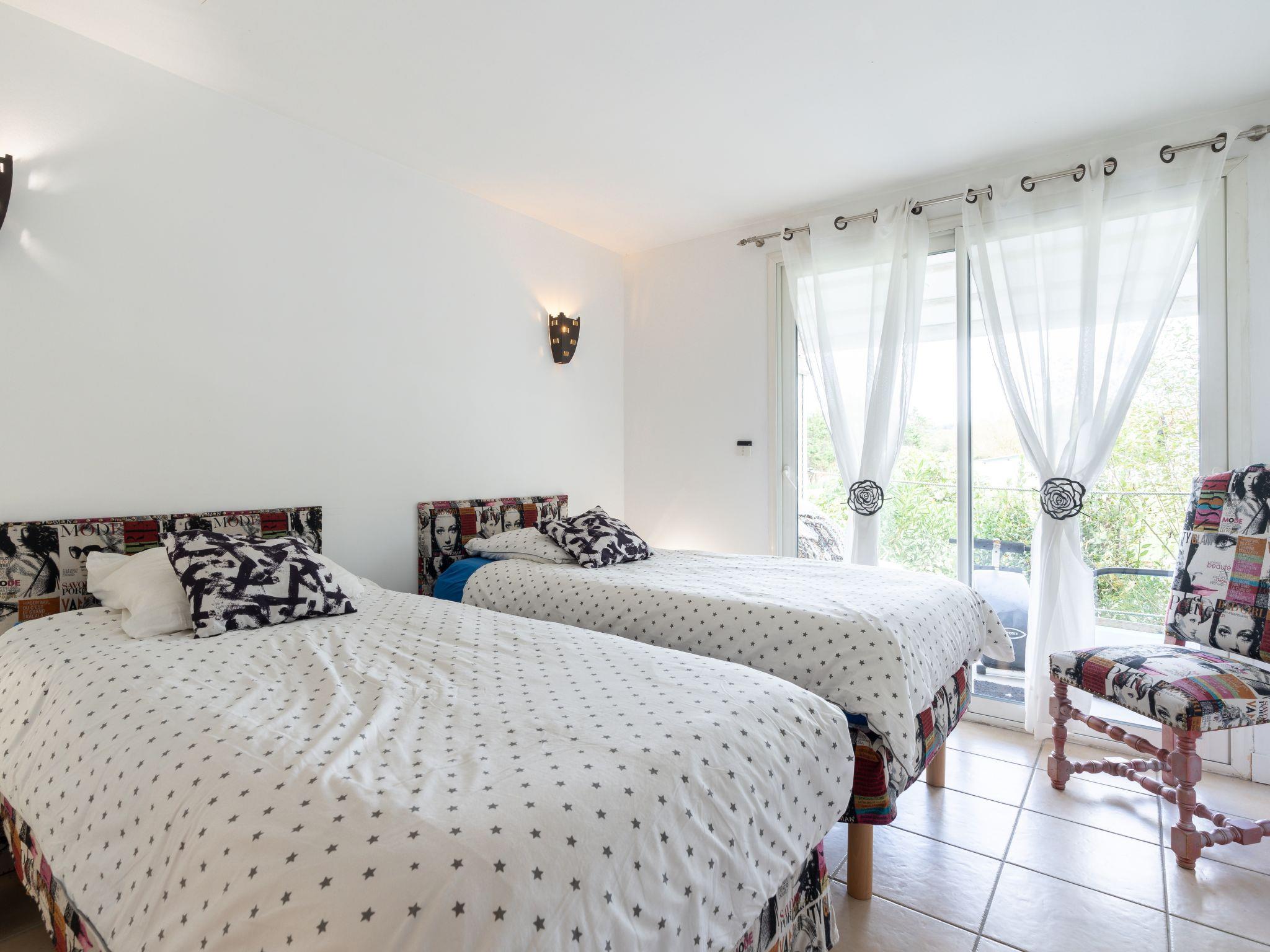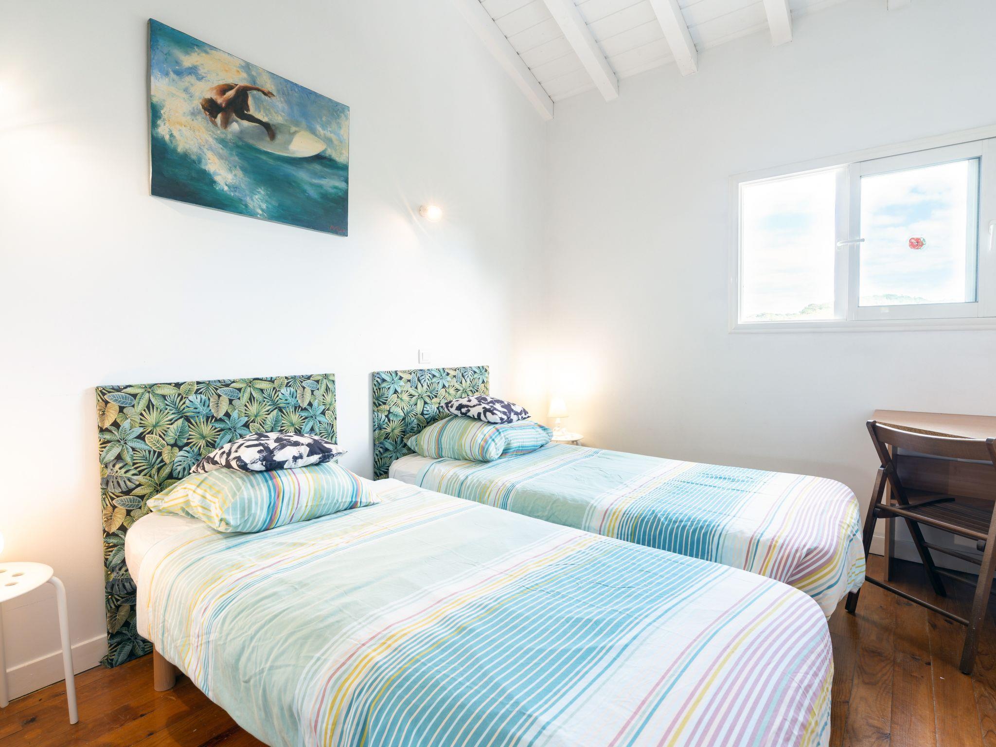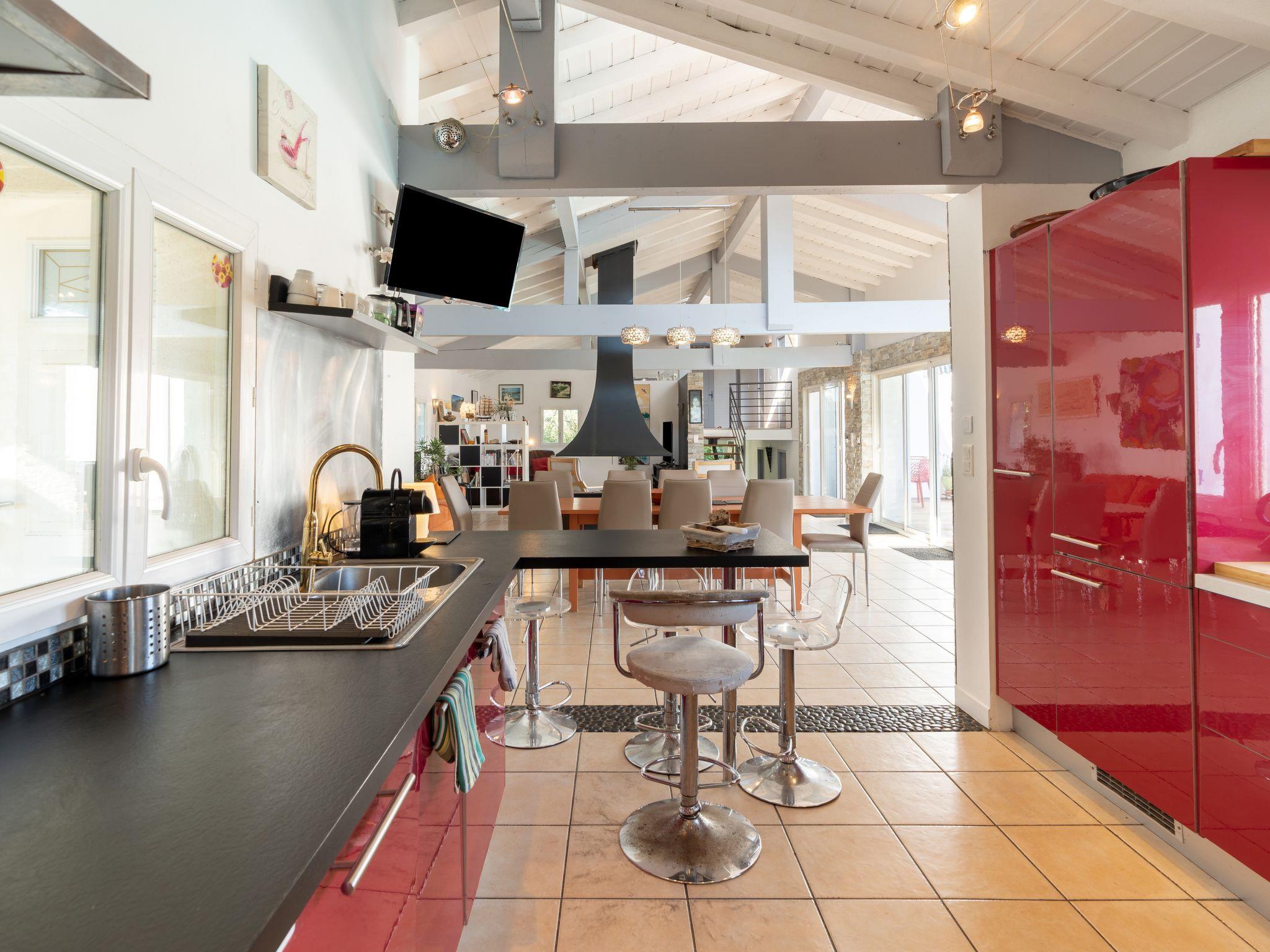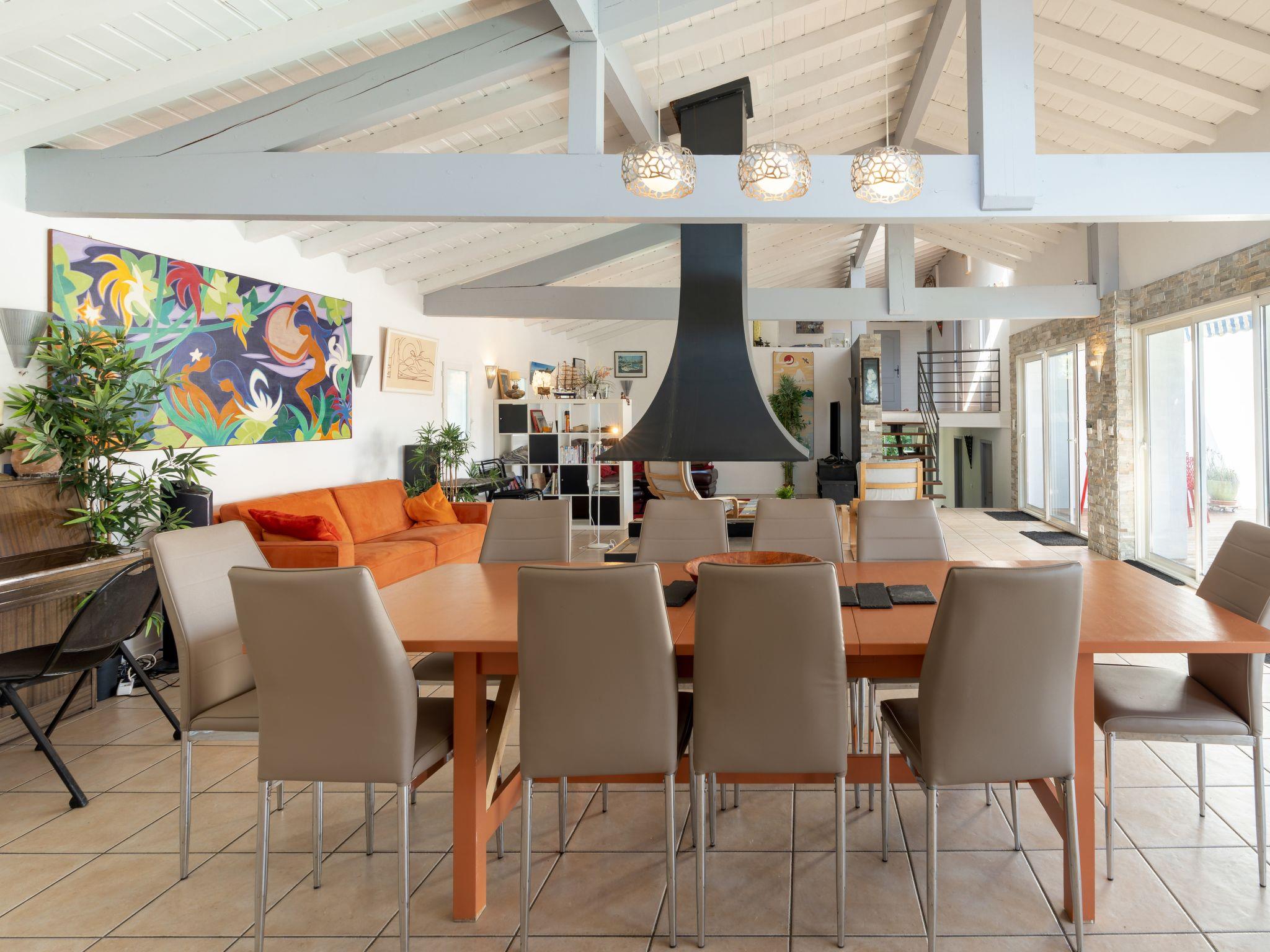 7-room villa 300 m2 on 3 levels. Comfortable and beautiful furnishings: living/dining room with panoramic window with TV (flat screen), hi-fi system. Kitchen (oven, dishwasher, 4 ceramic glass hob hotplates, toaster, kettle, electric coffee machine, Capsules for coffee machine (Nespresso) extra) with TV (flat screen). On the lower ground floor: 2 rooms, each room with 2 beds (90 cm, length 190 cm), bath/WC and gas heating. Exit to the terrace. 1 room with 1 french bed (160 cm, length 200 cm), bath/WC. Exit to the terrace. Upper floor: 3 rooms, each room with 1 bed (90 cm, length 190 cm), 1 french bed (140 cm, length 190 cm), shower/WC and TV (flat screen). Exit to the balcony. Balcony 8 m2, large terrace 140 m2. Terrace furniture, balcony furniture, deck chairs (7). Facilities: washing machine, dryer, iron, baby cot, hair dryer. Internet (WiFi, free). Parking (3 cars), garage (2 cars). Please note: maximum 1 pet/ dog allowed. Smoke alarm. The owner provides 2 electric bikes + 7 bikes + 1 canoe + 2 foam surfboards + 1 inflatable stand up paddle. Offer by a private individual according to Art. 155, IV of CGI. 64125000101AE
