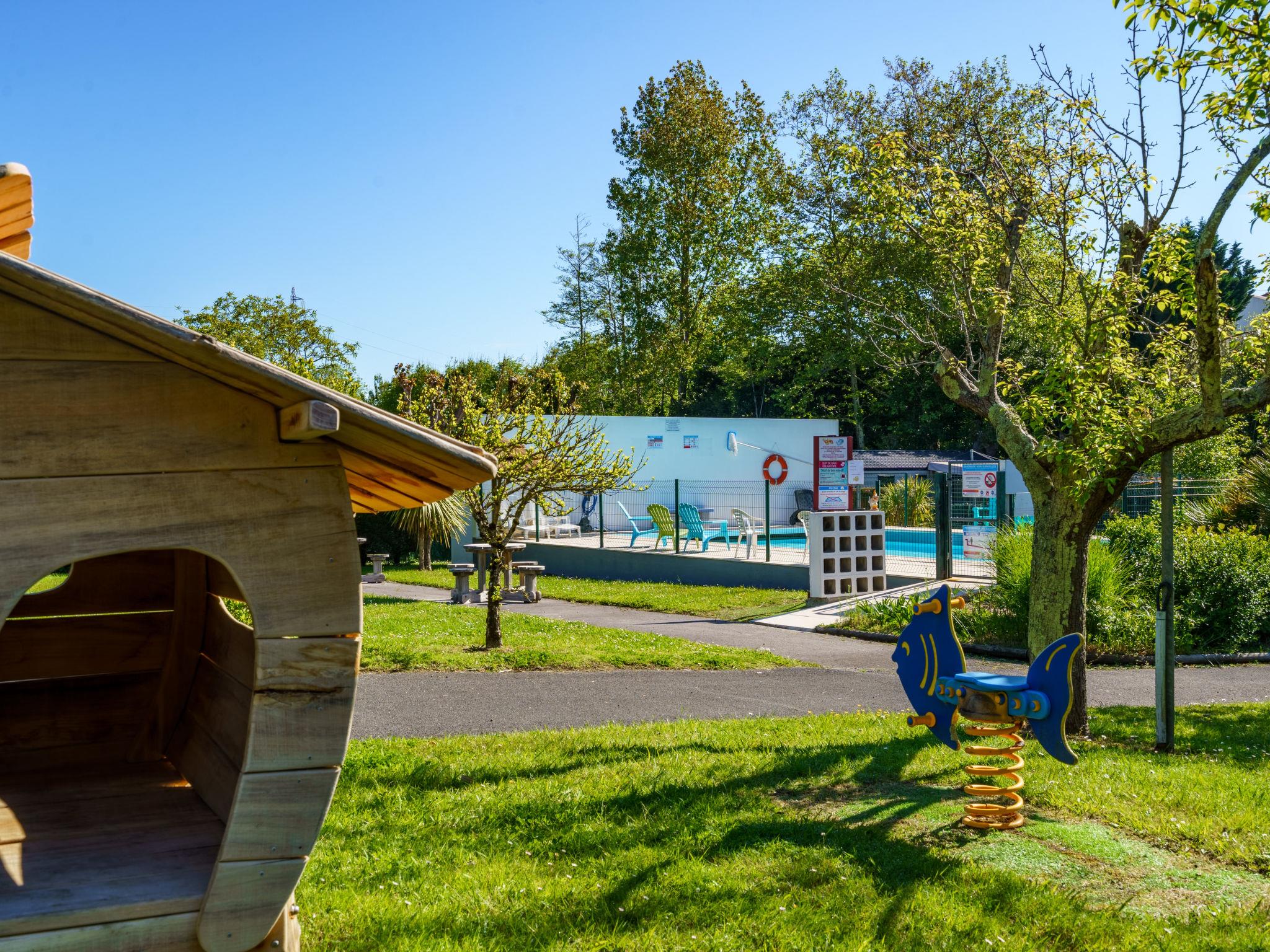 Resort "Les 7 Nains". 7 houses in the resort. In a quiet position, 800 m from the sea, 800 m from the beach, in a cul-de-sac. For shared use: garden (fenced), swimming pool angular (6 x 12 m, seasonal availability: 04.Apr. - 03.Oct. pool opening hours: 10:00-18:00). Table tennis, boccia, barbecue house, children's playground, pool maintenance by the owner/gardener. In the house: washing machine (for shared use). Shop, grocery 500 m, supermarket 3.5 km, shopping centre 3.5 km, restaurant 500 m, bar 800 m, bakery 500 m, café, bicycle rental 450 m, bus stop "Estalo" 350 m, railway station "Biarritz" 7 km, sandy beach "Parlementia" 800 m (small), thermal baths "Thalmar" 6 km. Golf course (9 hole) 5.3 km, surf school 800 m. Nearby attractions: Port de Guéthary 1 km, Musée Saraleguinea 1.1 km, Bida'Parc 1.2 km, Moulin de Bsssilour 3.3 km, Cité de l'Océan 4.7 km, Musée de la Mer 8.5 km. Hiking paths: La Rhune 16 km. Please note: suitable for families. The owner does not accept any groups. The owner lives on the same property. Additional accommodations can be booked.