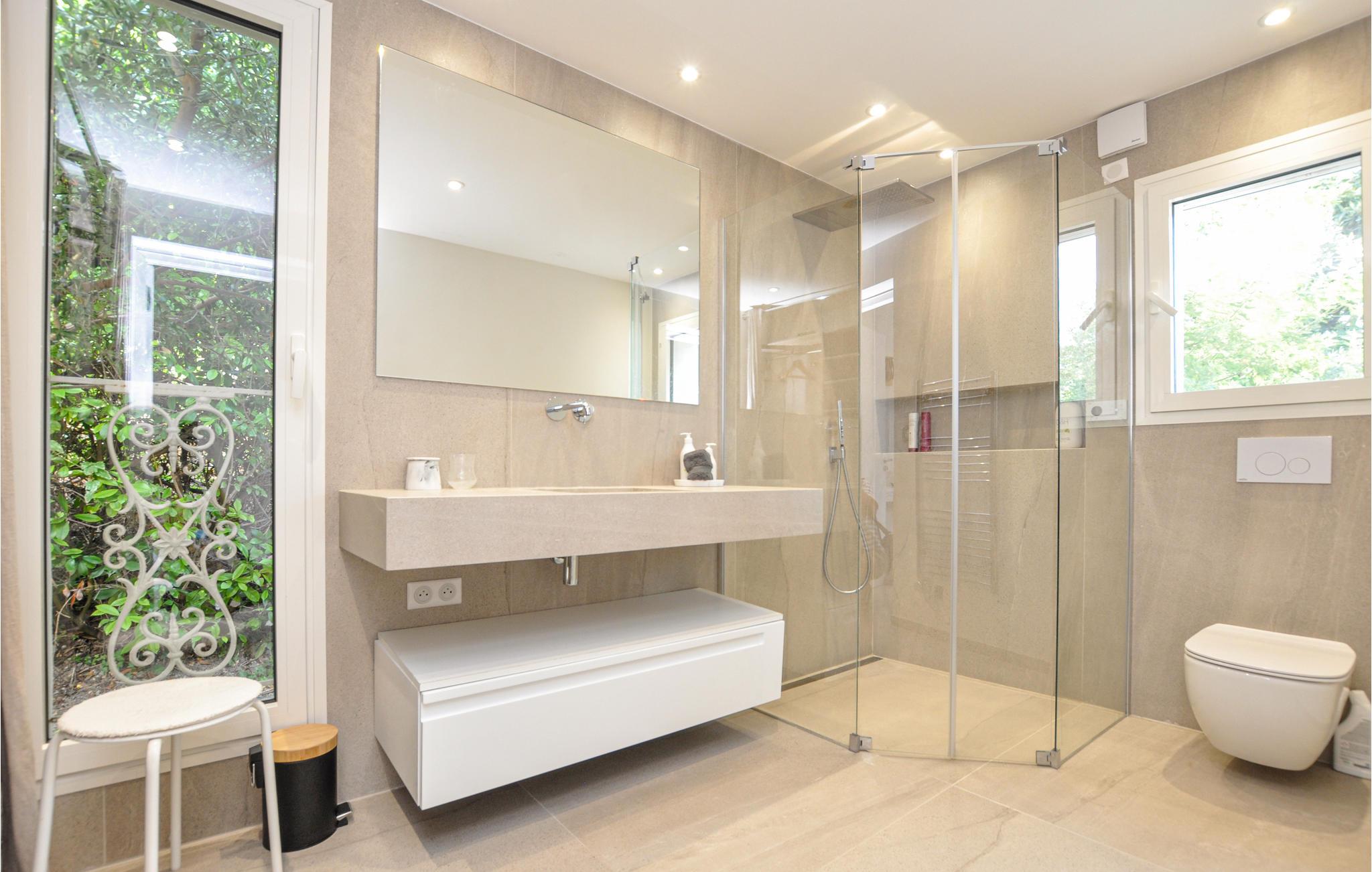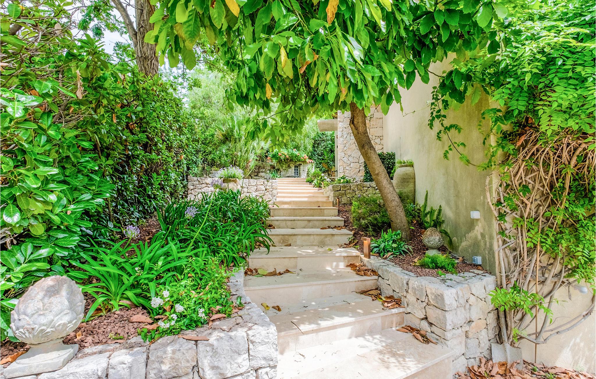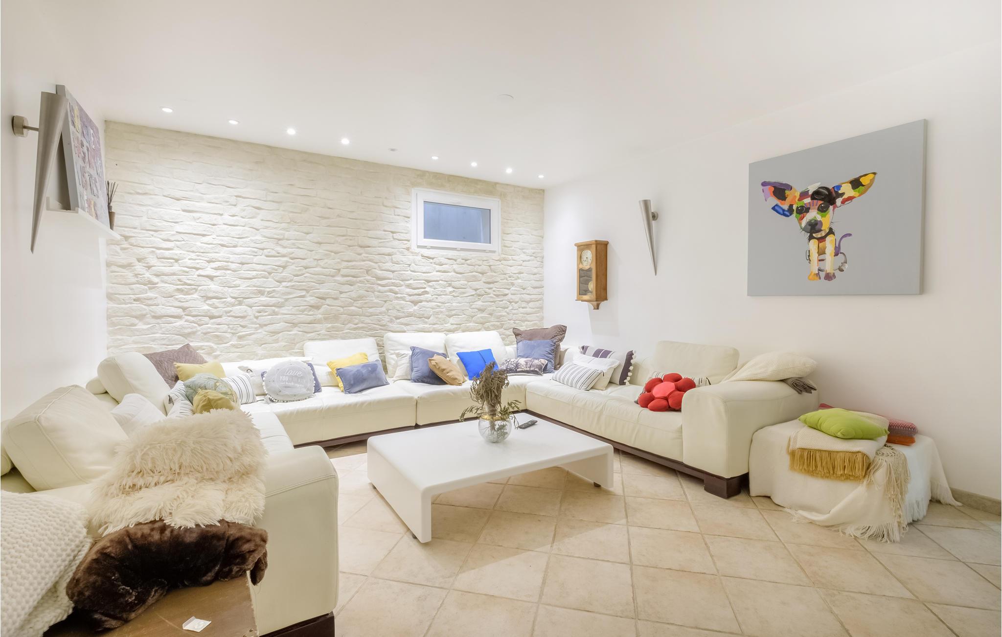 Feriehuset har en stor privat pool og en smuk terrasse med havemøbler og spiseplads. Stuen åbner ud mod poolområdet og er behageligt lys takket være de store vinduesfronter. Se frem til en luksuriøs og levende atmosfære, der også udstråler en behagelig ro. Et meget flot soveværelse i stueetagen har et tilstødende badeværelse og et af soveværelserne ovenpå har sin egen solterrasse. I kælderen er der et charmerende soveværelse med eget badeværelse.
