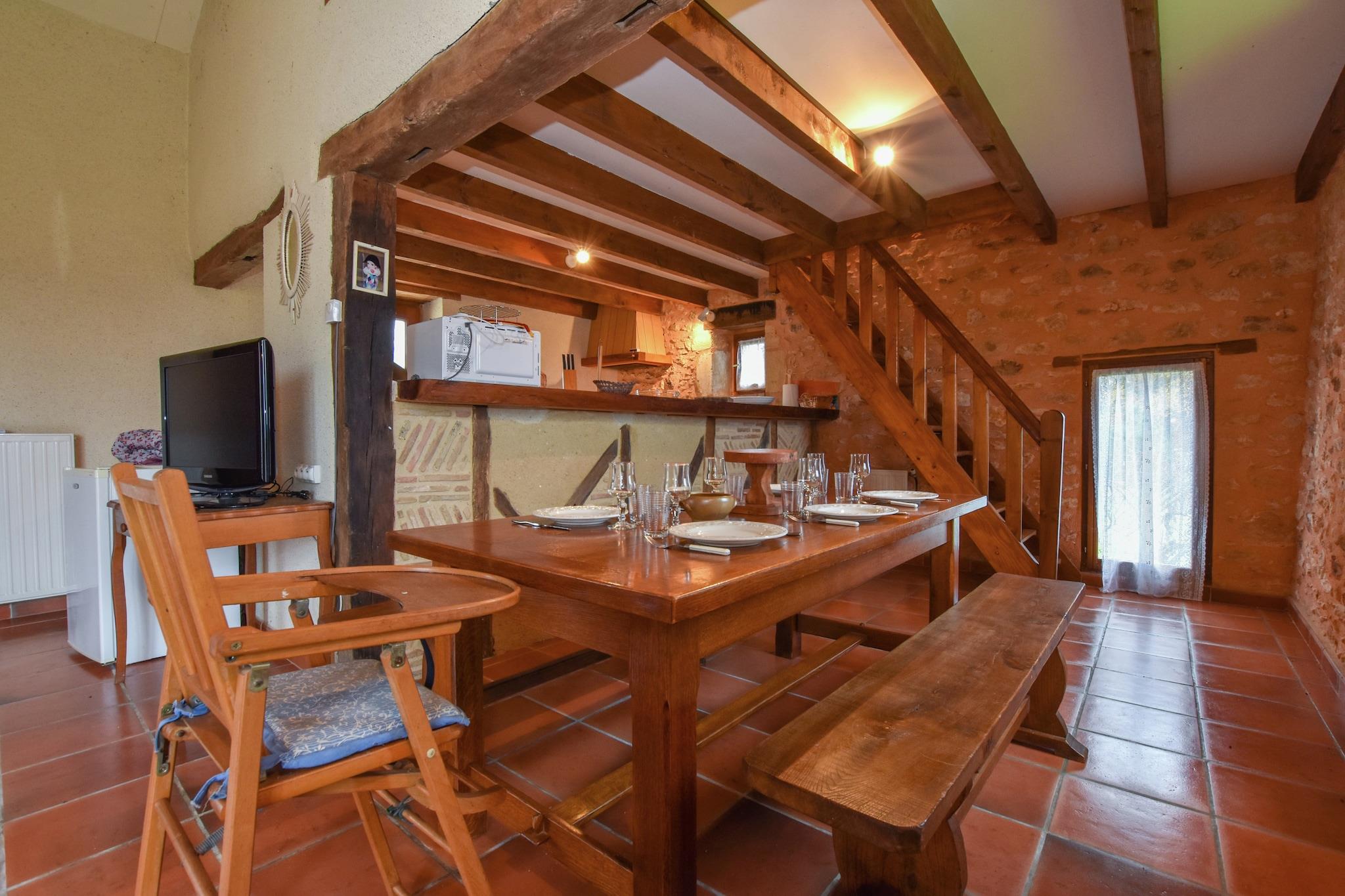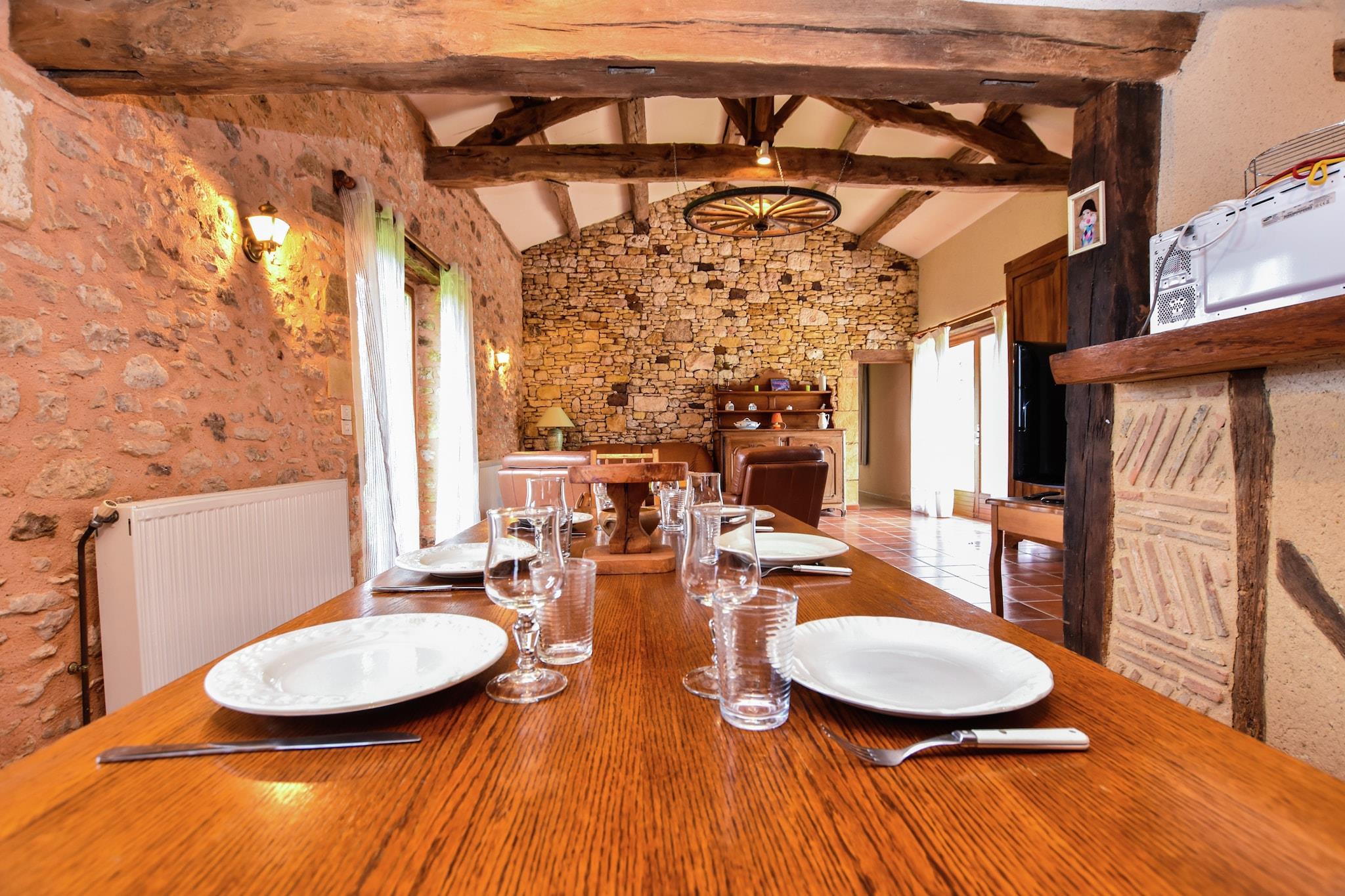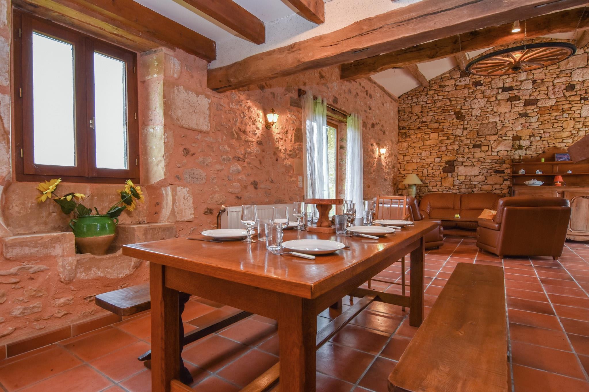 Kom tilbringe din ferie i dette charmerende sommerhus lige i hjertet af Perigord-landskabet. Du vil have enhver mulig komfort for et behageligt ophold.Du kan tage en dukkert i den vedlagte private swimmingpool og spise på den beskyttede terrasse lige ved siden af. Du kan endda bruge grillen: det uundværlige tilbehør til enhver ferie. Du har adgang til en stor stue med et lille åbent køkken med udsigt over pladsen. Her er du blot et par kilometer væk fra det berømte Biron slot (2 km), der ligger i landsbyen med samme navn. Der finder du også en købmand, et bageri og en restaurant. Der er et større udvalg af restauranter, der venter dig i Monpazier, en berømt middelalderlig bastide. Den højtliggende by Belves ligger 25 km væk. Du må ikke skræmme dig, du må ikke savne Domme (52 km), La Roque-Gageac (53 km) eller den berømte middelalderby Sarlat (60 km). Du er også tæt på slottet Bonaguil (22 km), Castelnaud -la-Chapelle (46 km), Beynac-et-Cazenac (52 km) og Les Milandes (44 km).