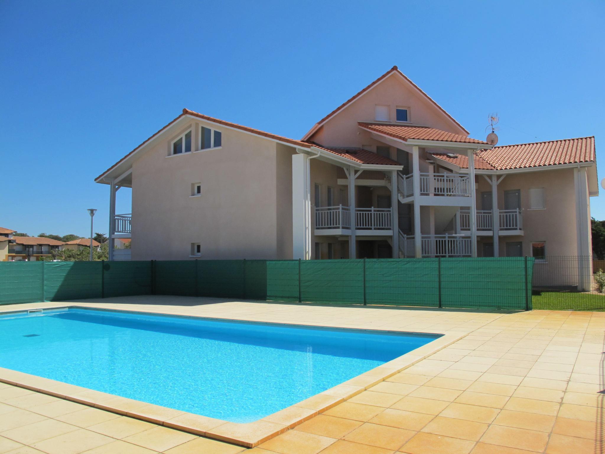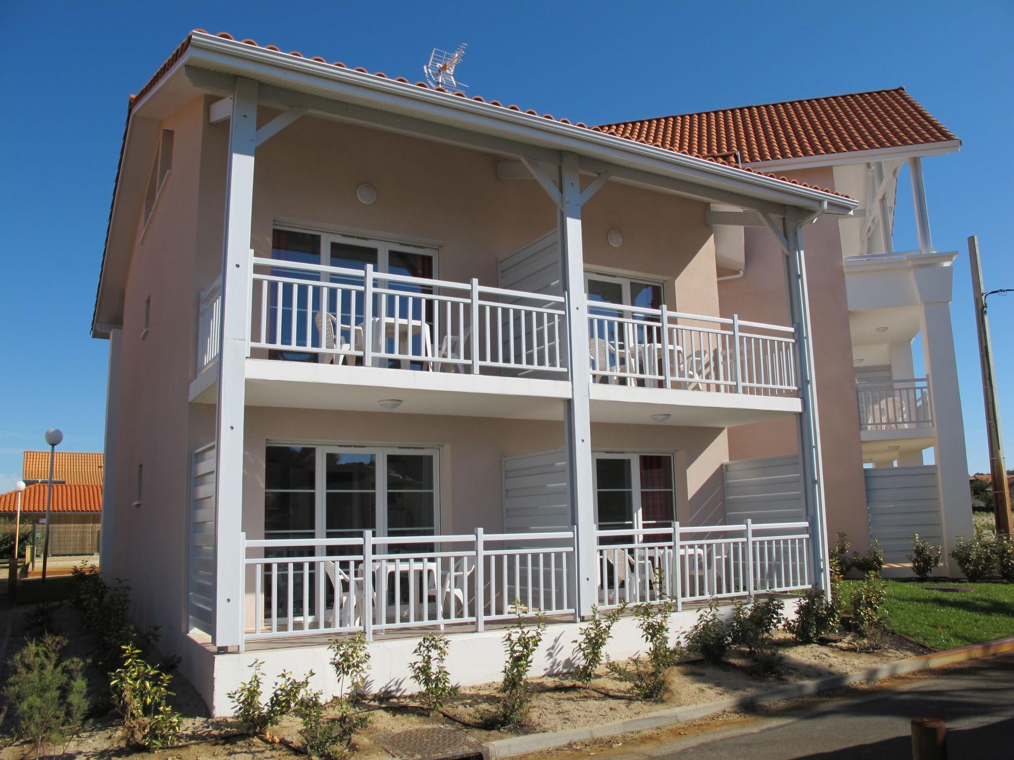 Cosy residence "Résidence Belle Dune". 14 apartments in the residence. 500 m from the centre of Biscarrosse-Plage, 10 km from the centre of Biscarrosse, 30 km from the centre of Arcachon, 350 m from the sea, 350 m from the beach, direct access to the beach. For shared use: swimming pool fenced (12 x 6 m, depth 150 cm, seasonal availability: 01.May. - 30.Sep.). In the complex: reception, breakfast room, WiFi, washing machine, tumble dryer (extra). Bread roll service, beverage service and breakfast (extra). Parking (limited number of spaces). Shop 500 m, supermarket 10 km, bus stop "Parc Segot" 19.6 km, sandy beach "Biscarrosse-Plage" 350 m, bathing lake "Etang de Cazaux et de Sanguinet" 6 km. Golf course (27 hole) 7 km. Please note: the photograph shows a typical example.