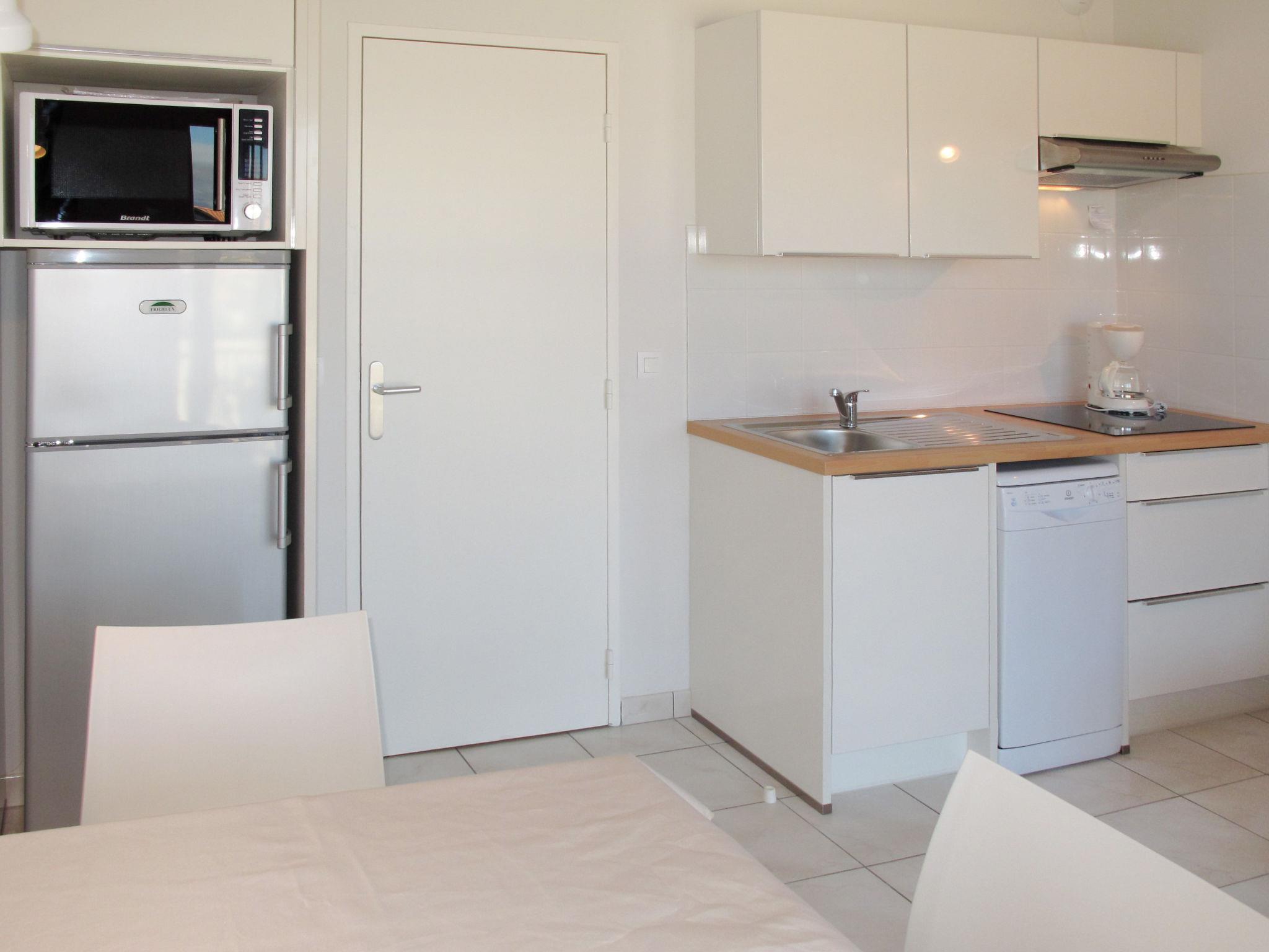 "Résidence Belle Dune", 3-room apartment 40 m2 on 2 levels on 1st floor. Living/dining room with dining table and TV (flat screen). Exit to the balcony. 1 room with 1 french bed (140 cm, length 190 cm). Small, open kitchen (dishwasher, 4 ceramic glass hob hotplates, toaster, kettle, microwave, freezer, electric coffee machine). Exit to the balcony. Bathroom, sep. WC. Upper floor: 1 room with sloping ceilings with 2 beds (90 cm, length 190 cm). Electric heating. Balcony or terrace. Balcony furniture. Facilities: washing machine, iron, children's high chair, baby cot (extra). Internet (WiFi, free). Please note: non-smokers only. Maximum 1 pet/ dog allowed. Smoke alarm.