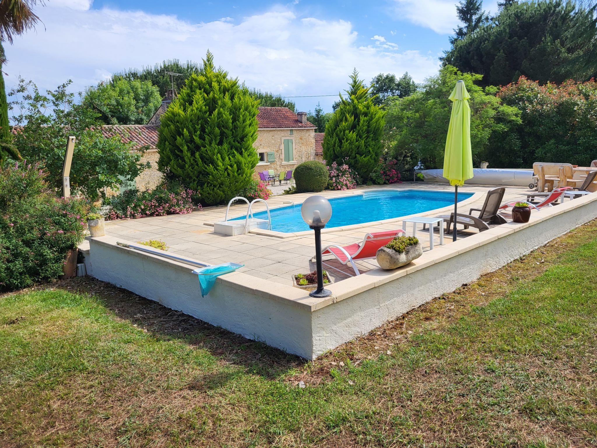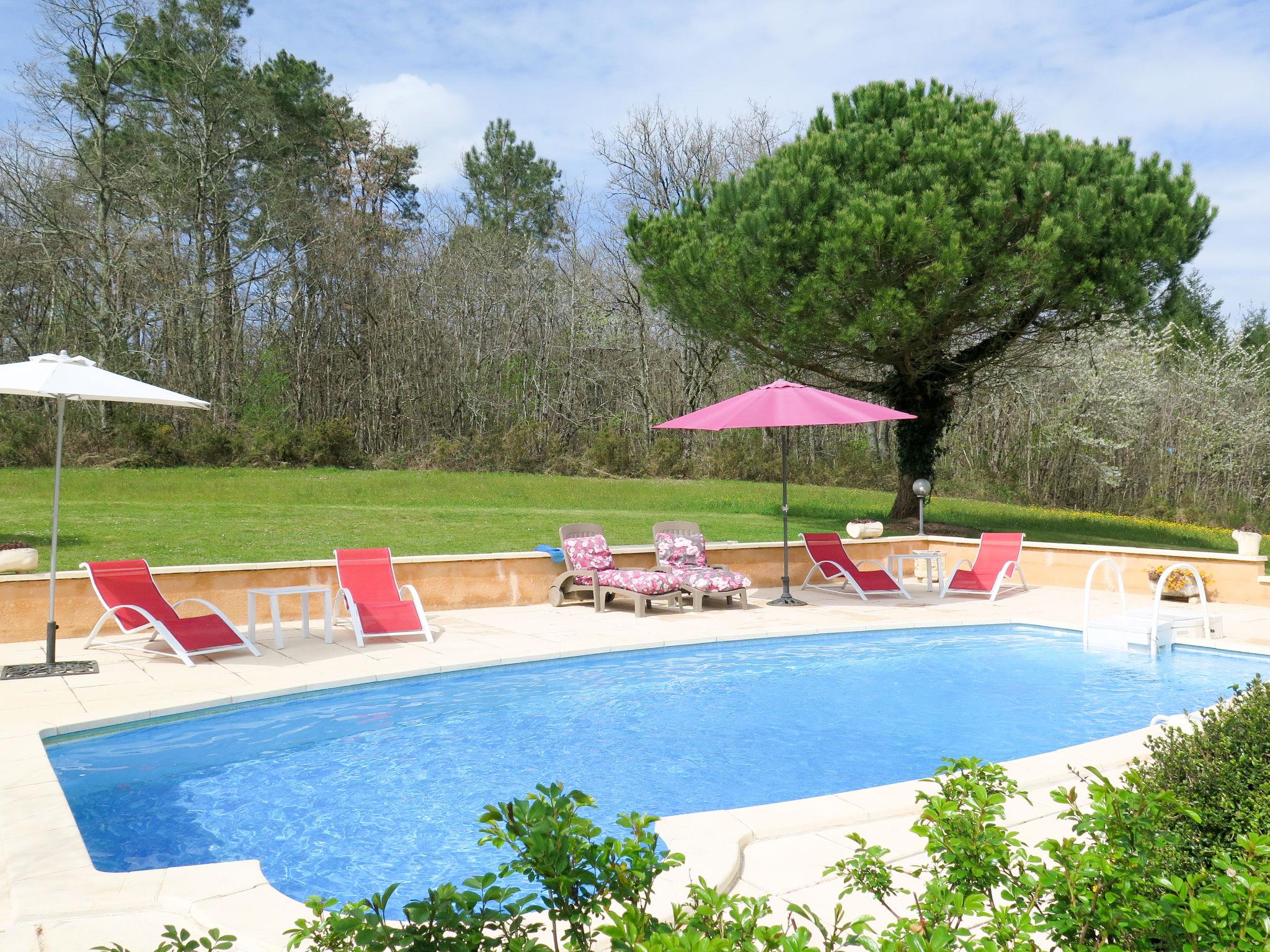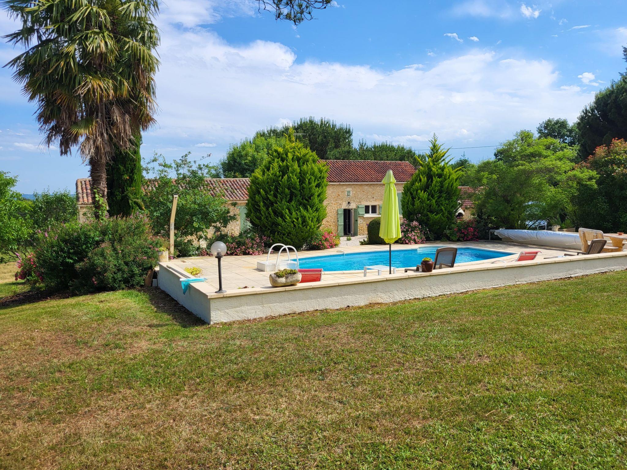 Beautiful country house "Le Coustal", surrounded by trees and meadows. 4 km from the centre of Lacapelle-Biron, 17 km from the centre of Fumel, 60 km from the centre of Cahors, in a secluded, quiet position. Private: natural state property 3 ha, trees, meadow, swimming pool with privacy (8 x 4 m, depth 120 - 180 cm, seasonal availability: 04.Apr. - 24.Oct.) with internal staircase and alarm system. Outdoor shower, terrace, garden furniture, barbecue house. Motor access (1 km via unmade road). Roofed, parking (for 2 cars) at the house on the premises. Shop 4 km, supermarket 17 km, bus stop "Villeréal-Les Riviérettes" 20 km. Nearby attractions: Gavaudun 7 km, Monflanquin 15 km, Cahors 60 km, Agen 67 km, Château Biron 13 km, Château Bonaguil 12 km. Please note: car recommended.