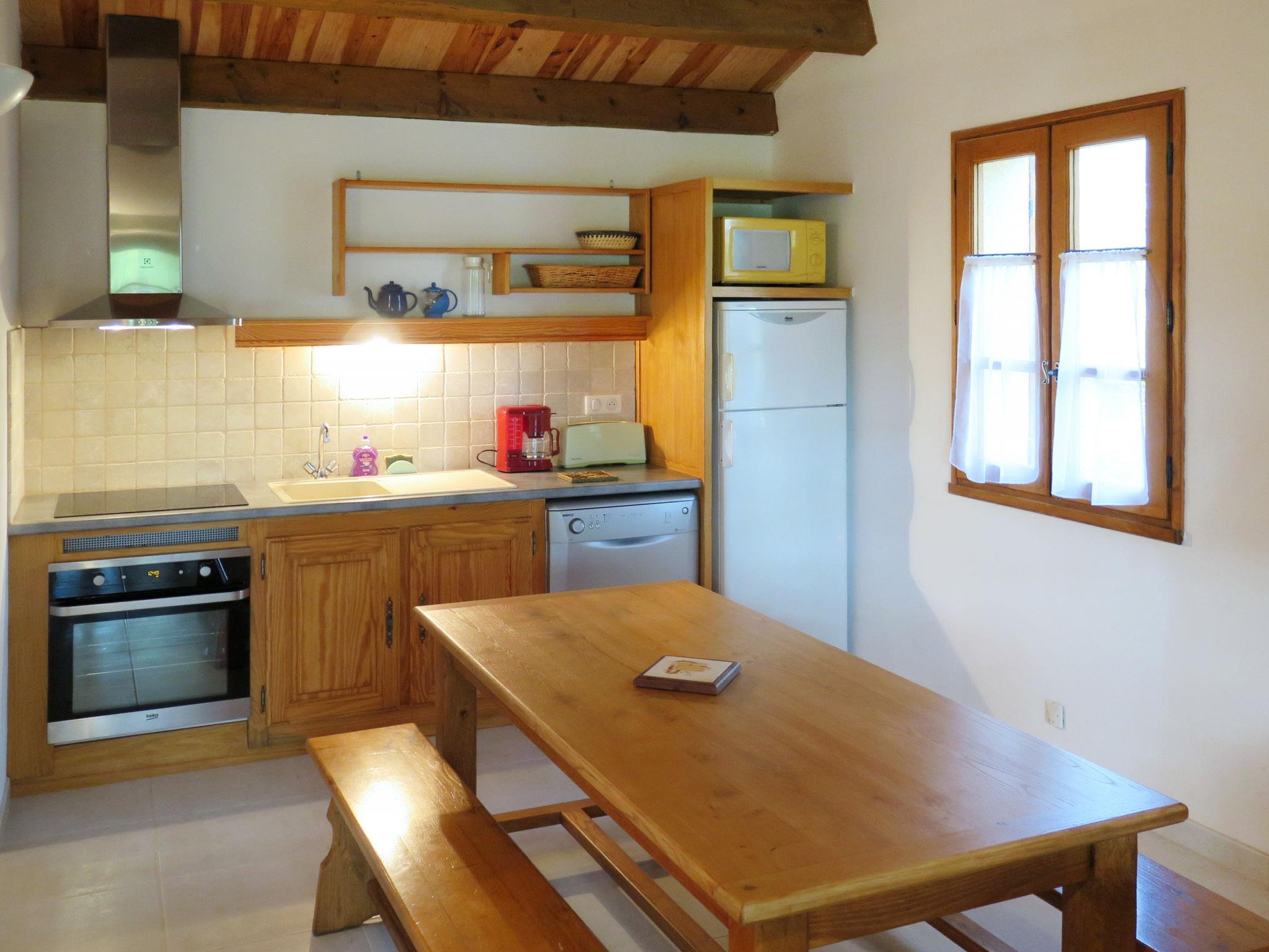 "Le Chêne", 3-room house 70 m2. Object suitable for 2 adults + 2 children. Practical furnishings: living/dining room with open-hearth fireplace, dining table and TV (flat screen). Exit to the terrace. 1 room with 1 french bed (140 cm, length 190 cm). 1 room with 2 beds (90 cm, length 190 cm). Open kitchen (oven, dishwasher, 4 induction hot plates, toaster, kettle, microwave, freezer, electric coffee machine). Shower, sep. WC. Electric heating. Terrace partly roofed. Terrace furniture, barbecue, deck chairs (2). Facilities: washing machine, baby cot, logs (extra). Internet (WiFi, free). Please note: non-smoking house. 1 small pet/ dog allowed. Smoke alarm. Offer by a commercial proprietor according to Art. 155, IV, CGI