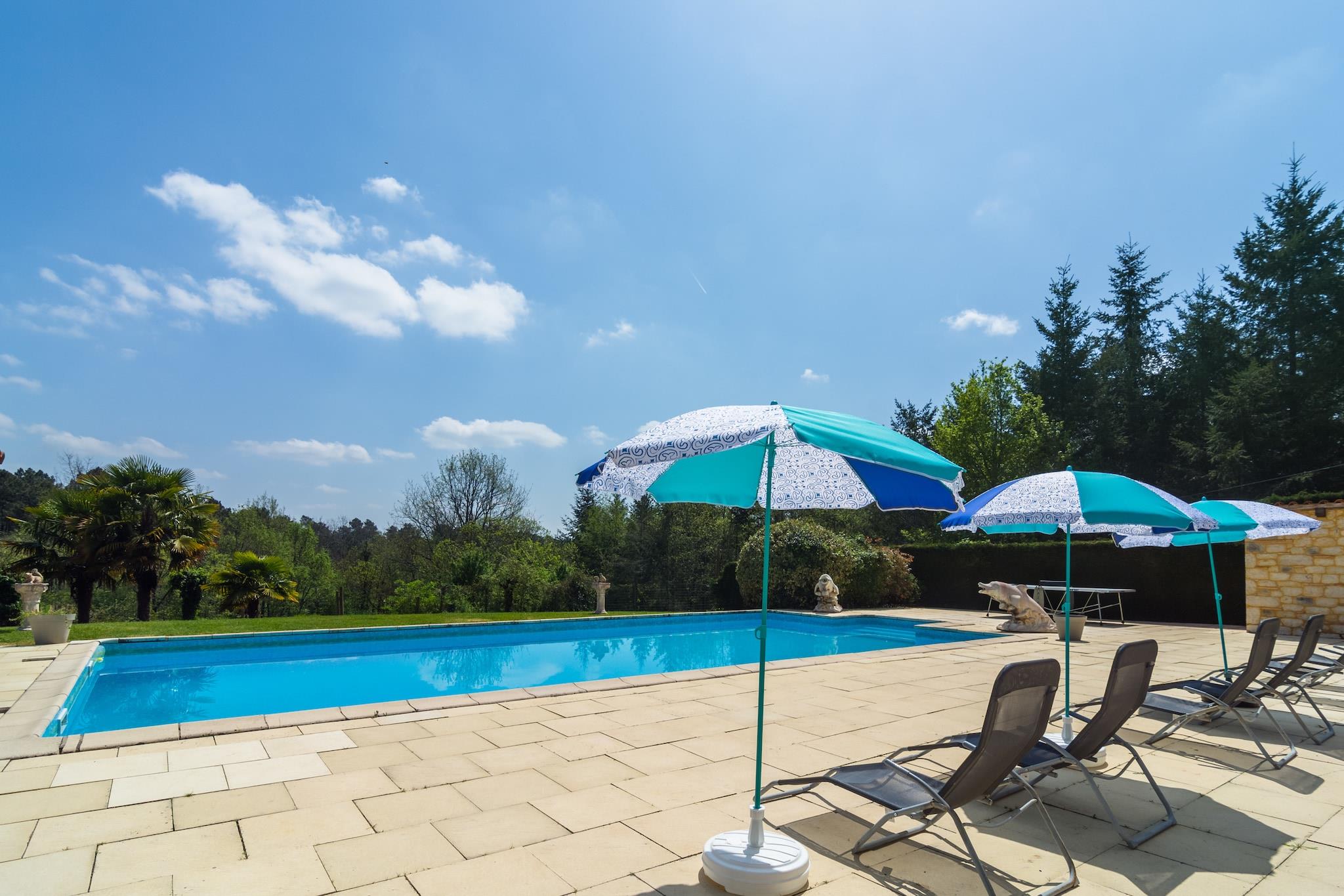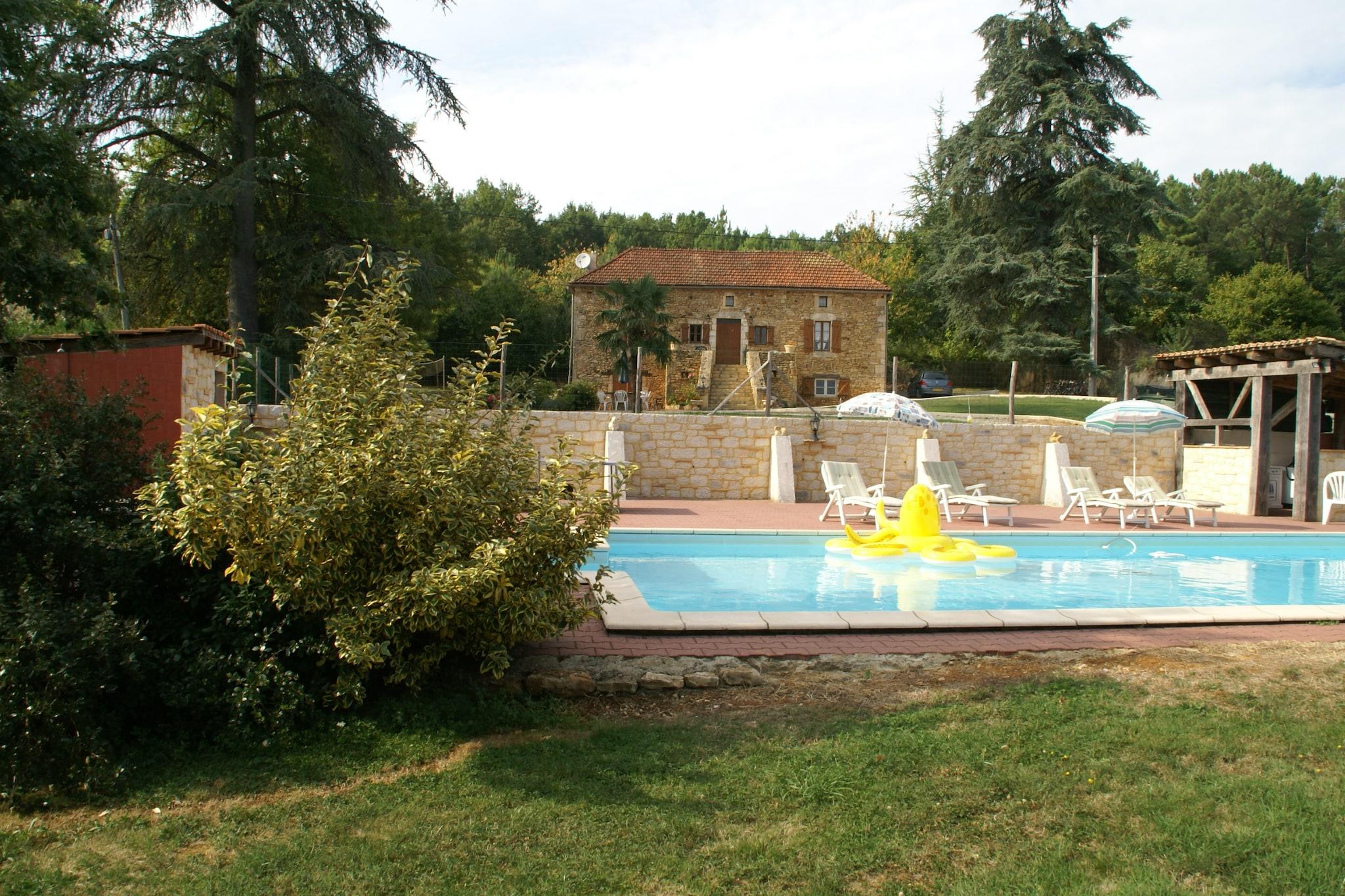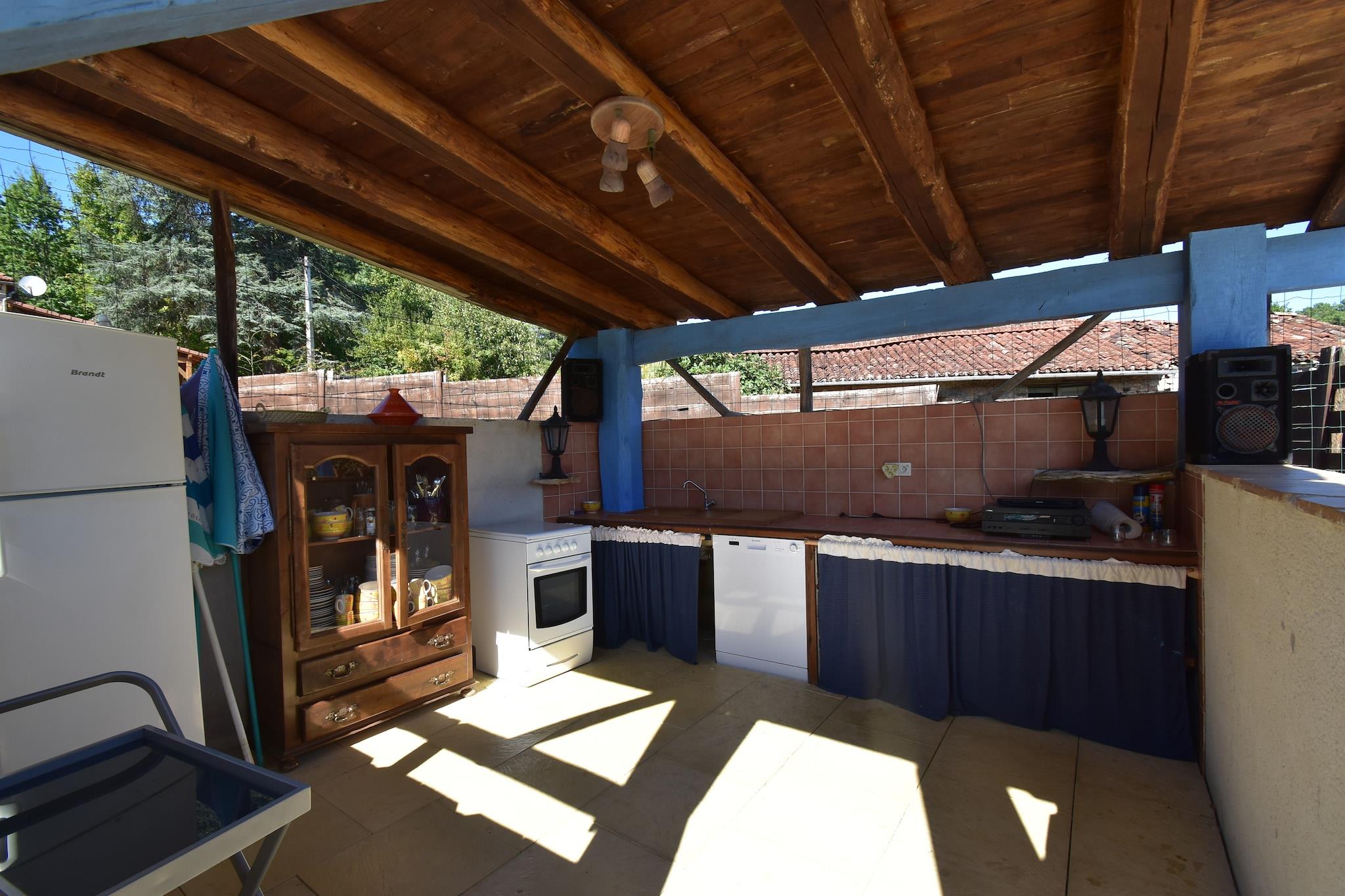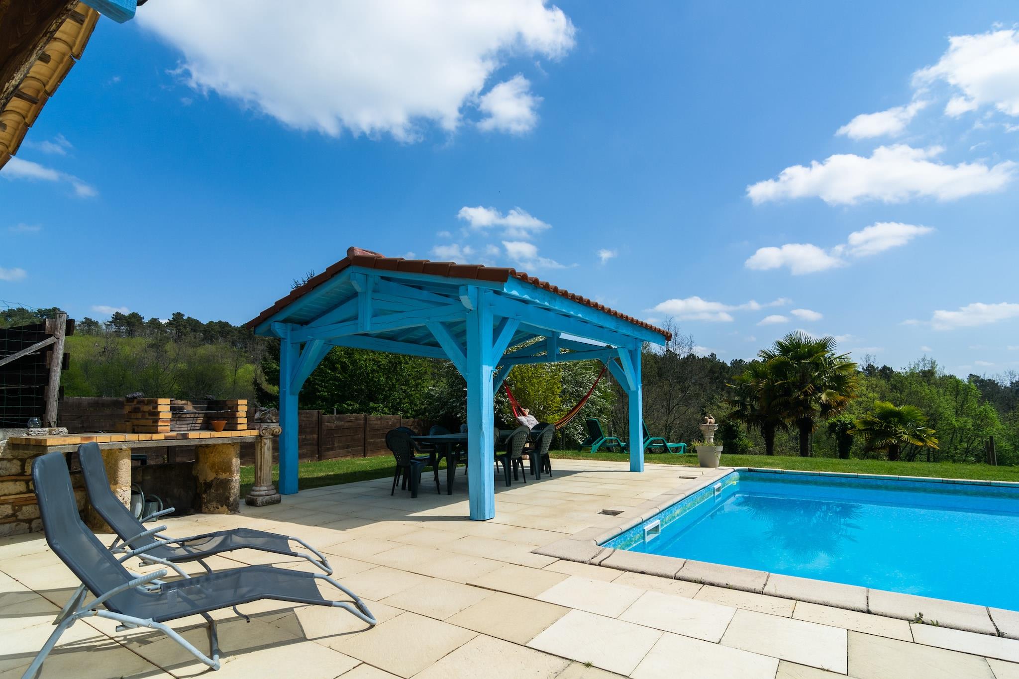Dette rummelige feriehus med 5 soveværelser i Blanquefort-sur-Briolance er beliggende i rolige omgivelser med panoramaudsigt over skovklædte bjerge og huser op til 12 gæster. Uanset om du rejser med familie eller venner, tilbyder denne villa den perfekte blanding af afslapning, eventyr og kulturel udforskning. Nyd solrige dage ved den private swimmingpool og solterrasse, komplet med en stengrill til udendørs spisning. Hjemmet har en pejs (medfølger træ), et fitnessrum, vaskemaskine og fryser. Seks cykler (inklusive en til børn) er tilgængelige for naturskønne ture gennem det bakkede, skovklædte landskab - ideel for både vandrere og cyklister. I nærheden kan du opdage Château de Bonaguil (14 km), bastidebyen Monpazier (13 km) og de underjordiske fangehuller i Belvès (23 km). Monflanquin (33 km) og vandlandet i Le Bugue (41 km) byder på sjov for alle aldre. Følg Napoleons fodspor ved hans tidligere palæ kun 8 km væk. Forkæl dig selv med regionens berømte valnødder, trøfler og foie gras, og slap af i et hjem, der hylder natur, historie og gastronomi.