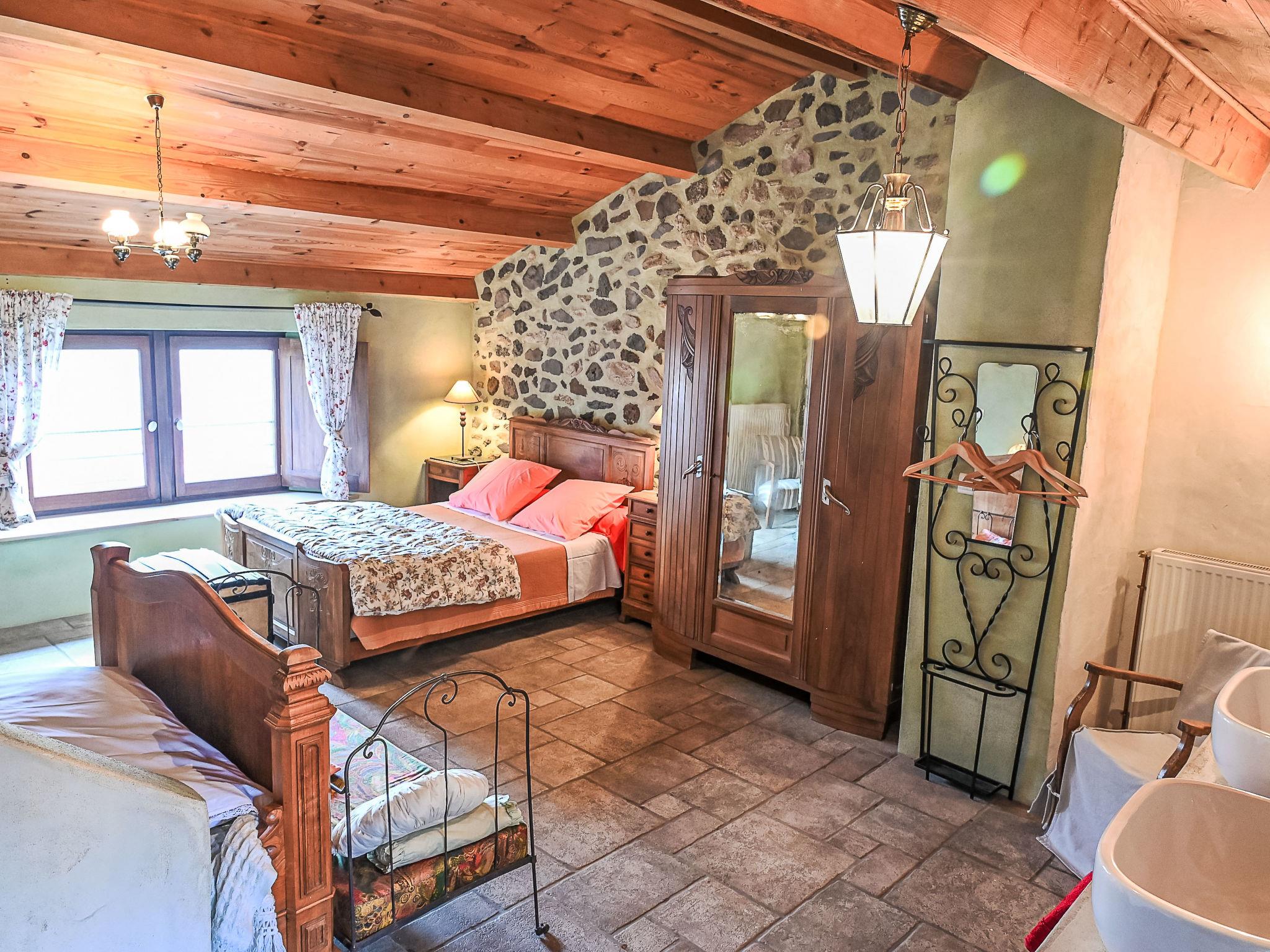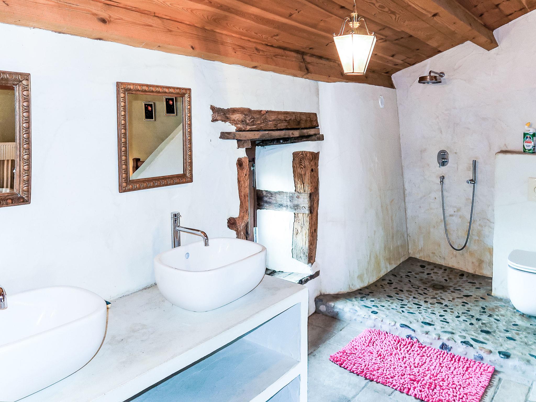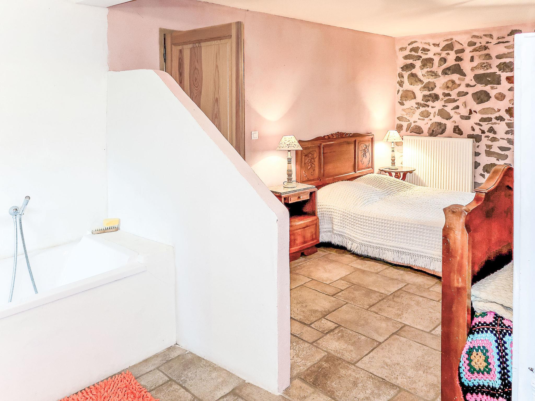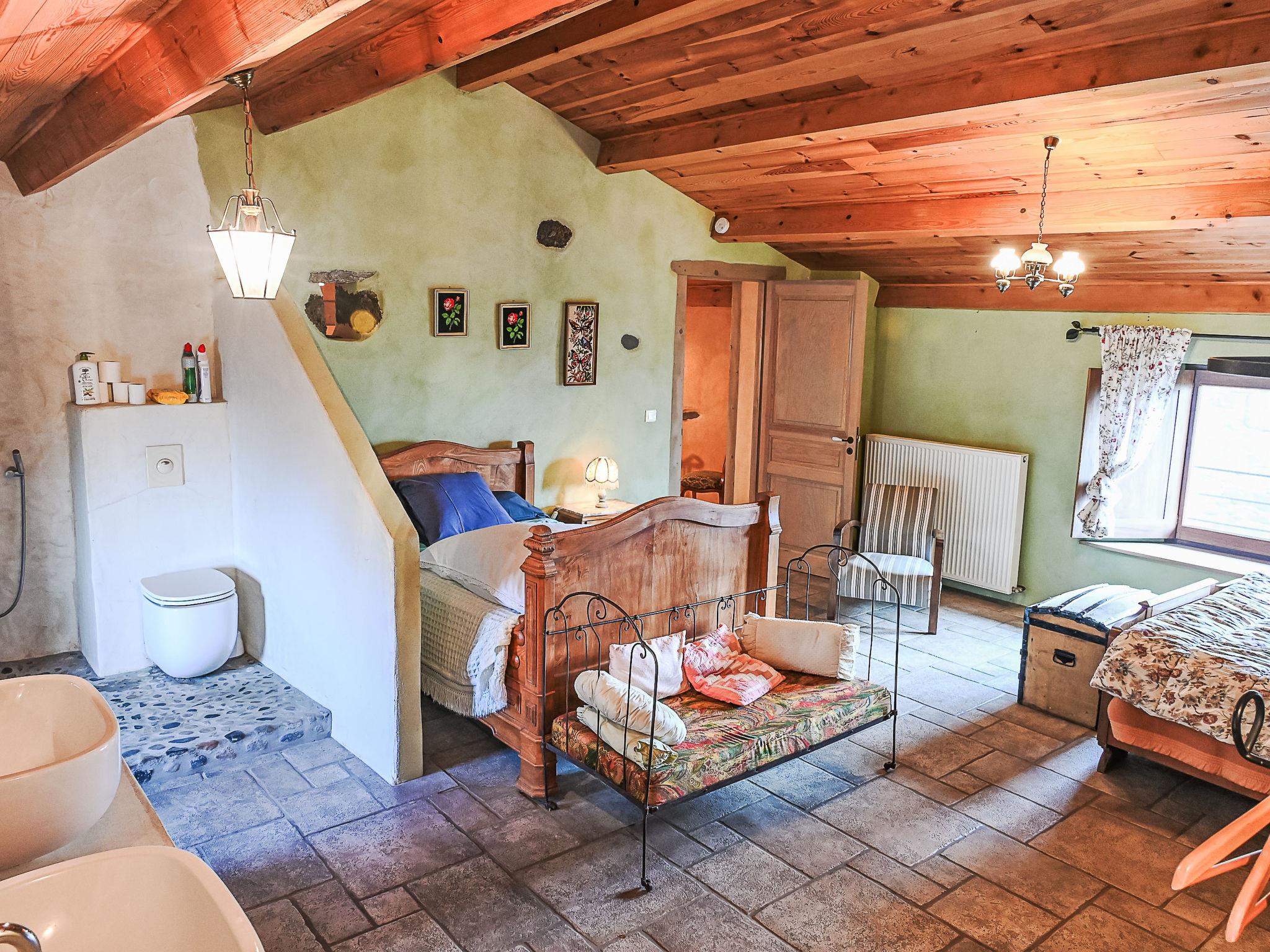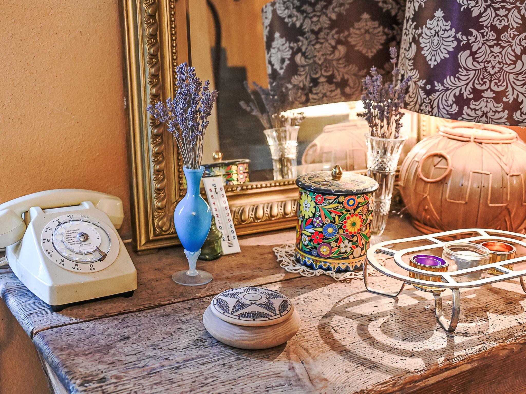 "Varenne", 4-room house 120 m2 on 2 levels. Tasteful and cosy furnishings: 1 room with 1 bed (120 cm, length 190 cm), 1 french bed (140 cm, length 190 cm), bathroom and double hand-basin. Dining room with dining table. Exit to the terrace. Open kitchen (5 hot plates, oven, dishwasher, toaster, kettle, microwave, freezer, electric coffee machine). Sep. WC. Upper floor: living room with TV, hi-fi system and DVD. Exit to the balcony. 1 room with Dressing room with 1 bed (120 cm, length 190 cm), 1 french bed (140 cm, length 190 cm). Shower/WC, double hand-basin. Solar energy heating, oil heating. Natural stone floors. Facilities: washing machine, iron, children's high chair. Internet (WiFi, free). Please note: non-smoking house. Maximum 2 pets/ dogs allowed. Smoke alarm.