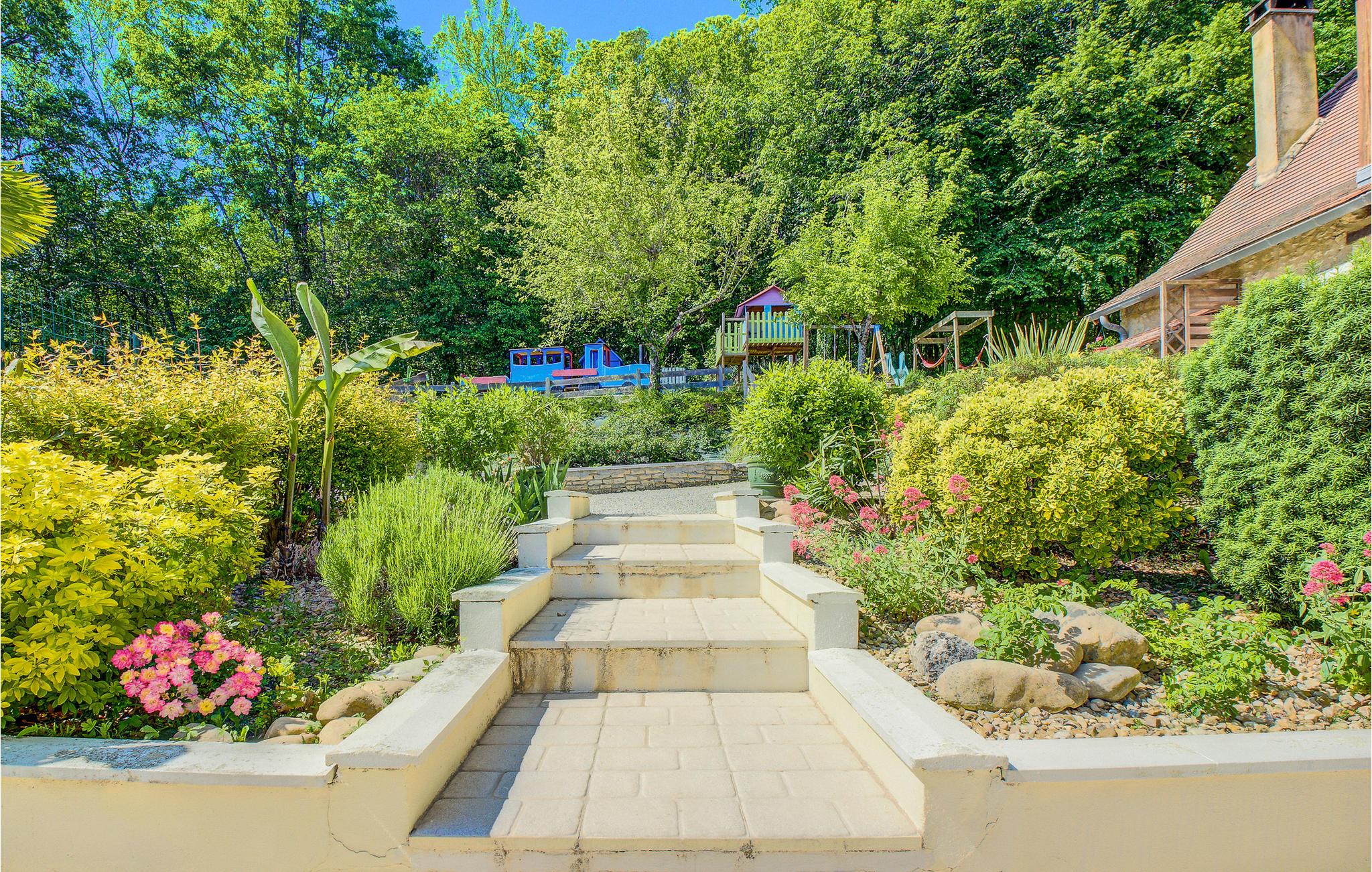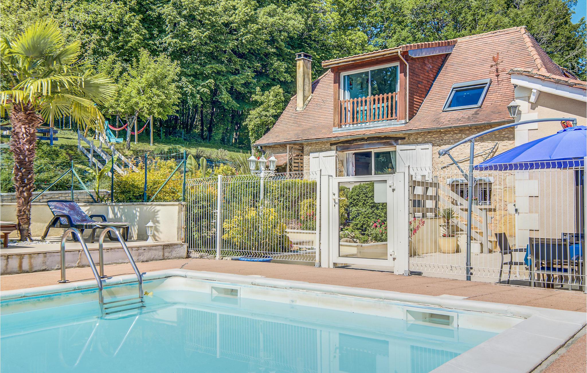 Dette skønne feriehus er bygget i lokal Périgordstil, er med sin swimmingpool og legeplads et lille ferieparadis for både store og små. Også et bordtennisbord sørger for afveksling for alle. På grunden er der både sol og skygge til afslappede stunder. Périgueux, som er Dordognes hovedstad, er en charmerende by med restauranter, butikker, markeder og museer. Vi kan også anbefale jer at se katedralen Saint-Front, der er bygget i samme stil som Sacré-Cœur i Paris. Besøg også Hautefort med sit majestætiske Château der bare ligger 30 minutter væk i bil.
