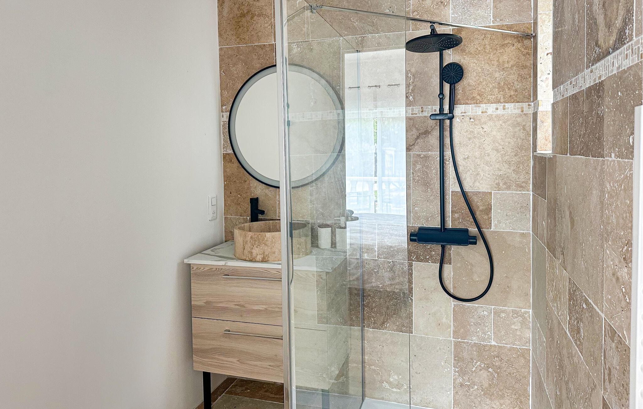 På den solrige terrasse finder I et smagfuldt opholdsområde og et spabad. Slap af fuldt ud eller udfordr jeres medrejsende til et spil petanque på den tilstødende bane. Haven er velholdt og omgivet af høje hække, så I kan nyde jeres tid uforstyrret.