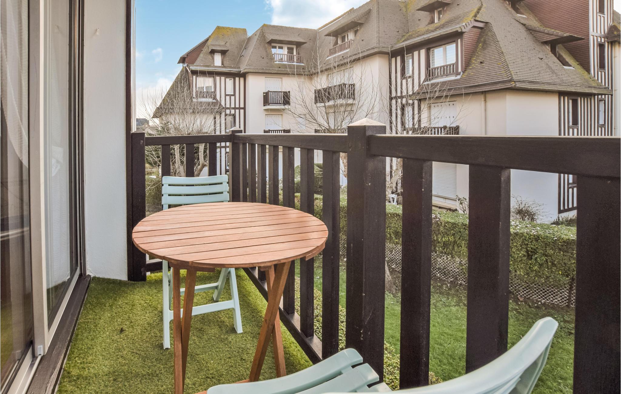 Velkommen til denne skønne, lille lejlighed med altan. Lejligheden er indrettet med alt, hvad I som familie skal bruge for at slappe af efter en aktiv dag ved vandet eller ude i naturen. Sæt jer med morgenkaffen på altanen og nyd udsigten til Côte Fleuries landskab mellem Deauville og Cabourg.