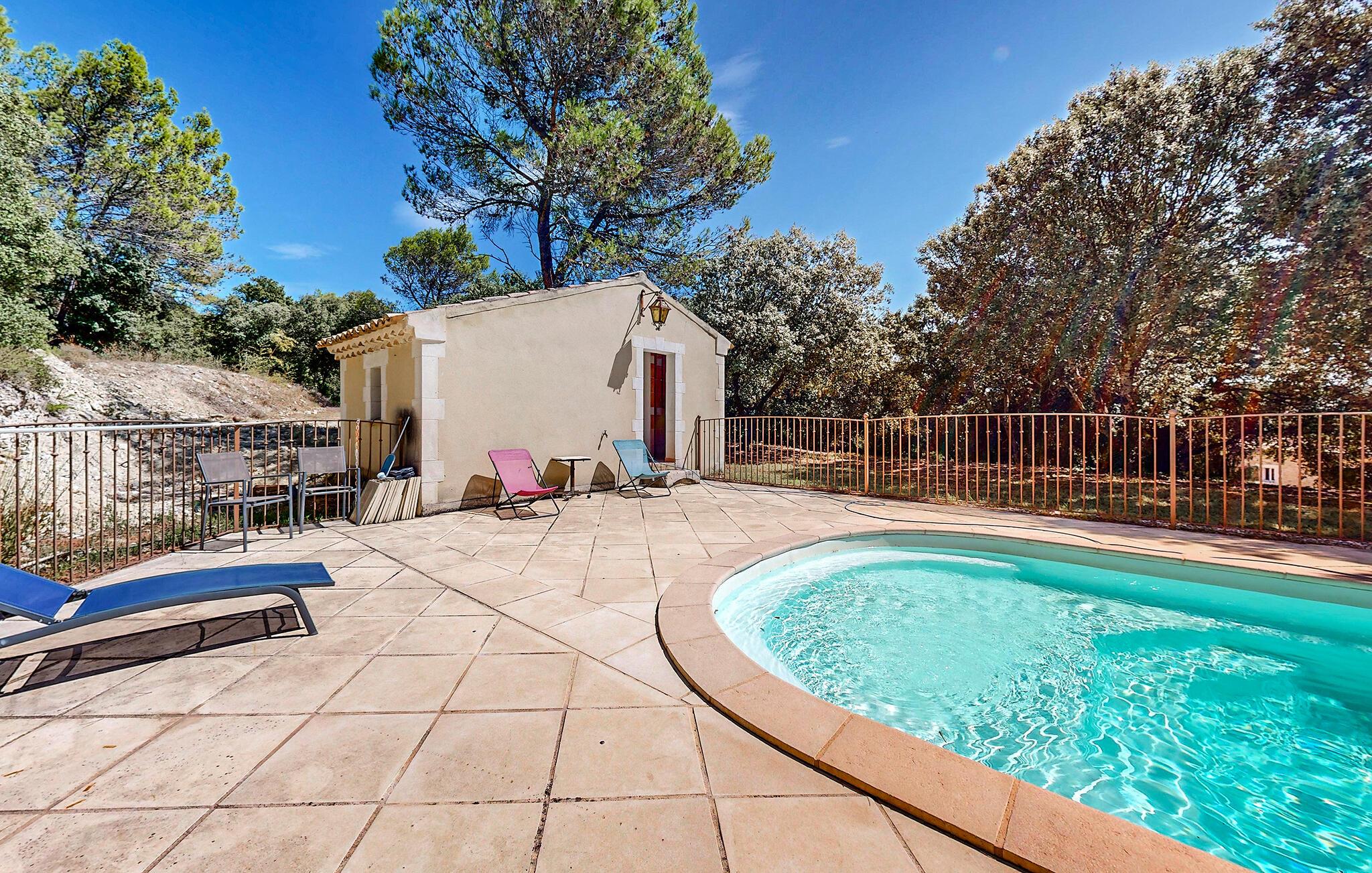 Velkommen til dette smukke stenhus med privat pool i Provence. Her er ideelt til en behagelig fredelig ferie på landet. Feriehuset ligger på en stor ejendom med træer og er et ideelt udgangspunkt for vandreture i den omkringliggende natur. Dette feriehus ligger i et domæne på 20 hektar egetræer og fyrretræer, mellem Bollène og den smukke middelalderlandsby St. Restitut. Herfra kan du opdage alle fire omkringliggende afdelinger: Vaucluse, Ardèche, Drôme og Gard. Derudover er du hjertet af en region, som vil glæde de fleste aktivitetselskere, vandrere og gourmetinteresserede. Ejeren, der bor på bagsiden af huset, har to hunde (låst inde i deres kabinet).