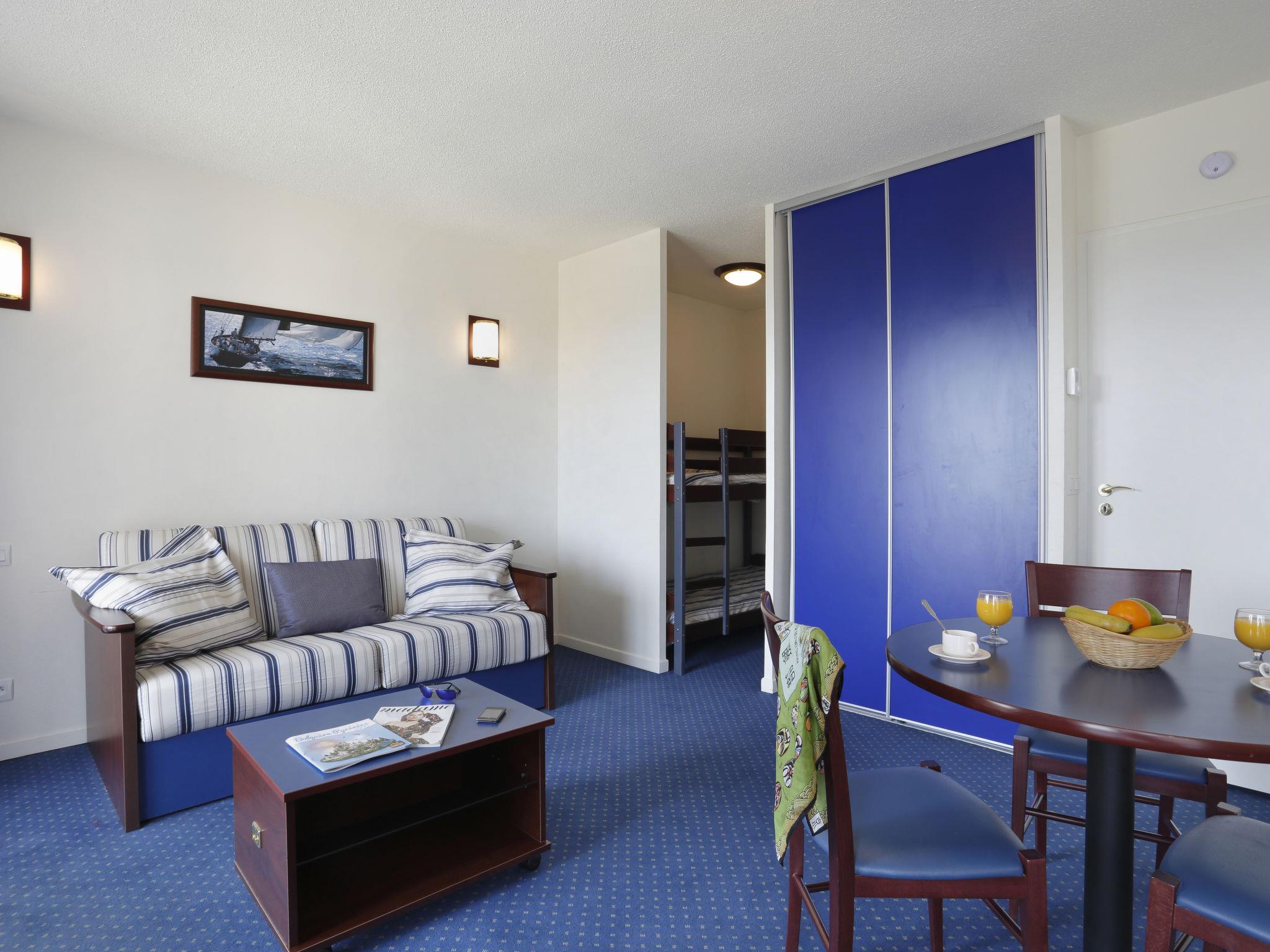 "Pyrénées 2000/ Studio cabine 4 pers. VUE", 1-room studio 27 m2. Practical furnishings: living/sleeping room with 2 sleeping facilities, dining table and TV (flat screen). Alcove with 1 x 2 bunk beds. Kitchenette (2 hot plates, dishwasher, microwave, electric coffee machine). Bath/WC. Balcony or terrace. Balcony furniture. View of the mountains. Facilities: hair dryer. Internet (WiFi). Parking. Maximum 1 pet/ dog allowed. Instead of an enclosed bedroom, some sleeping areas are located in an open-plan area (gallery, alcove, etc.).