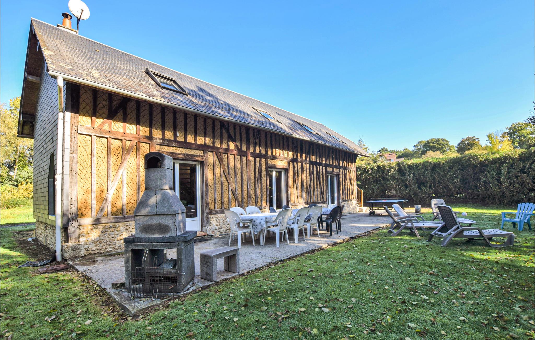 Dette autentiske hus i normannisk stil byder jer velkommen i fredelige og naturskønne omgivelser. Indenfor finder I et lyst, historisk interiør med originale detaljer. Sæt jer i den rummelige sofa foran pejsen og slap blot af. Det praktiske køkken er tilgængeligt for familiens amatørkokke.