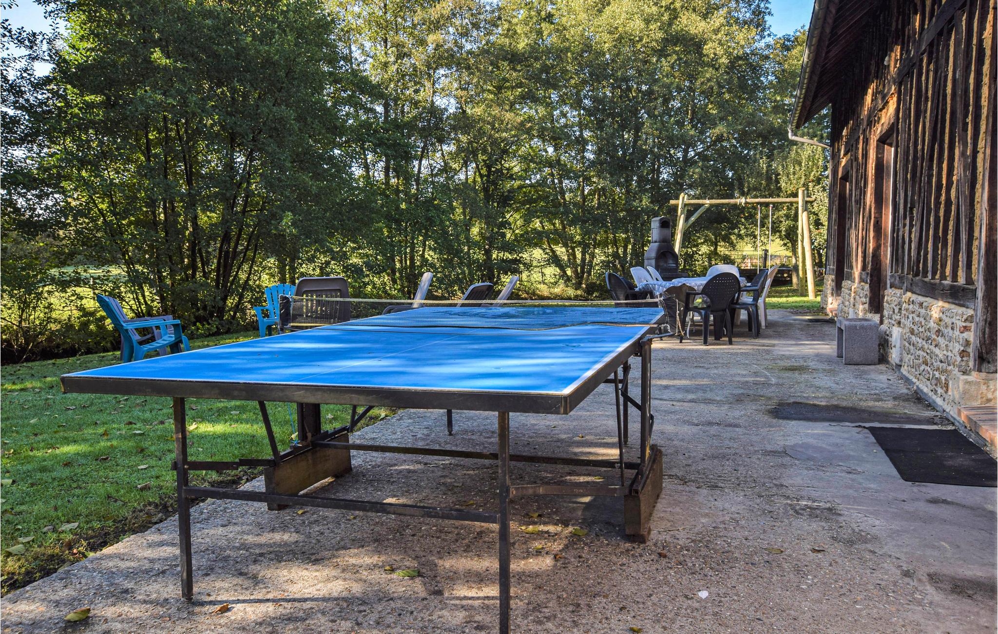 Huset ligger på en smuk naturgrund ved bredden af Calonne-floden. Vandets blide skvulpen indbyder til solrige eftermiddage og stemningsfulde sommeraftener. Slap af på den rummelige terrasse eller på liggestolene, eller spil et spil bordtennis. Der er masser af plads udenfor til alle aldre, såvel som jeres elskede firbenede venner, men vær opmærksom på nærheden til vandet, hvis I har små børn.