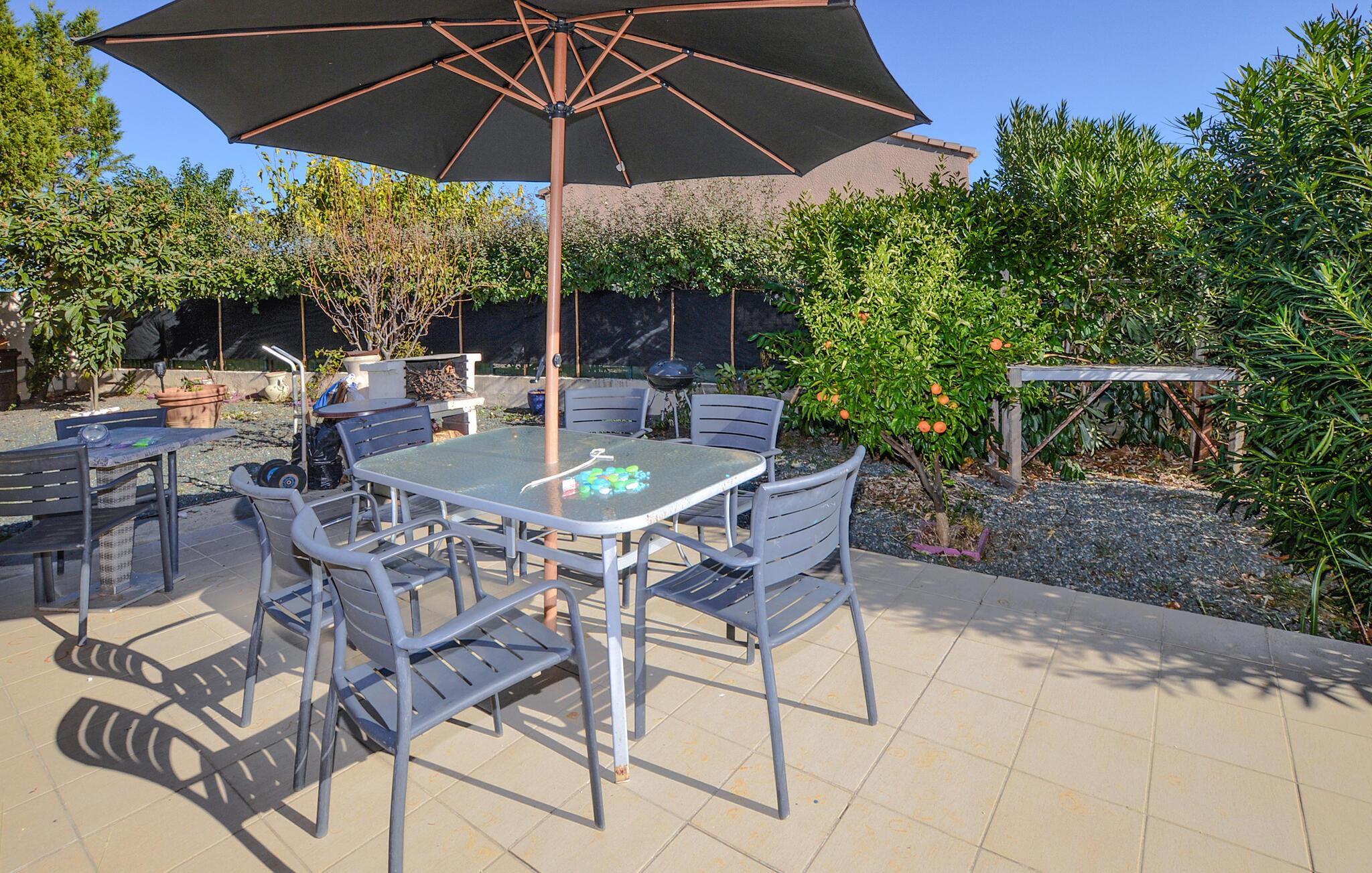 Træd udenfor og nyd den rummelige haves middelhavsplanter. Køl af i den private pool eller slap af på et af de mange siddeområder. På terrassen inviterer et stort spisebord og en parasol jer til at spise under åben himmel.