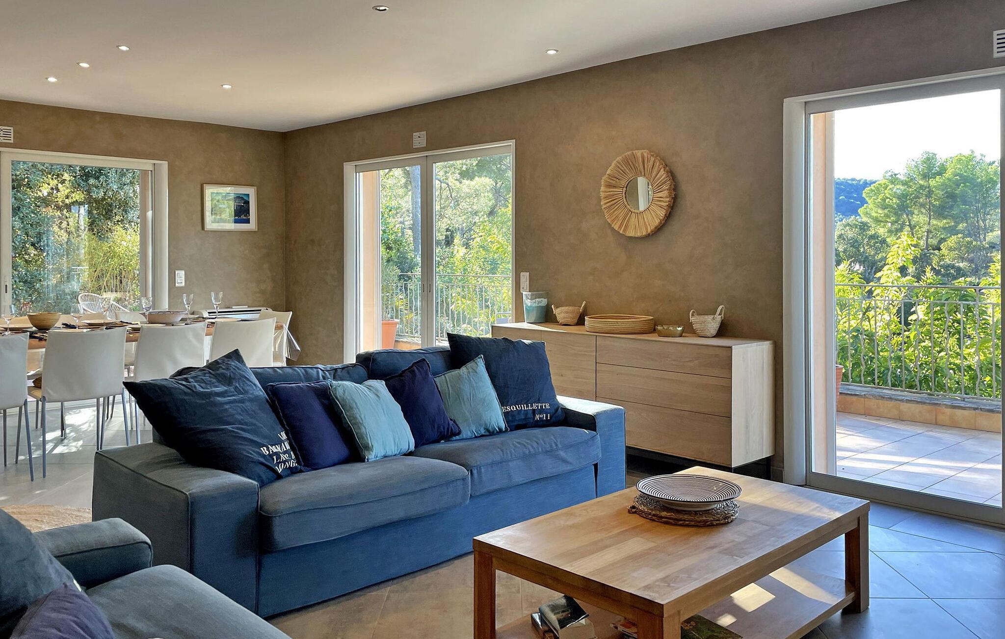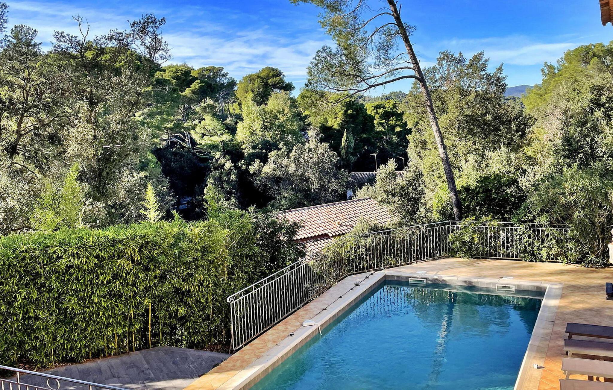 Denne villa i Cap Bénat, Bormes les Mimosas, er en del af en privat ejendom, der tilbyder eksklusiv adgang til stranden til sine beboere. Villaen på bjergsiden tilbyder rummelig indkvartering over to forskellige niveauer. Når du træder ind i villaen, vil du finde en opholdsstue med aircondition med åbent køkken og spiseplads. Det fuldt udstyrede køkken har væsentlige apparater og en central ø, mens en overdækket terrasse med en gasgrill giver ekstra udendørs plads. Der er fire soveværelser - et i stueetagen og tre på nederste etage, hver med dobbeltsenge og deres respektive bruserum eller separate toiletter. Der er et bordtennisbord på den overdækkede terrasse, en opvarmet swimmingpool sikret med en alarm og lukkede haver spredt over forskellige niveauer. Parkeringsplads til tre biler er tilgængelig ved ejendommen. Beliggende i hjertet af den private og bevogtede ejendom Cap Bénat, har villaen adgang til de private strande i Cap Bénat og Gaou Bénat områderne. Godsets restaurant (på stranden) er åben fra 1. maj til midten af september (tilgængelig med bil). Cap Bénat er et klippepunkt på 2500 hektar beliggende ved Middelhavskysten af Var, i Bormes-les-Mimosas. Det betragtes som et af de mest prestigefyldte steder på Var-kysten. Du finder de nærmeste butikker i Bormes les Mimosas cirka 8 km væk. Bemærk, at boet efter Cap Bénat har specifikke regler, herunder stille timer, der starter kl. 23.00. Hvis forstyrrelser medfører, at viceværten griber ind om natten, kan det fulde depositum tilbageholdes. Eksklusiv ferievilla i hjertet af Cap Benat ejendom.