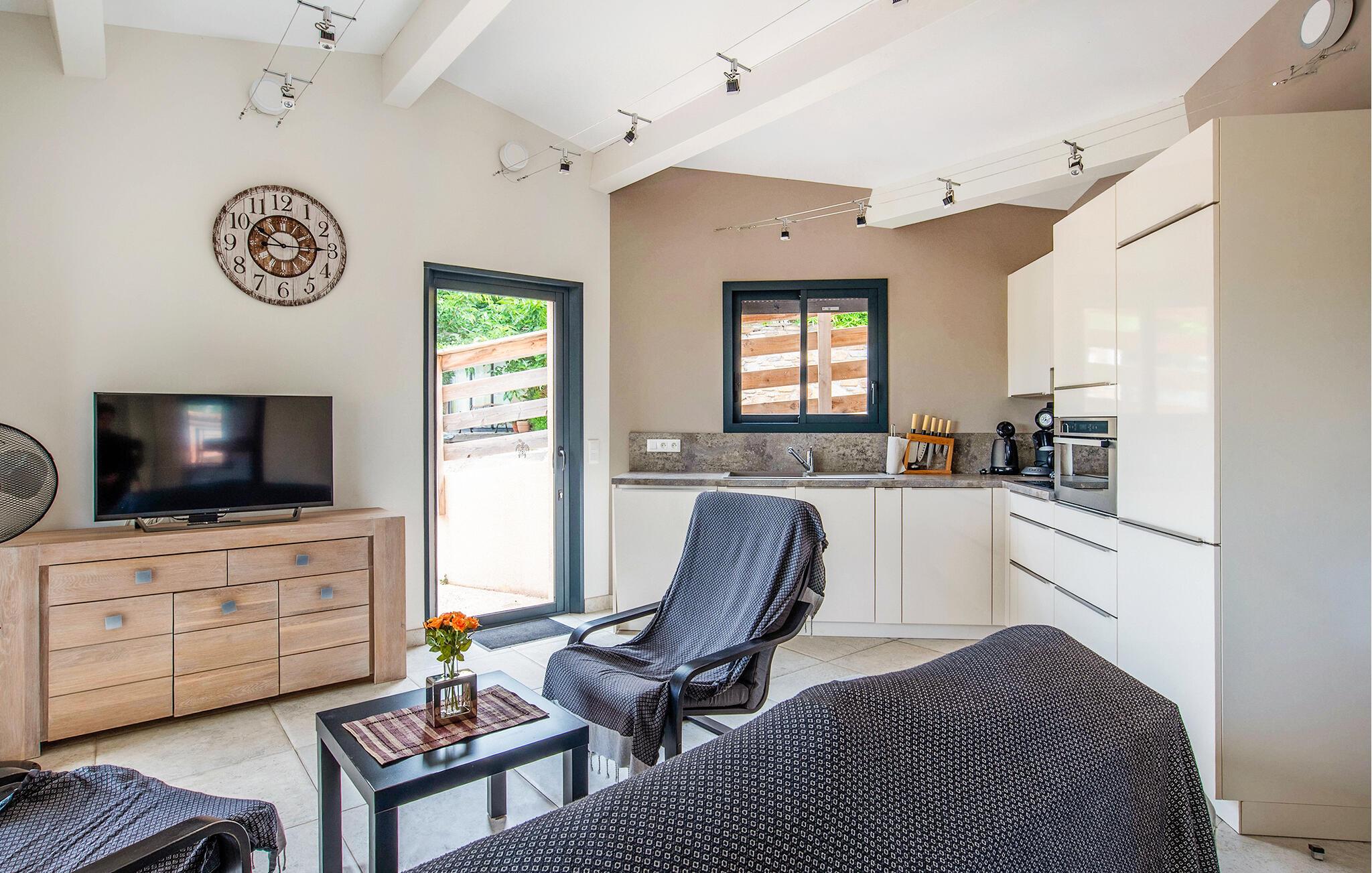 Glæd jer til jeres næste ferie i dette charmerende feriehus med udsigt over bakkerne. Beliggende i hjertet af den private og lukkede ejendom Les Maurels, tilbyder dette hus et afslappende ophold i en smuk landsby, kun kort afstand fra Middelhavet. find sammen med familie eller venner i den lyse stue med tv og nyd det åbne køkken, de komfortable siddepladser og spisebordet.