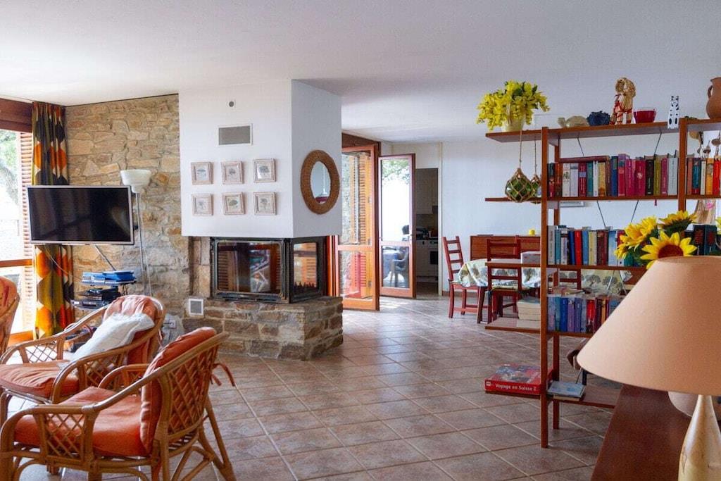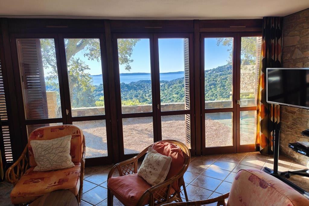 3 soveværelser (hovedsoveværelse med eget badeværelse/toilet, soveværelse med to udtrækssenge, soveværelse med en enkeltseng og en køjeseng med 2 børnesenge). 1 badeværelse med bruser. 2 separate toiletter. Alle værelser har direkte adgang til den store terrasse i skyggen af korkege og med en spektakulær udsigt over Cap Bénat og havet. Der er en rummelig stue-spisestue med pejs og udendørs siddepladser. Køkkenet er udstyret med opvaskemaskine, keramisk kogeplade, ovn, mikrobølgeovn, køleskab og filterkaffemaskine. Der er en vaskemaskine i bryggerset. Parkering er tilgængelig i starten af Allee de Néptune.