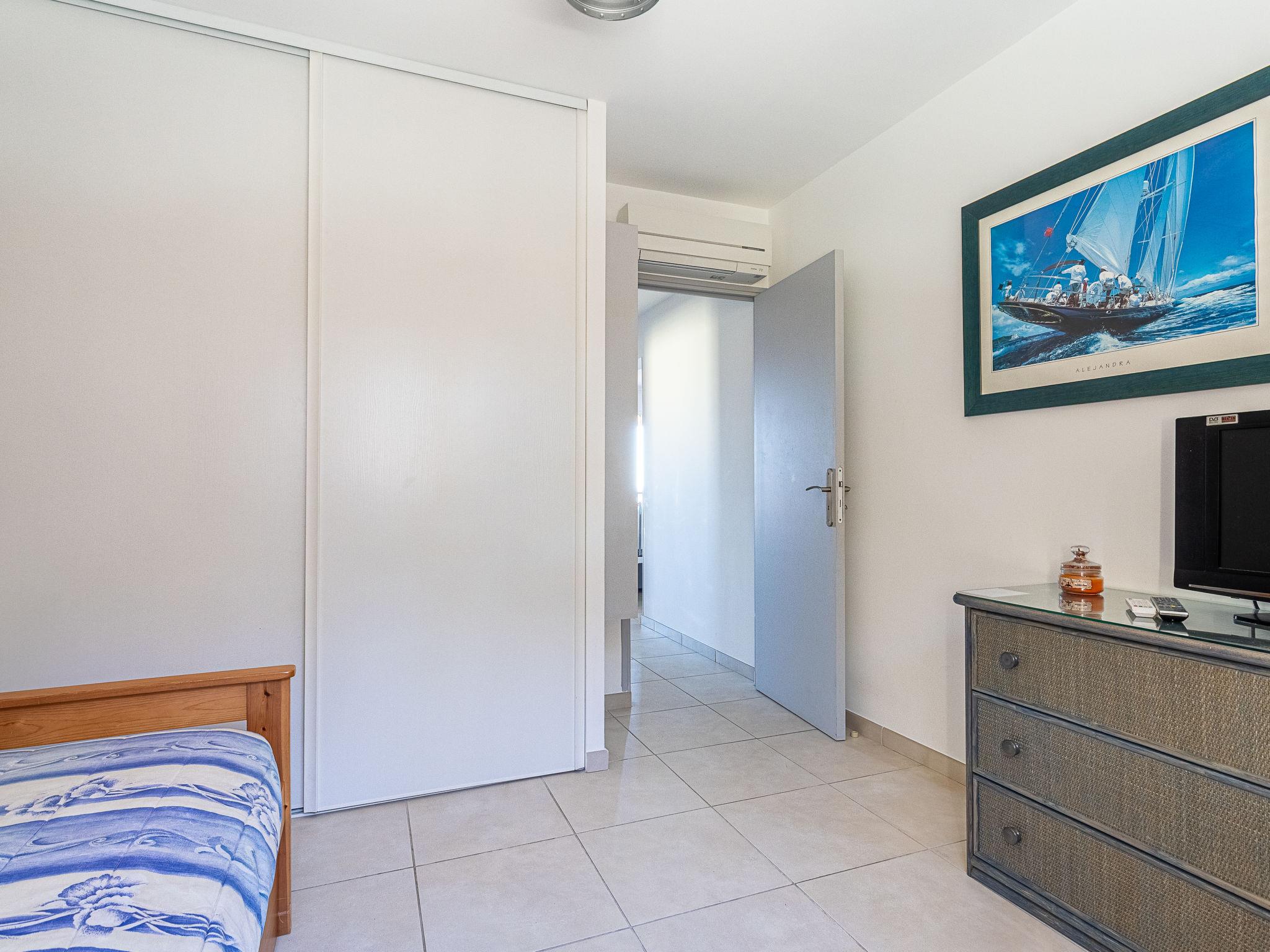 3-room apartment 67 m2 on 1st floor, east facing position. Beautiful furnishings: living/dining room with TV (flat screen). Exit to the terrace. 1 room with 1 french bed (160 cm, length 200 cm), air conditioning. Exit to the terrace. 1 room with 2 pull-out beds (1 pers. 2 x 90 cm, length 190 cm), TV (flat screen), air conditioning. Open kitchen (oven, dishwasher, 4 ceramic glass hob hotplates, toaster, kettle, microwave, electric coffee machine). Shower, sep. WC. Terrace 10 m2, east facing position. Terrace furniture. View of the sea. Facilities: washing machine, iron, hair dryer. Internet (WiFi, extra). Parking. Please note: non-smokers only. TV only FR. Smoke alarm. Offer by a private individual according to Art. 155, IV of CGI. 83070001102KX
