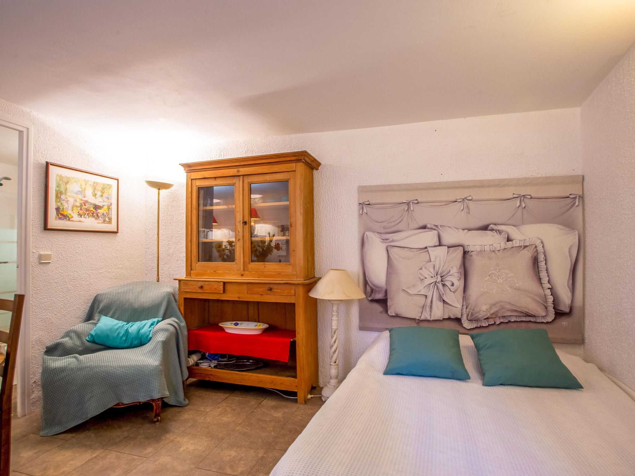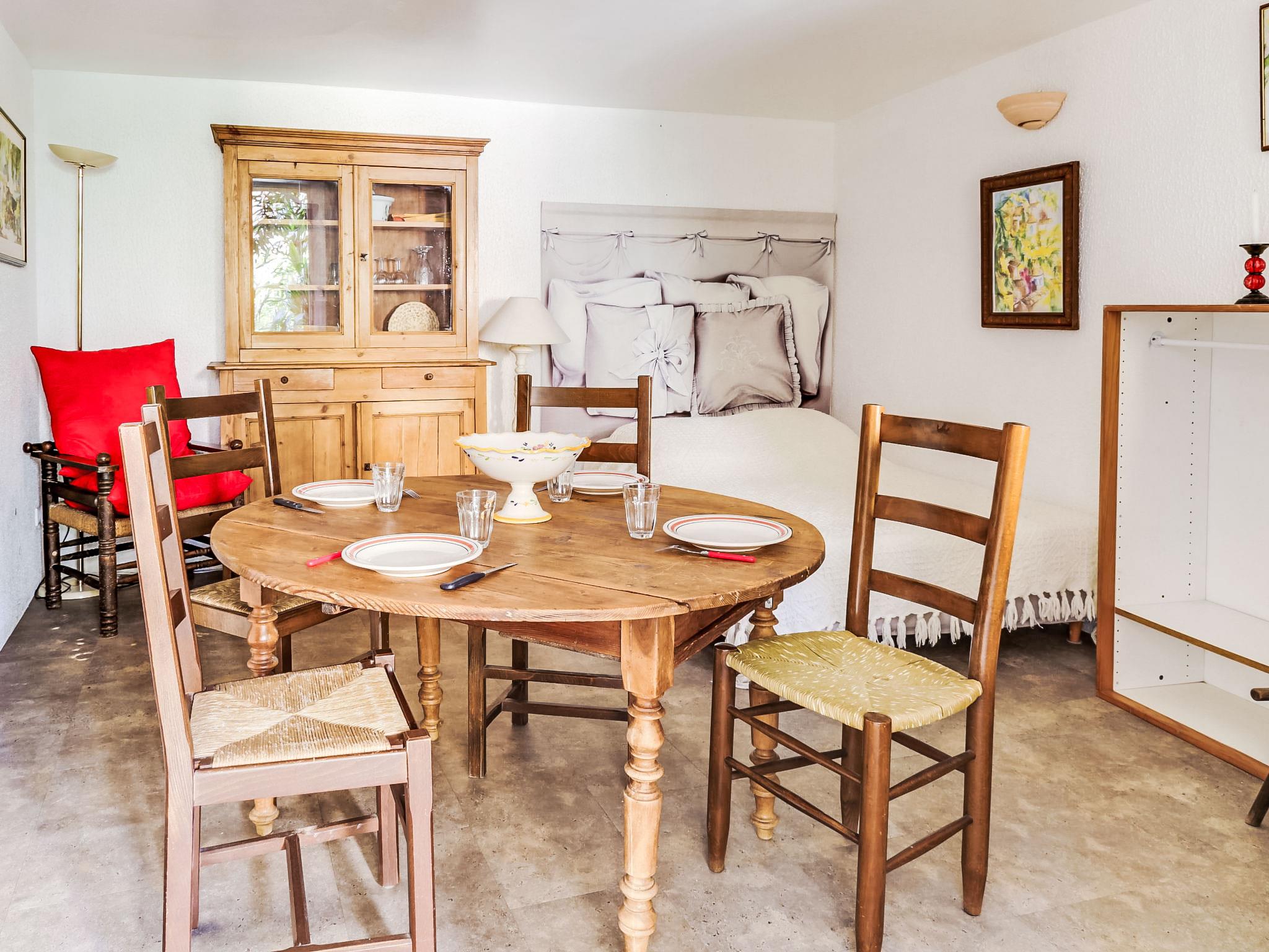1-room studio 25 m2, on the ground floor. Beautiful furnishings: living/dining room with 1 french bed (140 cm, length 190 cm), TV (flat screen). Kitchenette (2 hot plates, toaster, kettle, microwave, electric coffee machine). Shower/WC. Electric heating. Facilities: Internet (WiFi, extra). Please note: non-smokers only, no parking. TV only FR. Smoke alarm, no lift. 83019001515YJ