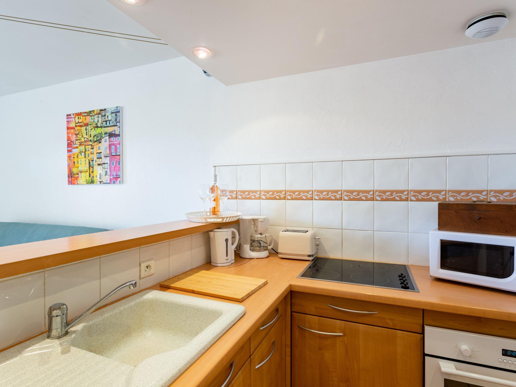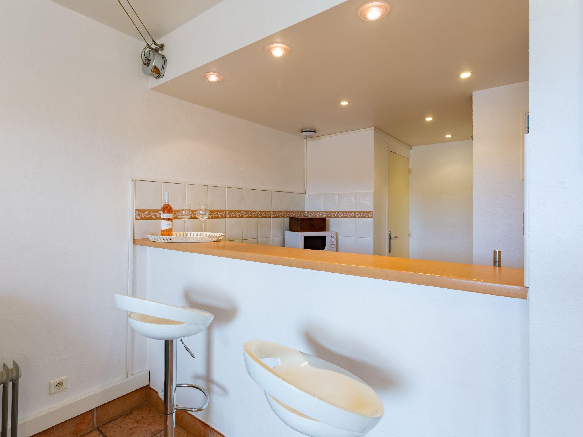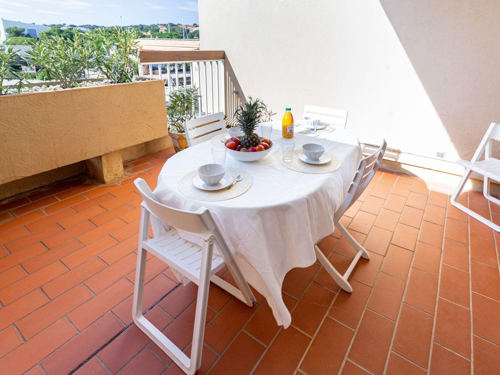 2-room apartment 40 m2 on 1st floor. Bright, comfortable furnishings: living room with 1 double sofabed (160 cm, length 190 cm), TV (flat screen). Exit to the terrace. 1 room with 1 french bed (160 cm, length 200 cm). Exit to the balcony. Open kitchen (oven, dishwasher, 4 induction hot plates, toaster, kettle, electric coffee machine). Shower/WC, hydro massage shower. Electric heating, air-conditioning, boiler (200 litres). Terrace 20 m2, south-west facing position. View of the port. Facilities: washing machine, iron, hair dryer. Internet (WiFi, free). Please note: non-smokers only, no parking. TV only FR. Smoke alarm, no lift. 830190010310R