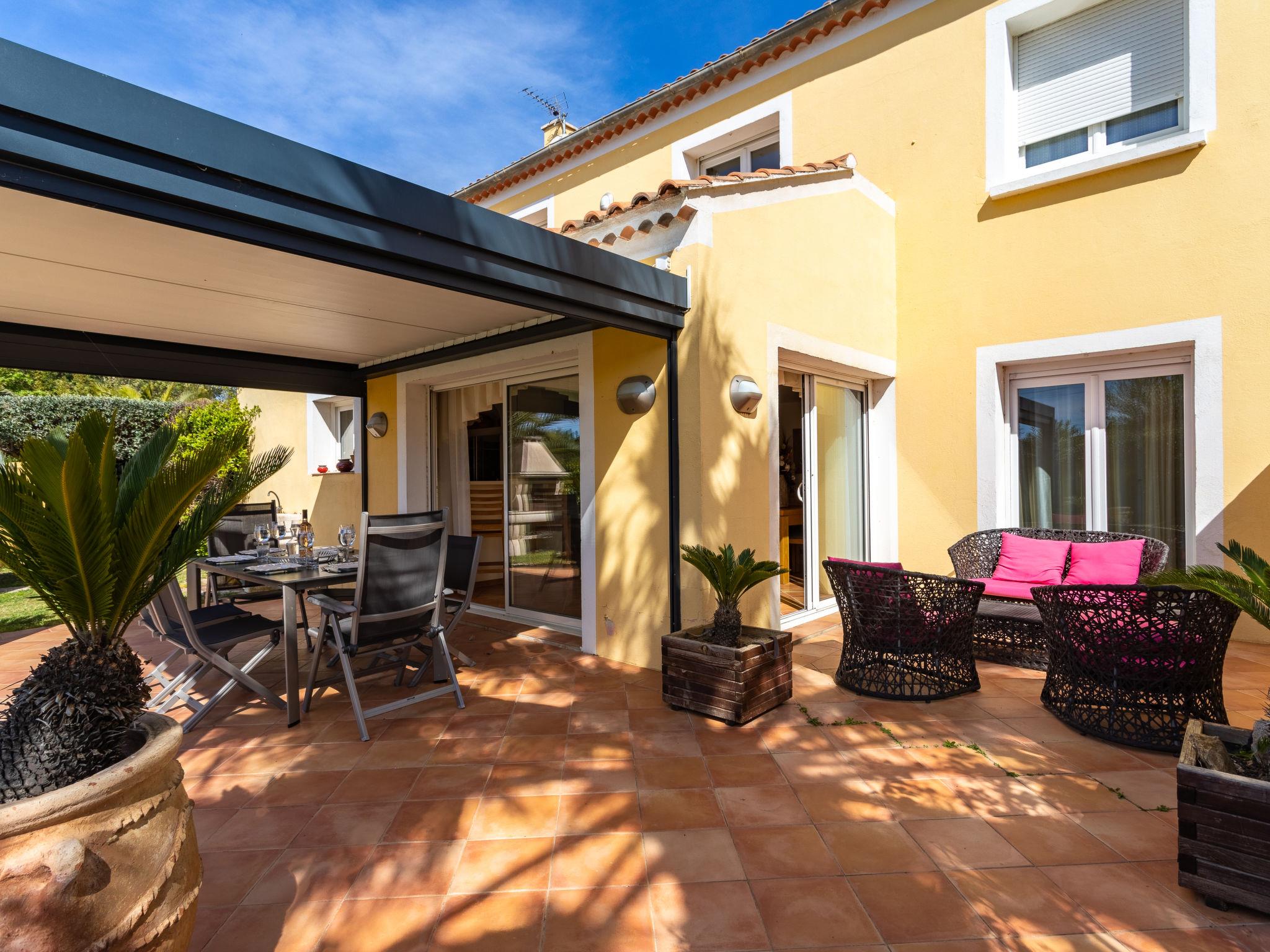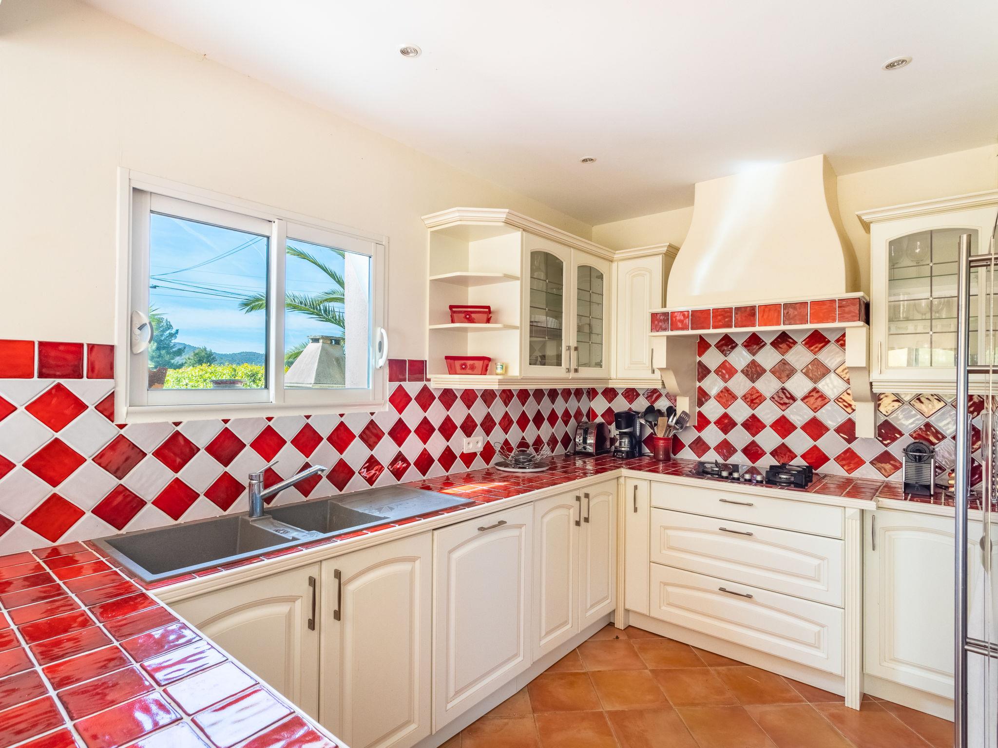 Bormes-les-Mimosas 2 km from Le Lavandou: Beautiful, comfortable house "Maison Boutons d'Or", 2 storeys, semi-detached, surrounded by vineyards. In a quiet position, 3 km from the sea, 3 km from the beach, in a cul-de-sac, south facing position. Pool maintenance by the owner/gardener. Private: swimming pool angular (7 x 4 m, depth 140 - 140 cm, seasonal availability: 15.May. - 30.Sep.) with shutter cover and salt-electrolysis pool-cleaning system. Pool maintenance by the owner/gardener. Narrow motor access (via unmade road). Parking on the premises. Supermarket 1.5 km, restaurant 1 km, bakery 1 km, bus stop "Saint pons" 1.5 km, sandy beach "du Lavandou" 3 km. Sports harbour 4 km. Nearby attractions: Magic World 24 km, Saint Tropez 40 km, Parc Olbius Riquier 20 km, Le Jardin des Méditerranées 17 km. Hiking paths: Sentiers du Littoral. The owner does not accept any youth groups. Please note: the keys‘ handover takes place by the agency Interhome in Le Lavandou, 3 km. The owner lives on the same property.