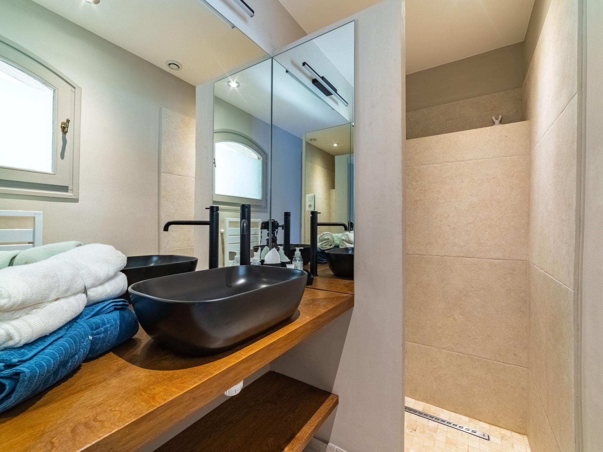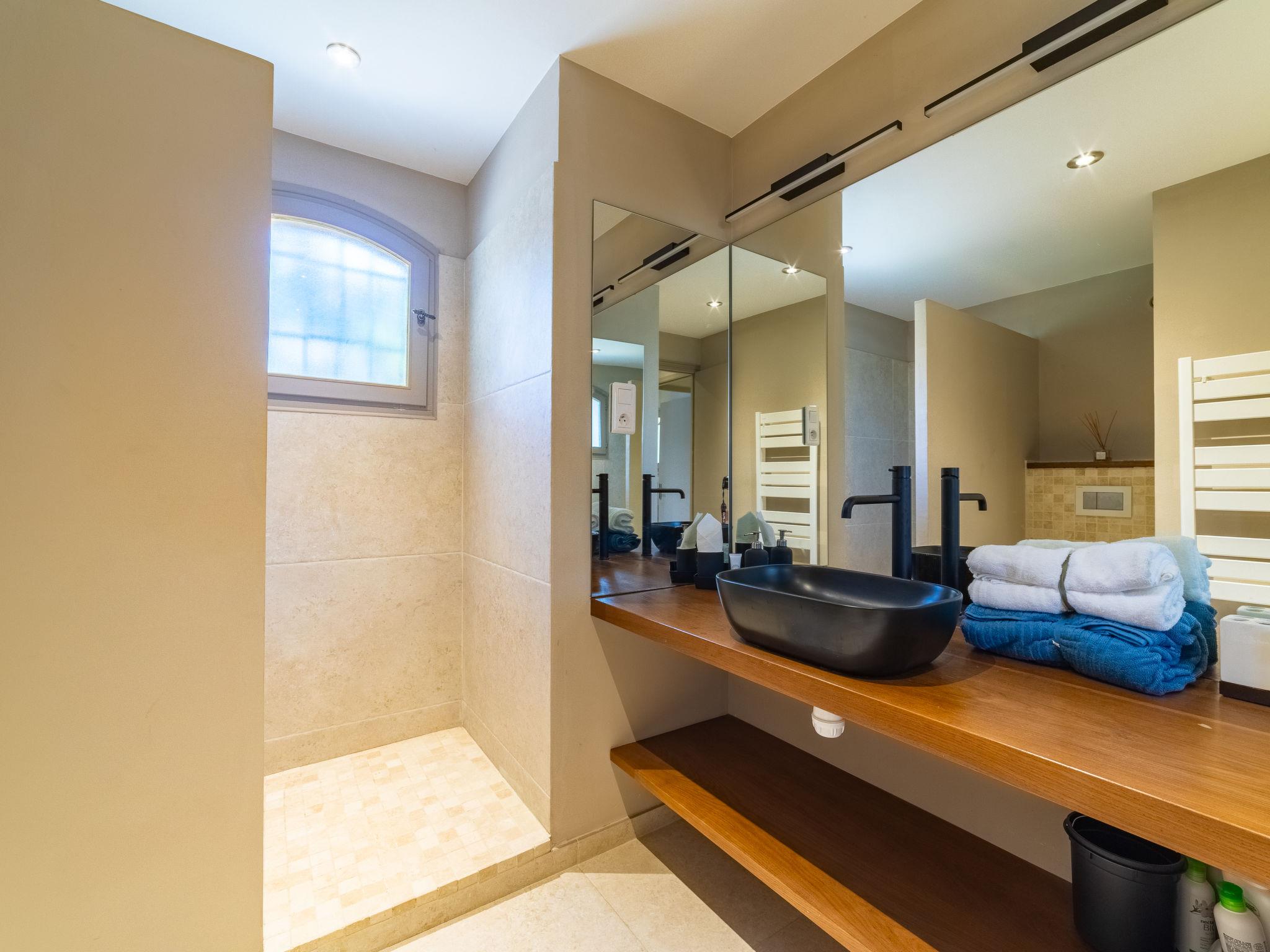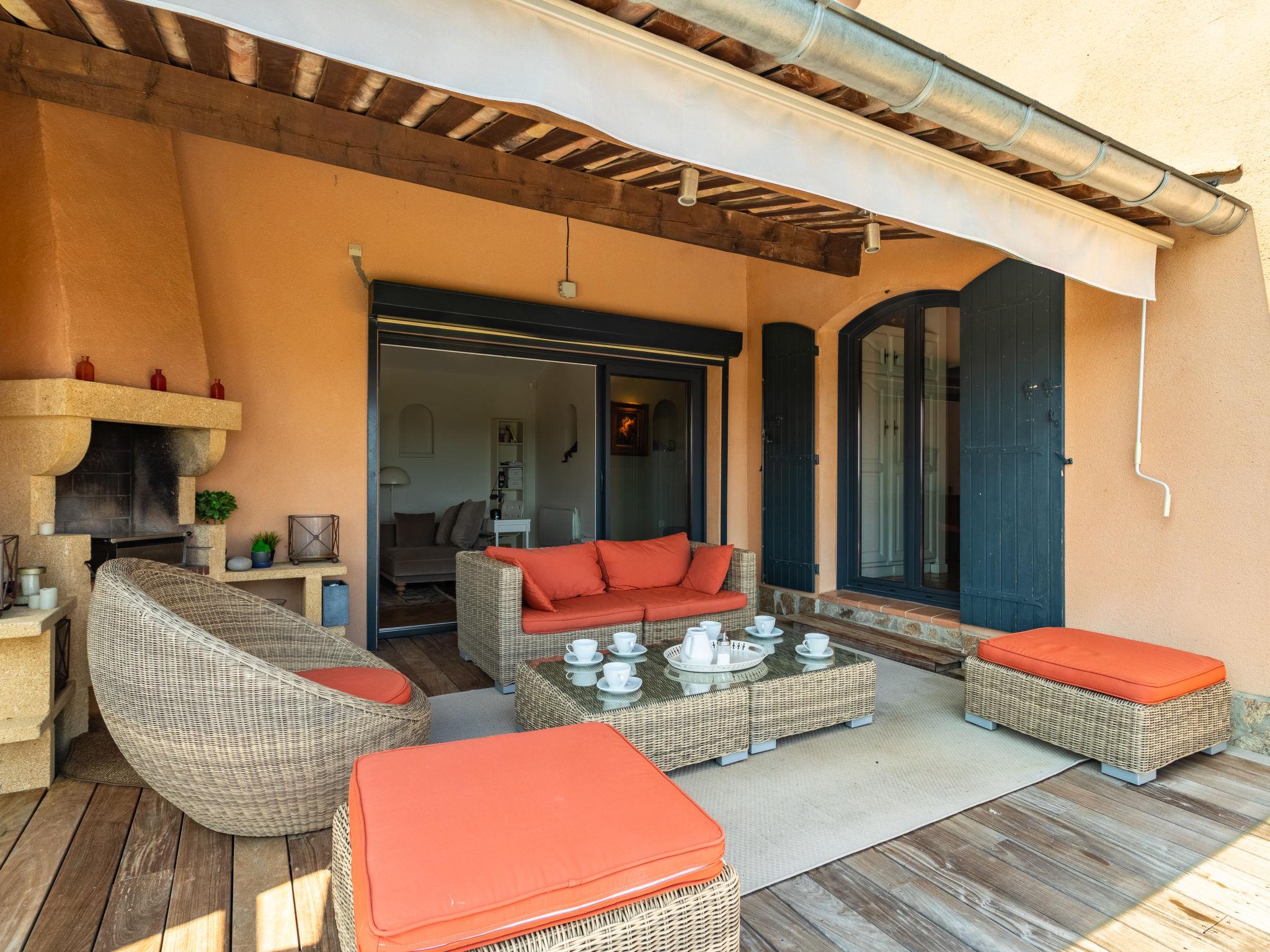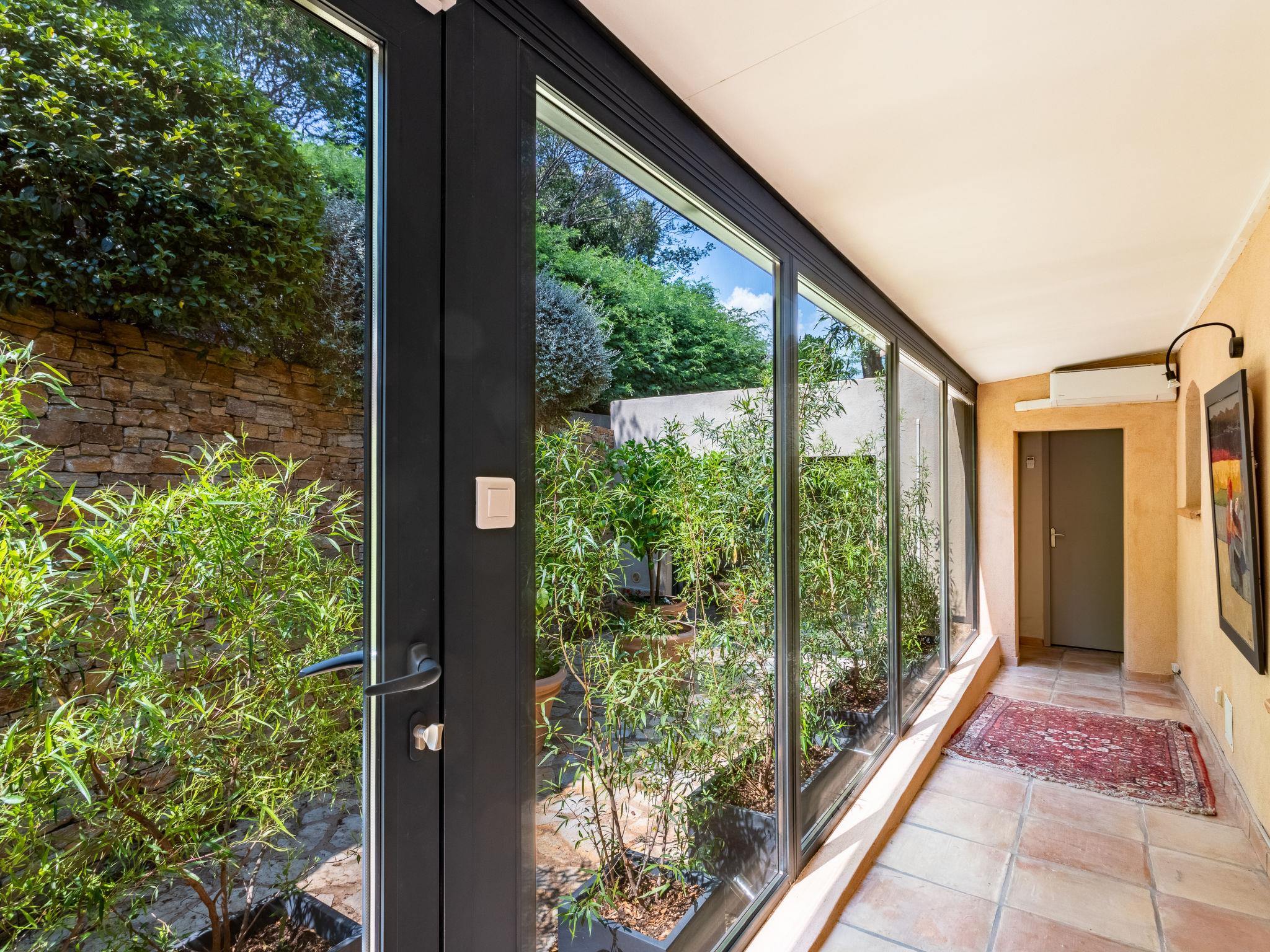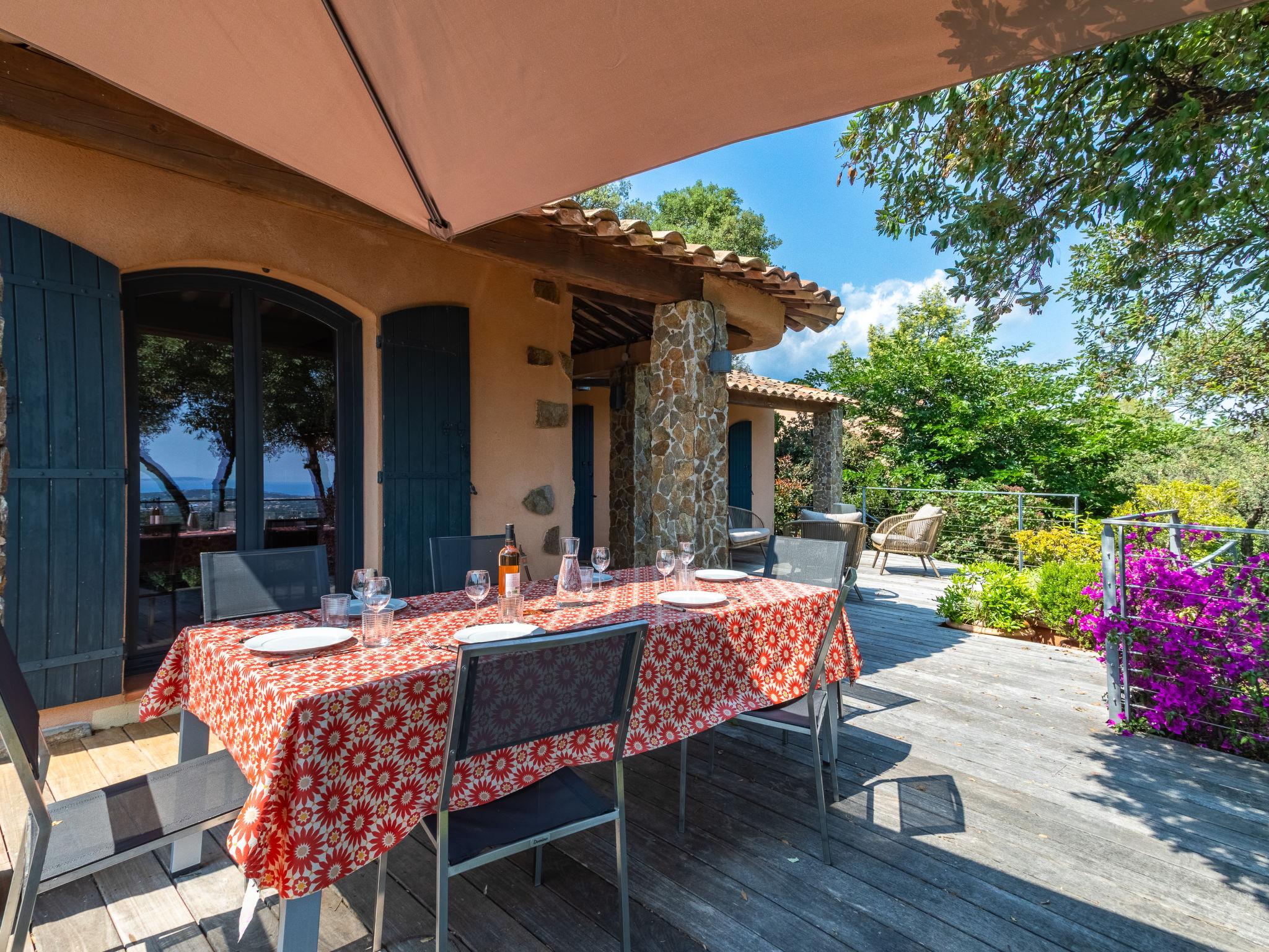 4-room villa 160 m2. Beautiful furnishings: living/dining room with panoramic window with flat screen, CD-player and hi-fi system. Exit to the terrace, to the swimming pool. 1 room with 2 beds (90 cm, length 190 cm), shower and air conditioning. Exit to the terrace. 1 room with 1 french bed (160 cm, length 200 cm), shower/WC and air conditioning. Exit to the terrace. Large kitchen (oven, dishwasher, 4 induction hot plates, toaster, kettle, microwave, freezer, electric coffee machine) with dining table. Exit to the terrace. Sep. WC. Electric heating. Upper floor: 1 room with 1 french bed (1 x 160 cm, length 200 cm), shower, double hand-basin and air conditioning. Sep. WC. Large terrace 150 m2. Terrace furniture, deck chairs (4). Very beautiful distant view of the sea. Facilities: washing machine, iron, hair dryer. Internet (WiFi, free). Please note: non-smoking house. TV only FR. Smoke alarm. Wine cellar. 83019 000528LS