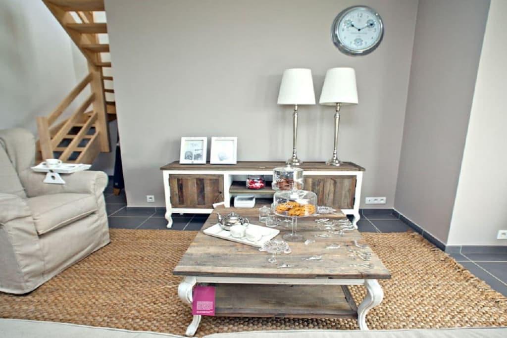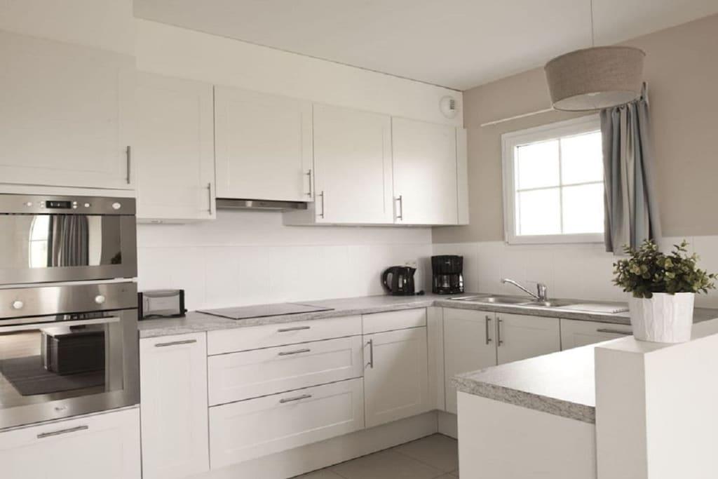 Stueetage: (Køkken(kogeplade, elkedel, brødrister, komfur, kaffemaskine, ovn, opvaskemaskine , køleskab), Stue/soveværelse(, enkeltsovesofa, Fjernsyn), stue / spisestue(, Fjernsyn, spisebord), guest toilet(, toilet, håndvask)) På 1. etage: (soveværelse(, , dobbeltseng), soveværelse(, , enkeltseng, enkeltseng, enkeltseng), badeværelse(, toilet, badekar, bruser, håndvask)) , , balkon, varme, terrasse(havemøbler), parkering