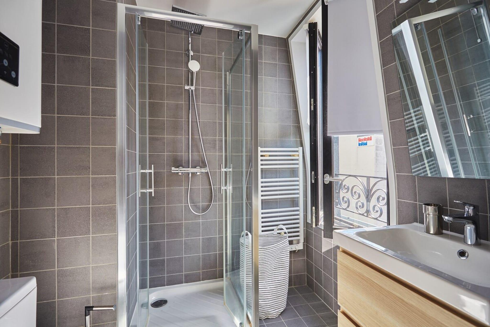 På 3. etage: (Stue(enkeltsovesofa, Fjernsyn), Køkken(spisebord, kakkelovn, elkedel, brødrister, kaffemaskine, mikrobølgeovn, køleskab, fryser, , , Baking sheet, Wine glasses), soveværelse(dobbeltseng), badeværelse(bruser, toilet, føntørrer, , )) , , , , Førstehjælp, vaskemaskine, strygejern, , , Carbon monoxide detector, Coffee, Downtown, Shower gel