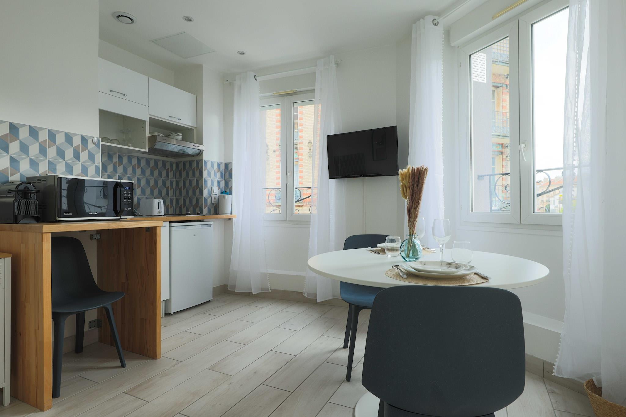 På 2. etage: (Køkken(kakkelovn, elkedel, brødrister, mikrobølgeovn, køleskab, , ), Stue/soveværelse(, dobbeltsovesofa, Fjernsyn), badeværelse(bruser, toilet, føntørrer, Håndklæder/sengelinned (inkl.), )) , , , Førstehjælp, Legeområde, varme, strygejern, , , Carbon monoxide detector, Cleaning Disinfection, Downtown, Enhanced cleaning practices, High touch surfaces disinfected, Long term stays allowed, Town