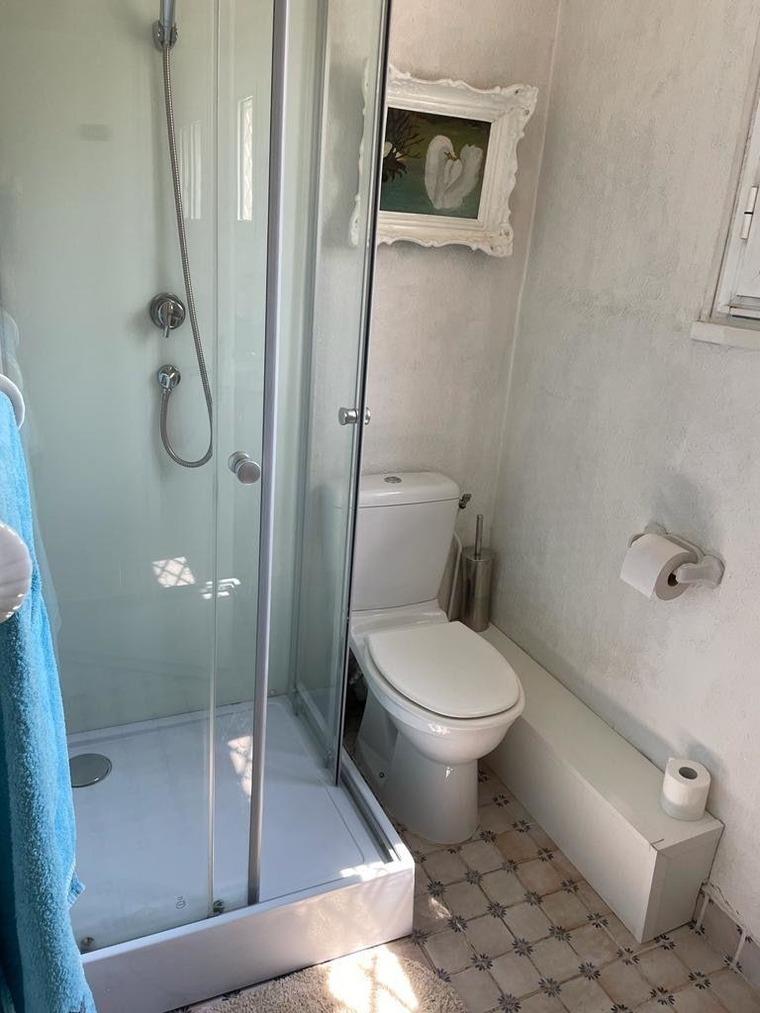 Das Haus verfügt über 2 Schlafzimmer mit Doppelbetten ( 160x200m ). Eine vollausgestatte Küche sowie ein schönes Badezimmer mit Dusche und Toilette sind vorhanden. Es gibt noch eine Gäste Toilette sowie eine Außendusche. Im Wohnzimmer befinden sich 2 große Sofas und ein Kamin. Sat TV und eine Marshall Bluetooth Box sind vorhanden. Im Esszimmer finden bis zu 4 Personen Platz.