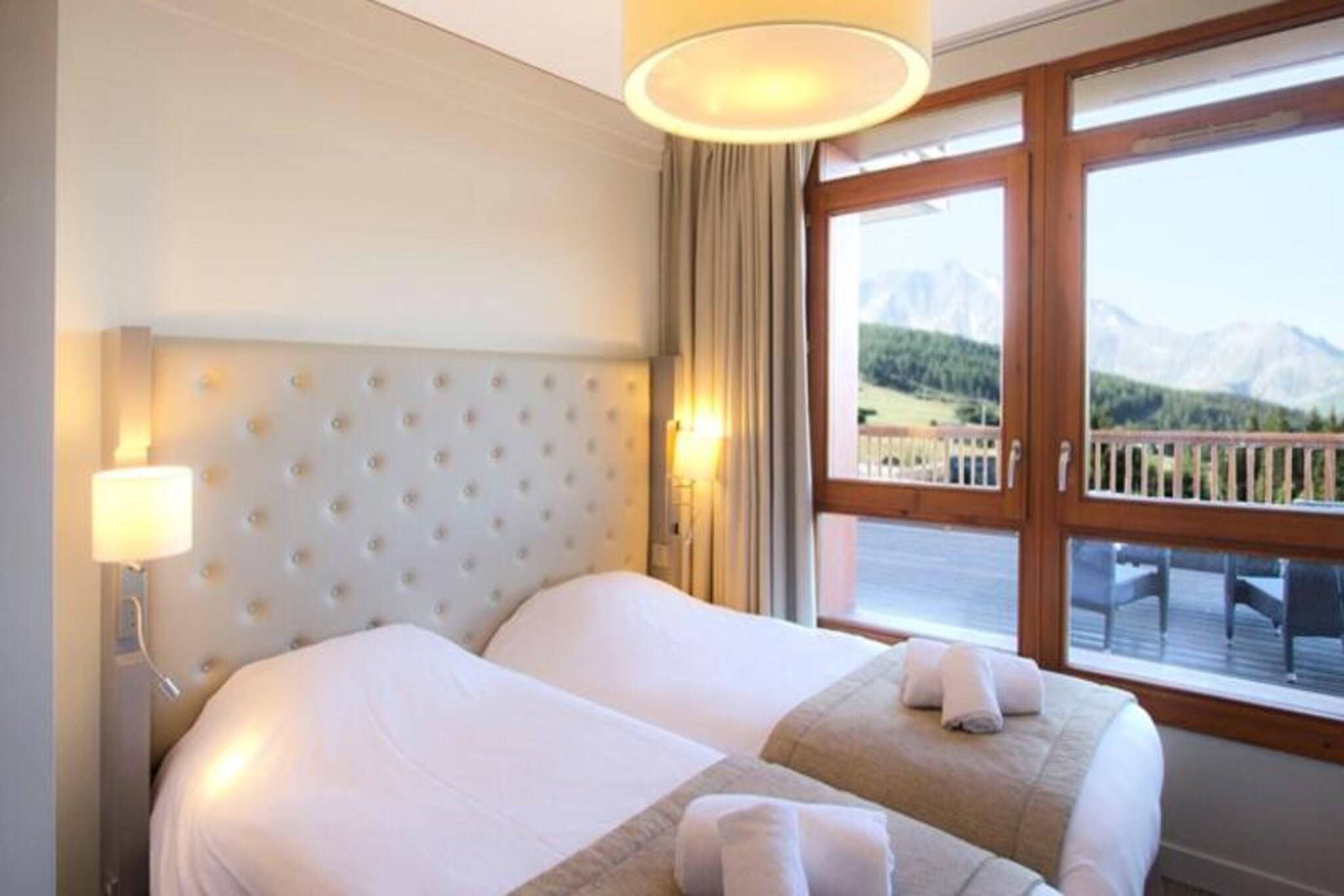 Nyd et luksuri?st ophold i denne velindrettede lejlighed med en f?rsteklasses beliggenhed ud mod Mont Blanc. Perfekt til op til seks g?ster, lejligheden har en stue med en sovesofa til to, et sovev?relse med en dobbeltseng og et andet sovev?relse med to enkeltsenge. Der er ogs? et badev?relse, brusebad og separat toilet. K?ledyr er velkomne mod et ekstra gebyr, med visse betingelser, herunder en opdateret vaccinationsjournal. Daglig reng?ring er inkluderet, med undtagelse af k?kken og opvask. Parkering er tilg?ngelig, herunder overd?kkede pladser i h?js?sonen. Beliggende i udkanten af ??skoven tilbyder denne lejlighed nem adgang til Alpernes naturlige sk?nhed. Placeringen giver et fredeligt tilflugtssted v?k fra det travle feriestedscenter, men tilbyder alligevel nem adgang til udend?rs aktiviteter, herunder vandreture og skil?b. G?sterne kan nyde de n?rliggende landsbyfaciliteter og udforske lokale caf?er, butikker og markeder. Den fantastiske udsigt over Tarentaise-dalen og Mont Blanc g?r dette til et ideelt sted for naturelskere, der s?ger afslapning og eventyr. Indvendigt har lejligheden et fuldt udstyret tek?kken til nem tilberedning af m?ltider. Boligrummene er moderne og komfortable, og blander luksus med traditionel alpin charme. Yderligere faciliteter inkluderer gratis Wi-Fi, tv med Canal+ og adgang til de opvarmede indend?rs og udend?rs swimmingpools, sauna og jacuzzi i den n?rliggende bolig. Et babys?t er tilg?ngeligt efter anmodning, og senget?j og h?ndkl?der leveres til et problemfrit ophold.