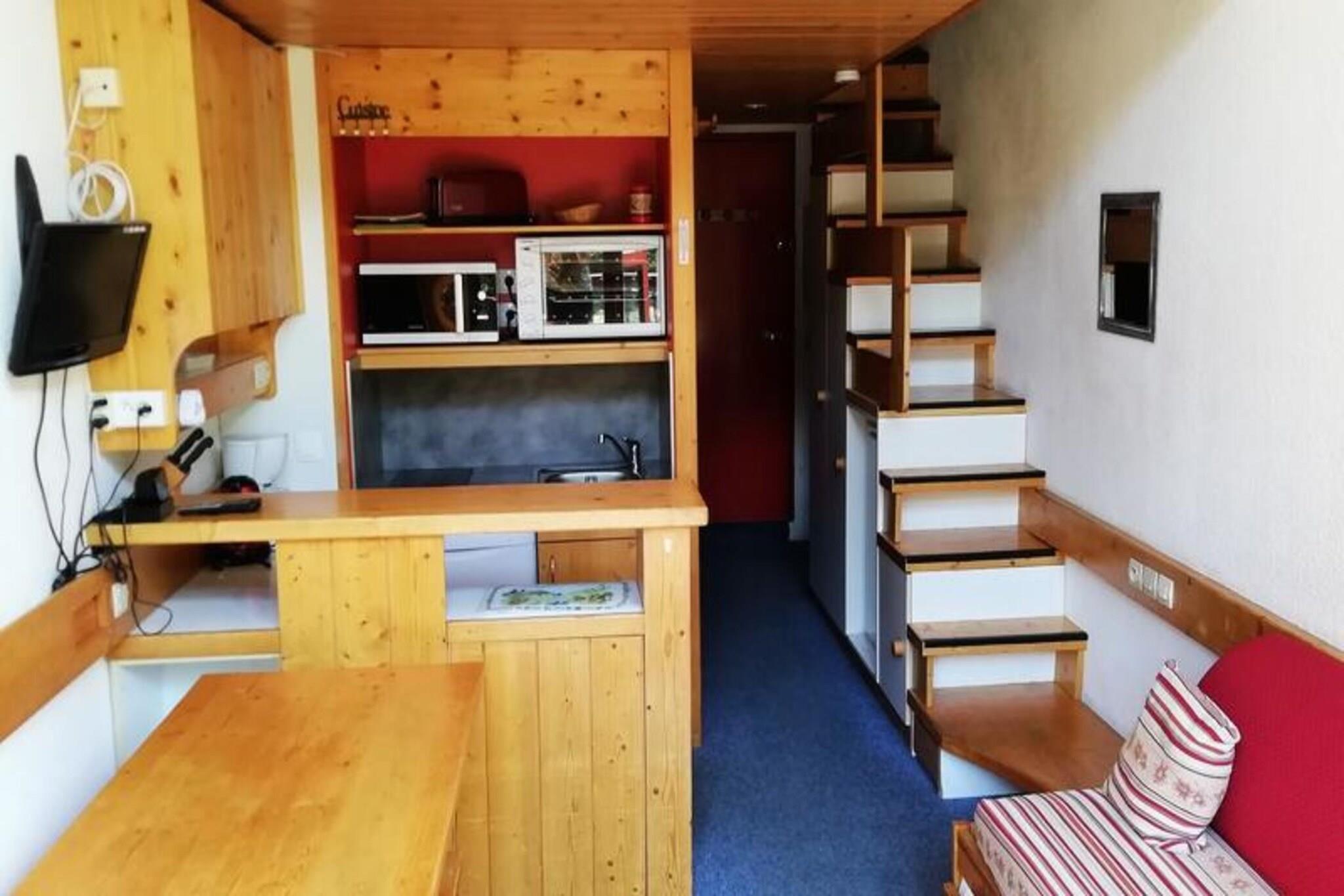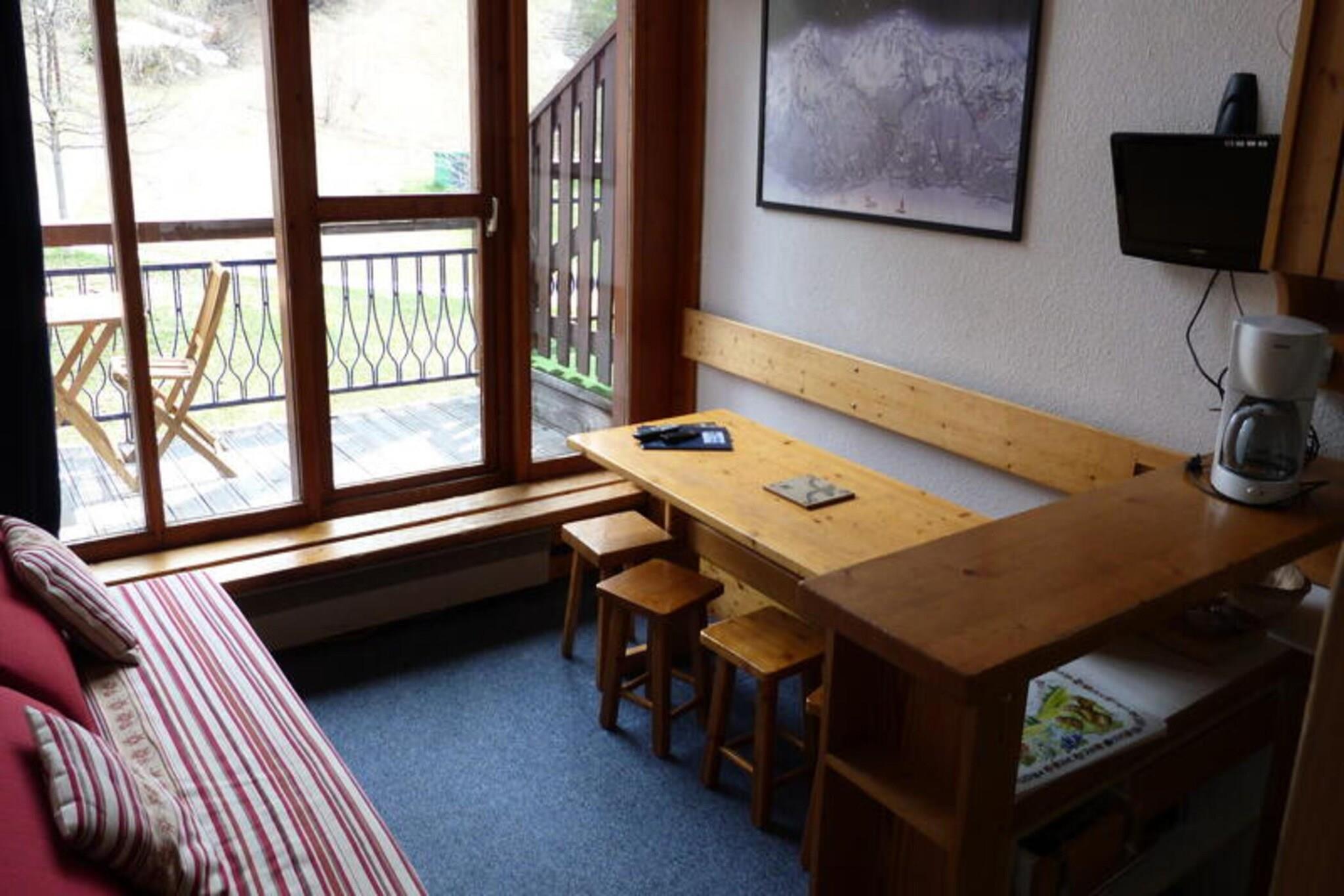 Denne charmerende 30 m² duplex lejlighed kan komfortabelt rumme op til 5 personer, hvilket gør den perfekt til en lille familie eller gruppe. Lejligheden ligger på anden sal i en bolig med elevator og har en sydvendt balkon med smuk udsigt. Stuen har en udtrækssovesofa, mens mezzaninen har en dobbeltseng og et sæt køjesenge (velegnet til børn over 6 år). Kæledyr er tilladt mod et ekstra gebyr, og lejligheden er ikke-ryger. Lejligheden ligger i Charmettoger, kun 3 minutters gang fra Transarc-skiliften og "Charmettoger"-bakken. Et bageri, en købmand og en restaurant ligger i nærheden, mens supermarkedet og ESF ligger 7 minutter væk i Les Villards. Gratis transport kører hvert 20. minut om vinteren og hver time om sommeren til lokale attraktioner, herunder turist- og lægekontorerne. Lejligheden har et fuldt udstyret åbent køkken med induktionskomfur, ovn, køleskab, brødrister, kedel, kaffemaskine, mikroovn og opvaskemaskine. Badeværelset er udstyret med badekar og toilet. Yderligere faciliteter omfatter et fjernsyn i stuen og varme. Sengetøj og håndklæder er tilgængelige mod et tillægsgebyr, og der opkræves et depositum ved ankomst. Lejligheden tilbyder også adgang til overdækket parkering mod et tillægsgebyr.