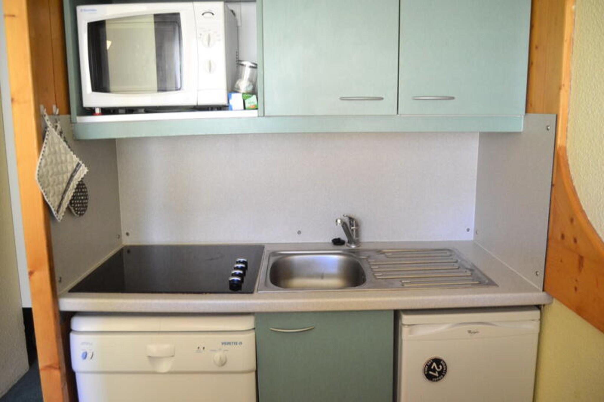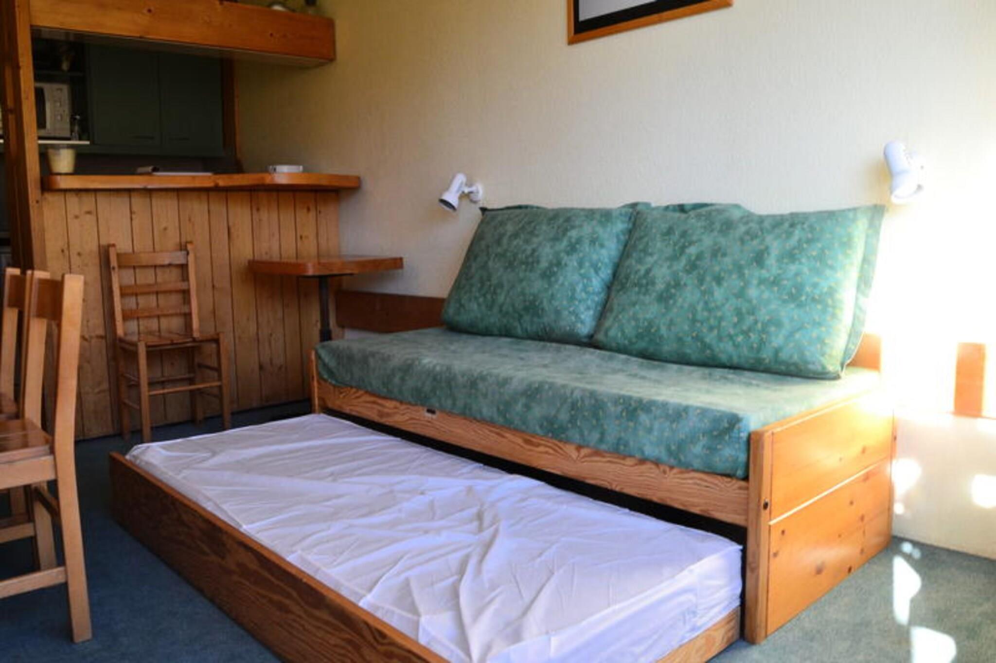 Beliggende i hjertet af en charmerende alpelandsby tilbyder denne hyggelige lejlighed et komfortabelt tilflugtssted for op til fem gæster. Indkvarteringen har en stue med en udtrækssovesofa, et bjerghjørne med køjesenge og en ekstra udtræksseng, hvilket gør den ideel til familier eller små grupper. En sydvestvendt altan giver en fantastisk udsigt over skoven og skiløjperne. Kæledyr er velkomne mod et ekstra gebyr, og parkeringsmuligheder er tilgængelige overalt på feriestedet for din bekvemmelighed. Ejendommen er perfekt placeret for skientusiaster og naturelskere og giver dig mulighed for at stå på ski direkte fra boligens døre til de nærliggende pister. "Vagère" stoleliften og "Transarc" gondolen er let tilgængelige, hvilket sikrer hurtig adgang til alpine eventyr. Gæsterne vil sætte pris på nærheden til det pulserende indkøbscenter, lokale supermarkeder og restauranter, alle inden for gåafstand. ESF-skiskolen ligger kun fem minutters gang væk, mens gratis transport forbinder dig til det bredere område. Lejligheden har et fuldt udstyret køkken med elektriske kogeplader, en kombineret ovn/mikrobølgeovn, et køleskab og en opvaskemaskine, hvilket gør madlavning til en leg. Et moderne badeværelse har badekar og toilet for ekstra komfort. Yderligere faciliteter inkluderer et tv, dyner og mulighed for at leje sengetøj og håndklæder. Uanset om det er til en vintertur på ski eller en sommerferie, tilbyder denne lejlighed alt hvad du behøver for en mindeværdig bjergflugt.