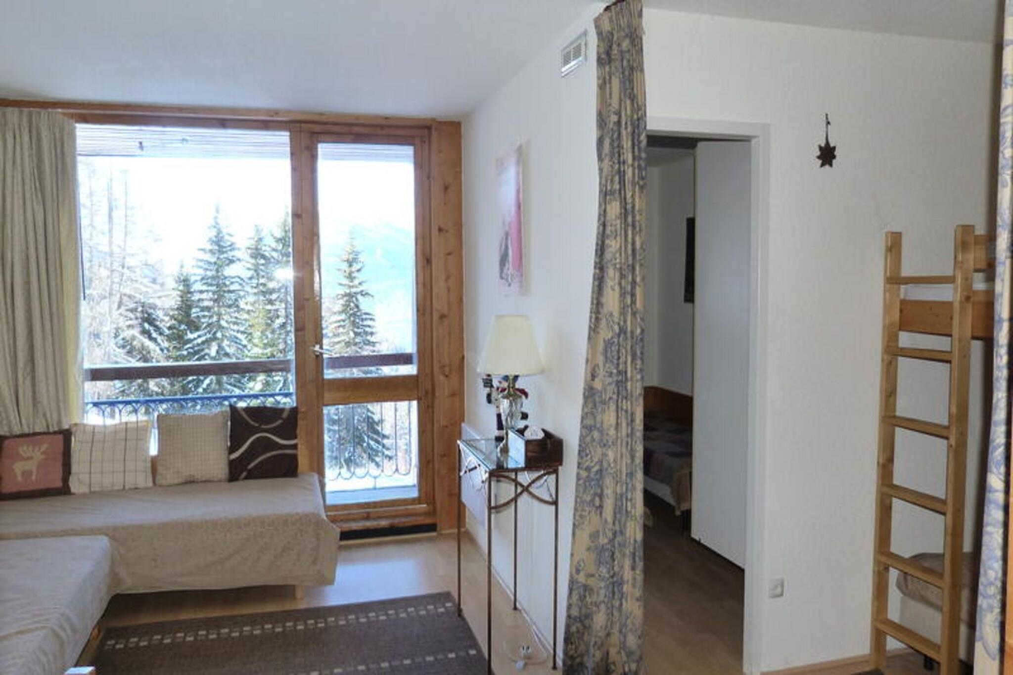 Denne indbydende toværelseslejlighed tilbyder et komfortabelt tilflugtssted for op til seks gæster, med to enkeltsenge i opholdsområdet, to enkeltsenge i soveværelset og et bjerghjørne med køjesenge (ikke egnet til børn under seks). En rummelig balkon med syd-vest orientering giver en fantastisk udsigt over bjergene og dalen, perfekt til at slappe af efter en dag med aktiviteter. Denne kæledyrsvenlige ejendom omfatter også Wi-Fi, et fjernsyn og en lille vaskemaskine, hvilket sikrer bekvemmelighed og komfort under hele dit ophold. Lejligheden har en førsteklasses beliggenhed kun 150 meter fra "Vagère"-stoleliften og 200 meter fra "Transarc"-gondolen, der tilbyder nem adgang til skiløb og vandrestier. Nærliggende faciliteter omfatter et supermarked, barer, restauranter og ESF-skiskolen, alt inden for en kort gåtur. Shuttle-stoppestedet, der ligger 20 meter væk, sikrer ubesværet transport rundt på feriestedet. En fem-minutters gåtur tager dig til turistkontoret og lægecentret, hvilket gør det til et ideelt valg for at udforske den pulserende landsby. Lejligheden har et fuldt udstyret køkken med elektriske kogeplader, mikroovn, køleskab, opvaskemaskine og ovn, ideel til at tilberede måltider. Badeværelset har badekar og separat toilet. Yderligere faciliteter såsom parkeringsmuligheder, leje af sengetøj og kæledyrsindkvartering forbedrer dit ophold. Ikke-ryger og designet med praktiske tanker, er dette hyggelige bjergretræte perfekt til din næste ferie.