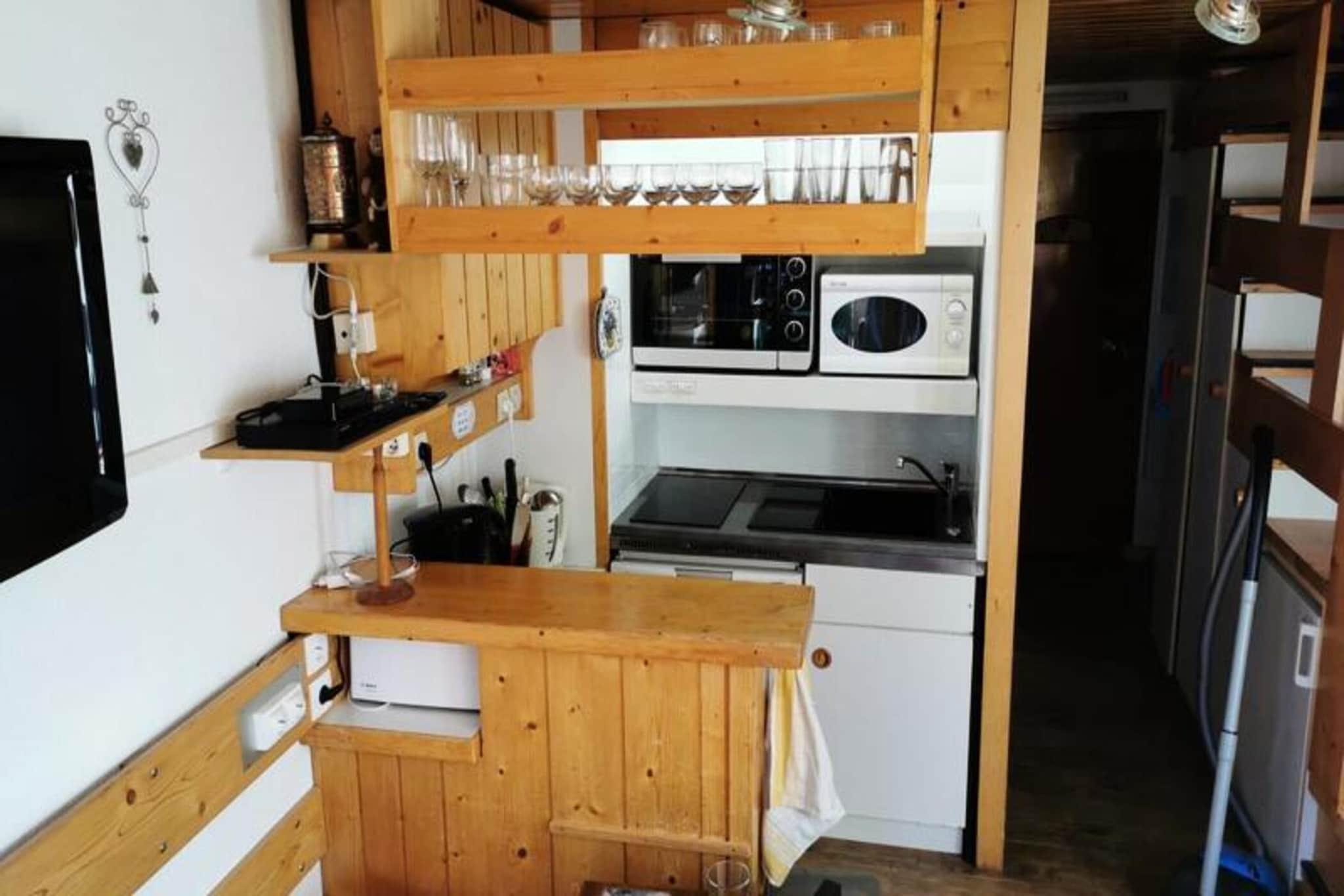 Denne hyggelige bjerglejlighed tilbyder praktisk og komfortabel indkvartering ideel til en budgetvenlig ferie. Med en mezzanin og opholdsstue kan den rumme op til 6 gæster. Sovearrangementerne inkluderer en udtræksseng i stuen, en dobbeltseng på mezzaninen og en sovesofa plus en enkeltseng i mezzaninen. Ejendommen har også en balkon med udendørsmøbler, så du kan nyde den alpine udsigt. Der er kæledyrsvenlige muligheder, hvilket gør det velegnet til familier med lodne venner (mod ekstra gebyr). Lejligheden ligger i hjertet af et livligt skisportssted i gåafstand fra en restaurant, skibutik og købmand. Ejendommens beliggenhed giver også adgang til resortets skiløjper og nærliggende attraktioner på kun en kort gåtur. For ekstra bekvemmelighed byder området på en række spise- og shoppingmuligheder i tilstødende distrikter, perfekt til afterski-nydelse. Lejligheden har et åbent køkken udstyret med grundlæggende faciliteter såsom komfur og køleskab, hvilket sikrer, at du kan tilberede måltider under dit ophold. Badeværelset er udstyret med bruser og toilet. Yderligere tjenester, såsom Wi-Fi-adgang, babysæt og leje af sengetøj, er tilgængelige mod et ekstra gebyr. Slutrengøring er obligatorisk og kan arrangeres ved ankomsten. Dette funktionelle rum er ideelt til en afslappet og overkommelig alpine ferie.
