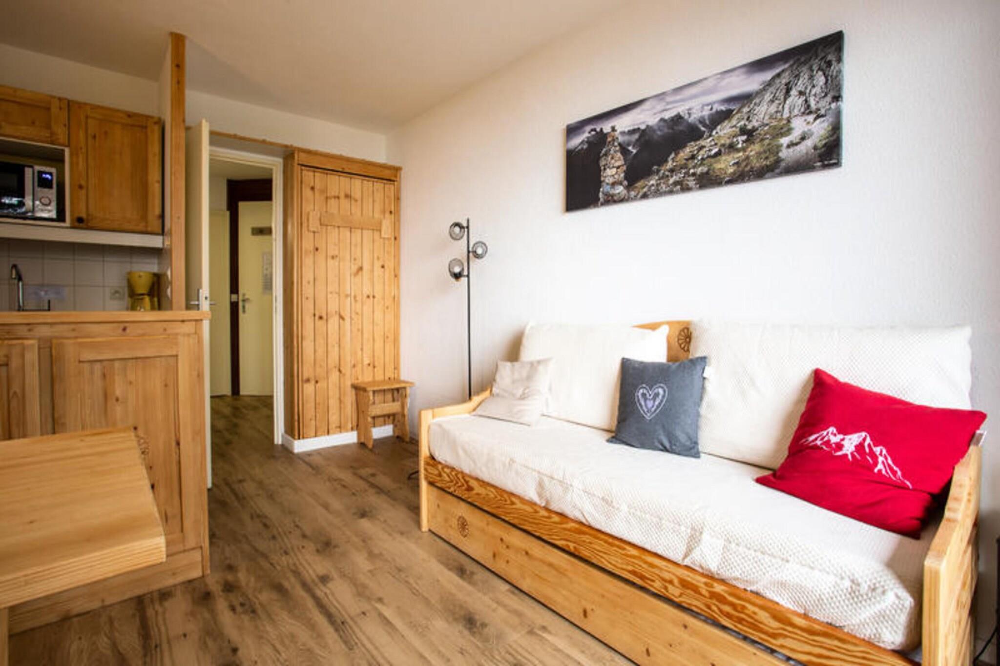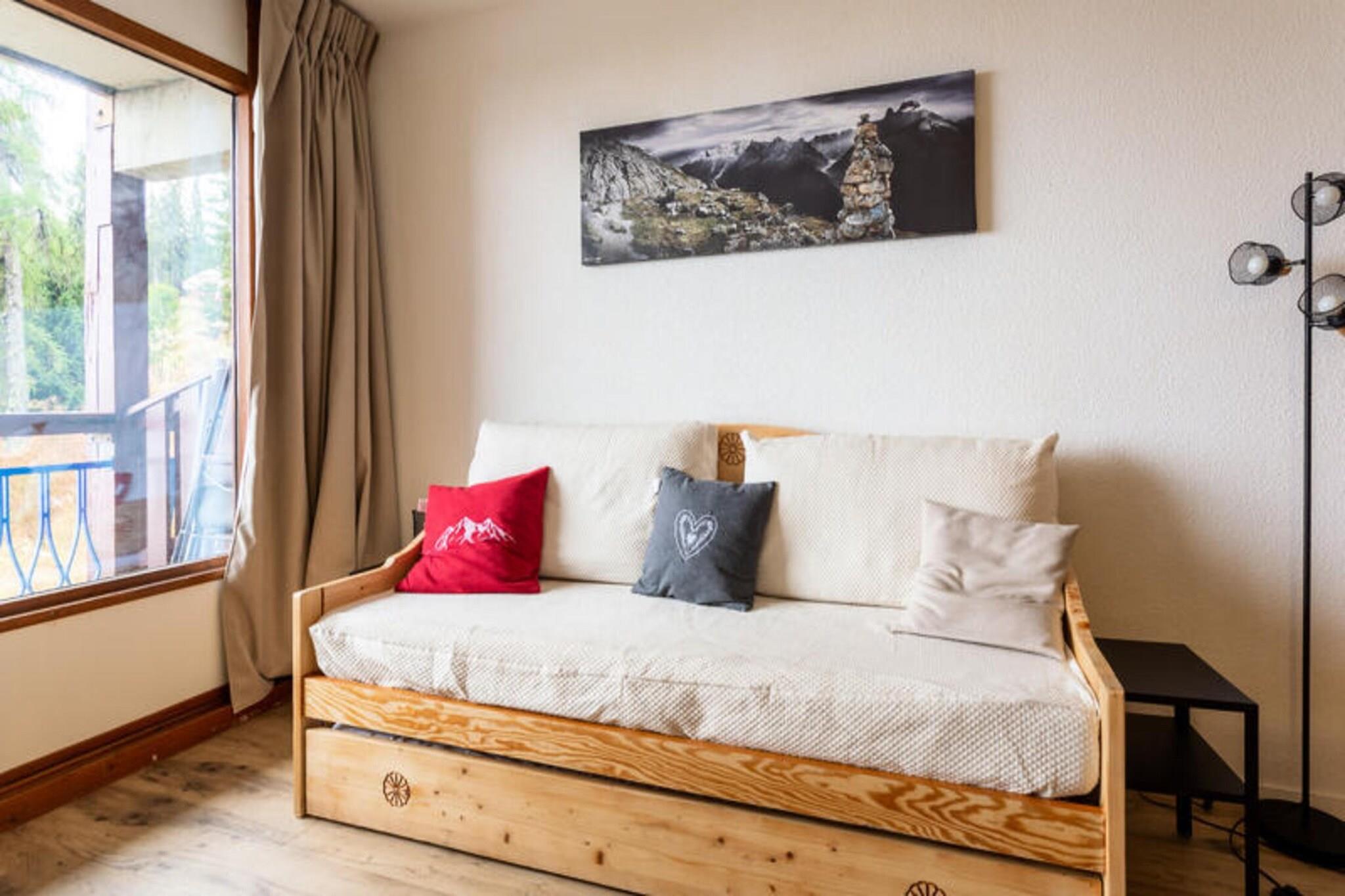 Denne 1-værelses lejlighed i skisportsstedet Arc 1800 tilbyder en bekvem beliggenhed for en skiferie. Lejligheden har plads til op til 4 gæster med en sovesofa (2 senge) og en murphy seng i stuen og 2 enkeltsenge i soveværelset. Det har en balkon med udsigt over bjergene, ideel til at nyde den friske luft og landskabet. Lejligheden er beliggende i Charmettoger-kvarteret, som har en restaurant og en skibutik (sæsonbestemt). En fødevarebutik ligger i det nærliggende Villards-distrikt. Mens maeva Home-bureauet byder gæster velkommen er 15 minutters gang væk, kan lejlighedens specifikke placering i Charmettoger-distriktet (Alliet, Belmont, Vogel, Aiguille Grive, Thuria eller Ruitor-bygningerne) findes i annoncebeskrivelsen. Selve lejligheden indeholder en stue, et køkken, et soveværelse, et badeværelse og et toilet. Det falder ind under maeva Home Selection-mærket, hvilket sikrer velholdte lejligheder med kvalitetsudstyr. Men faciliteter som Wi-Fi, sengelinned, håndklæder og slutrengøring er alle tilgængelige mod et ekstra gebyr. Kæledyr kan også være tilladt i nogle enheder, men kræver yderligere forespørgsel med boligen.