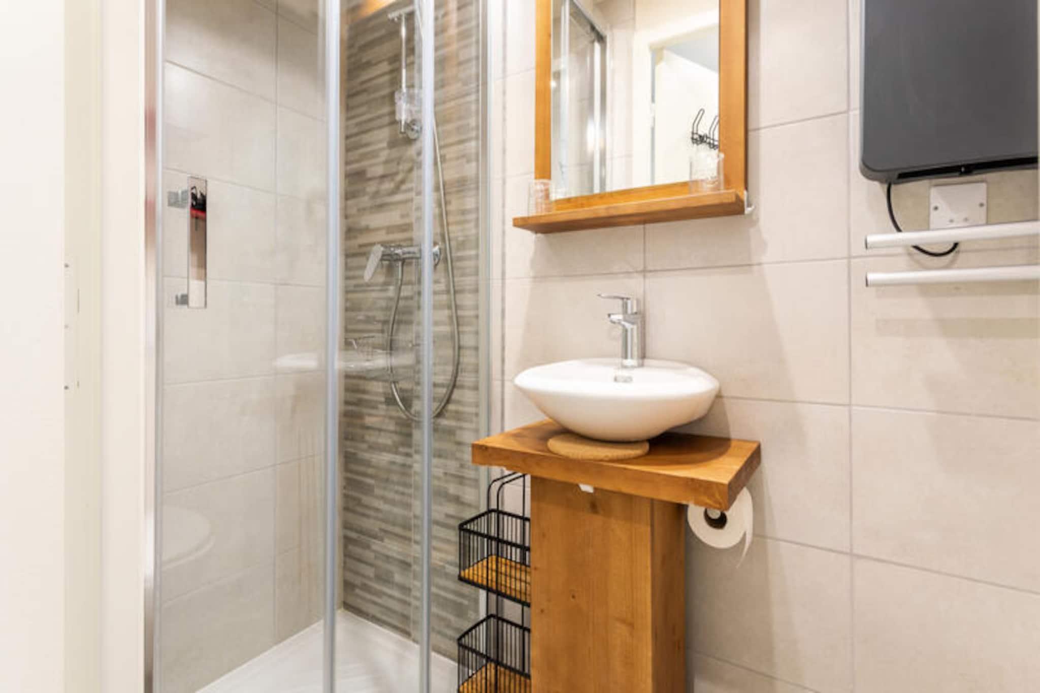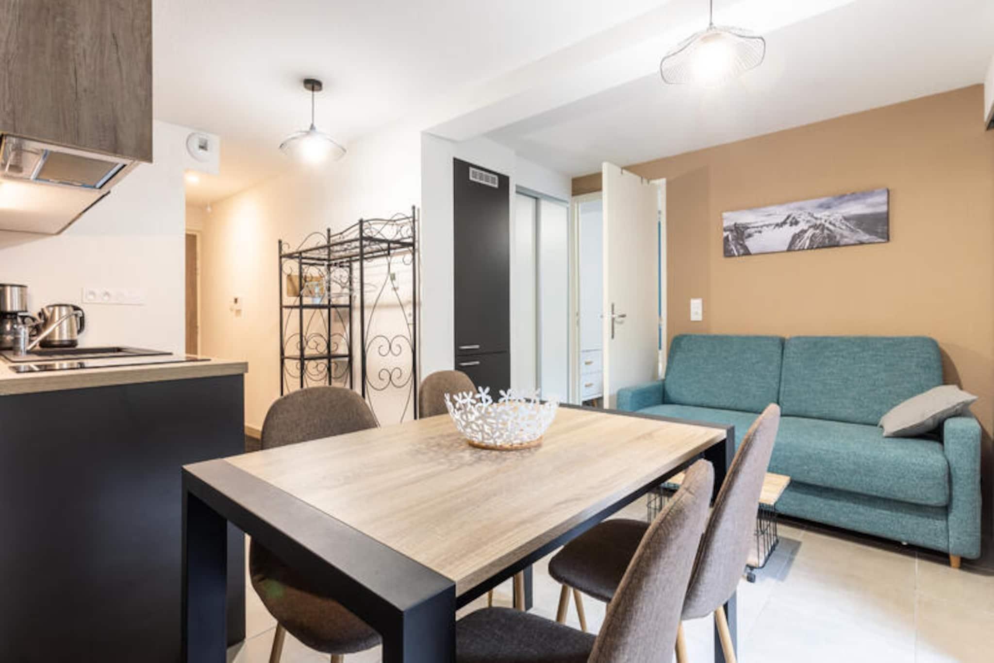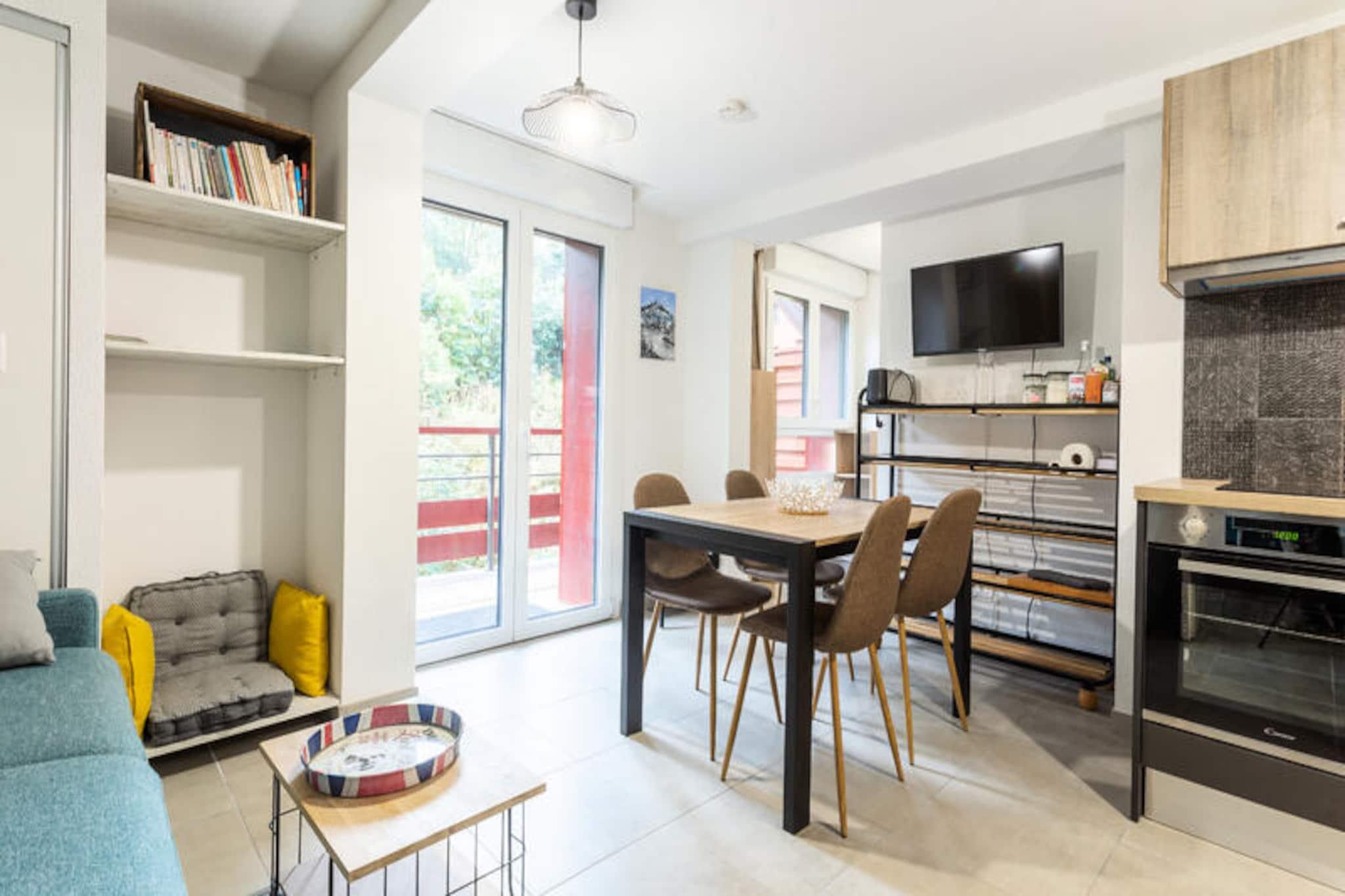 Denne 2-v?relses lejlighed i en fredelig bjergresidens kan rumme op til 5 personer. Den har en stue med en standardsofa, et kabineomr?de og et sovev?relse med 3 enkeltsenge plus en dobbeltseng i kabinen. Lejligheden indeholder ogs? et badev?relse med bruser, elektrisk h?ndkl?det?rrer og et toilet. Nyd en balkon med udsigt over skoven, en parkeringsplads og adgang til v?sentlige faciliteter s?som sengelinned, h?ndkl?der og Wi-Fi (ekstra gebyr). K?ledyr er tilladt mod et ekstra gebyr, og babys?t er tilg?ngelige efter anmodning. Ejendommen ligger i feriestedet Arcs 1800, kun 5 minutters gang fra butikker, restauranter og lokale markeder. Udend?rs elskere vil nyde de n?rliggende vandreture, skil?b og fantastiske landskaber. Med pister kun i kort afstand, giver beliggenheden rig mulighed for b?de afslapning og eventyr, hvilket g?r det til en fantastisk familievenlig destination. Lejligheden har et k?kken i amerikansk stil med moderne apparater s?som k?leskab, komfur og mikroovn for nem tilberedning af m?ltider. Badev?relset er veludstyret med h?rt?rrer og rigelig opbevaring. Boligen tilbyder et roligt milj?, perfekt til at slappe af efter at have udforsket n?rliggende attraktioner.