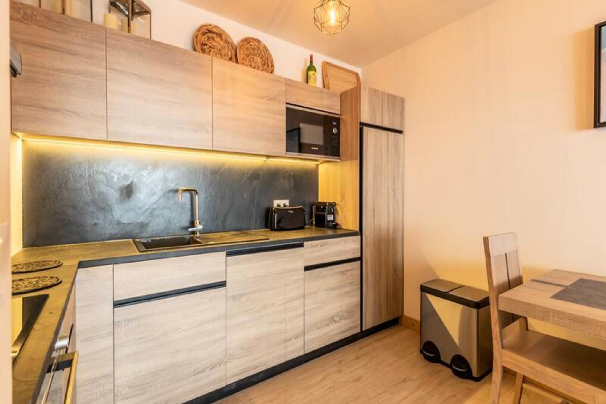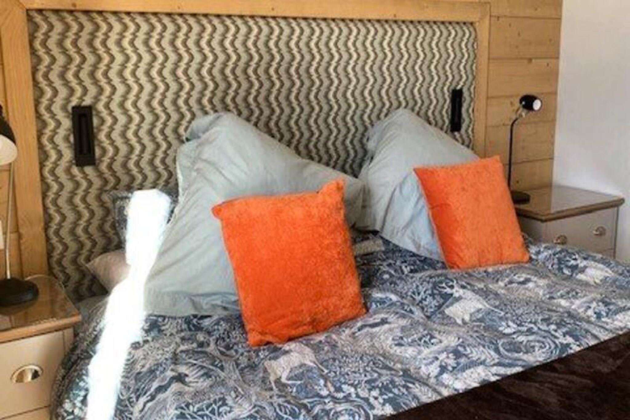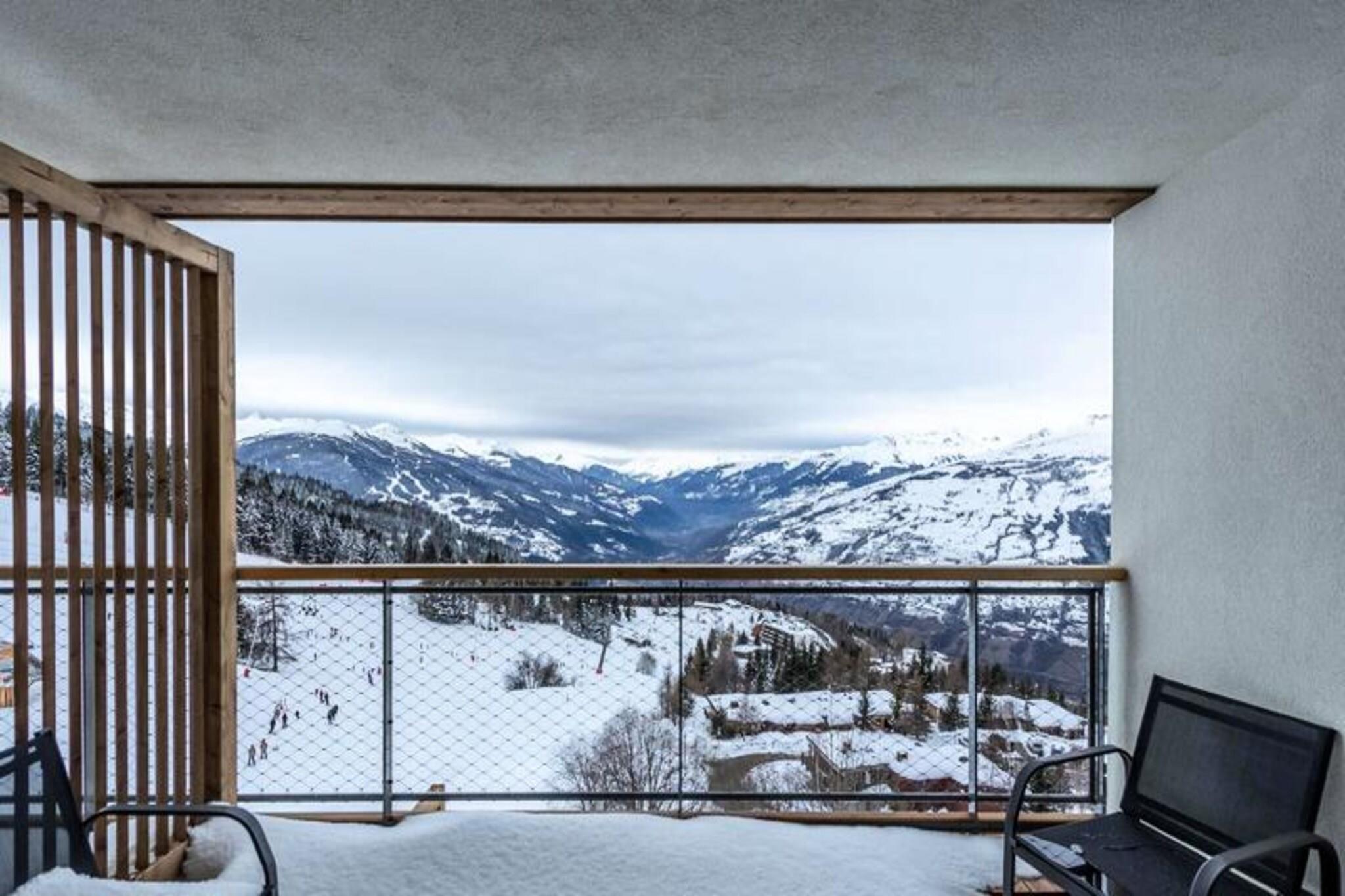 Denne luksuri?se 3-v?relses lejlighed i en 4-stjernet bolig kan rumme op til 6 g?ster og tilbyder en fantastisk panoramaudsigt over pisterne, dalen og snekl?dte bjerge. Lejligheden er ikke-ryger, og k?ledyr er ikke tilladt. Den har et sovev?relse med dobbeltseng med eget brusebad, et sovev?relse med to enkeltsenge (som kan laves om til en dobbeltseng) og et bjerghj?rne med k?jesenge. Senget?j og h?ndkl?der medf?lger, og lejligheden har 2 overd?kkede parkeringspladser. Ejendommen er beliggende i hjertet af Les Arcs 1600 og tilbyder direkte adgang til Cachette-bakken og Paradiski-skiomr?det. N?rliggende attraktioner omfatter Club Med-resortet og Arcs 1800, med gratis transport mellem stationen, der forbinder dig til regionen. Efter en dag p? ski kan du nyde den pulserende afterski-atmosf?re og udforske lokale caf?er, butikker og markeder. Den fantastiske syd-vestlige orientering garanterer masser af solskin og betagende solnedgange. Lejligheden er udstyret med et moderne k?kken med induktionskomfur, opvaskemaskine, kombineret ovn/mikroovn og kaffemaskiner. En rummelig stue med tv f?rer til en m?bleret terrasse p? 9 m². Yderligere faciliteter inkluderer gulvvarme, WIFI og et skiskab med direkte adgang til pisterne. G?sterne kan ogs? nyde wellness-omr?det med swimmingpool, sauna, hammam, fitnesscenter og solarium.