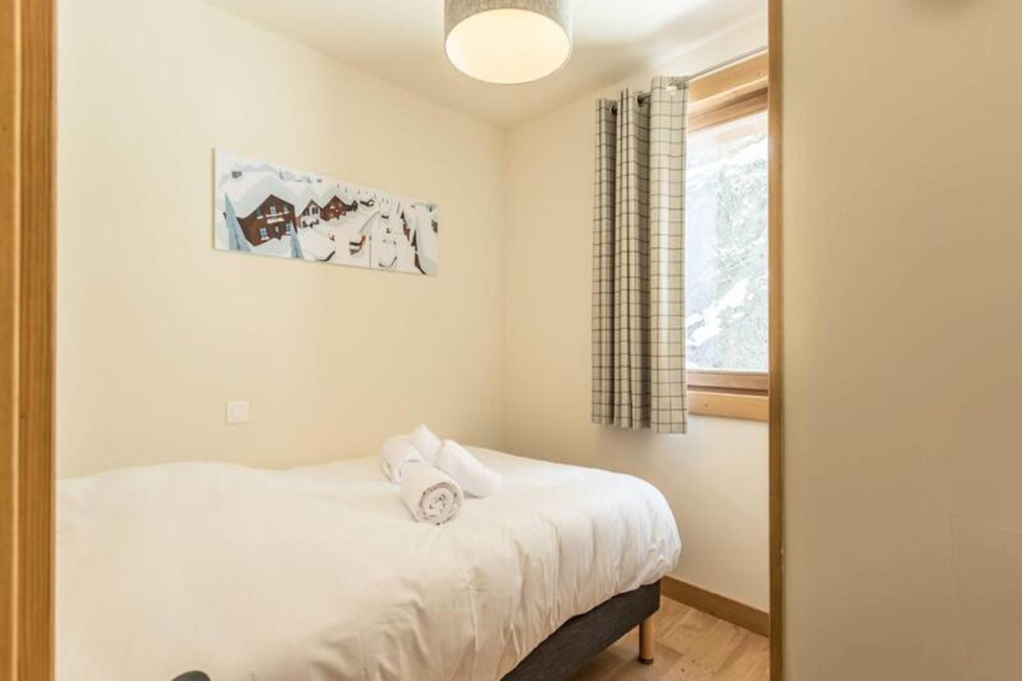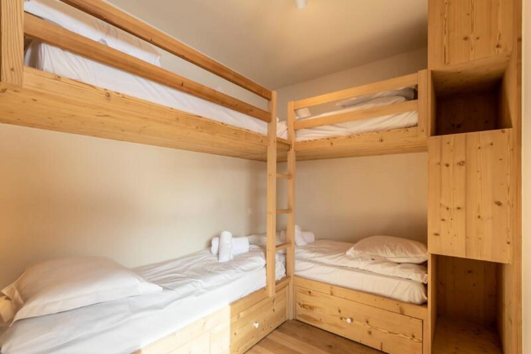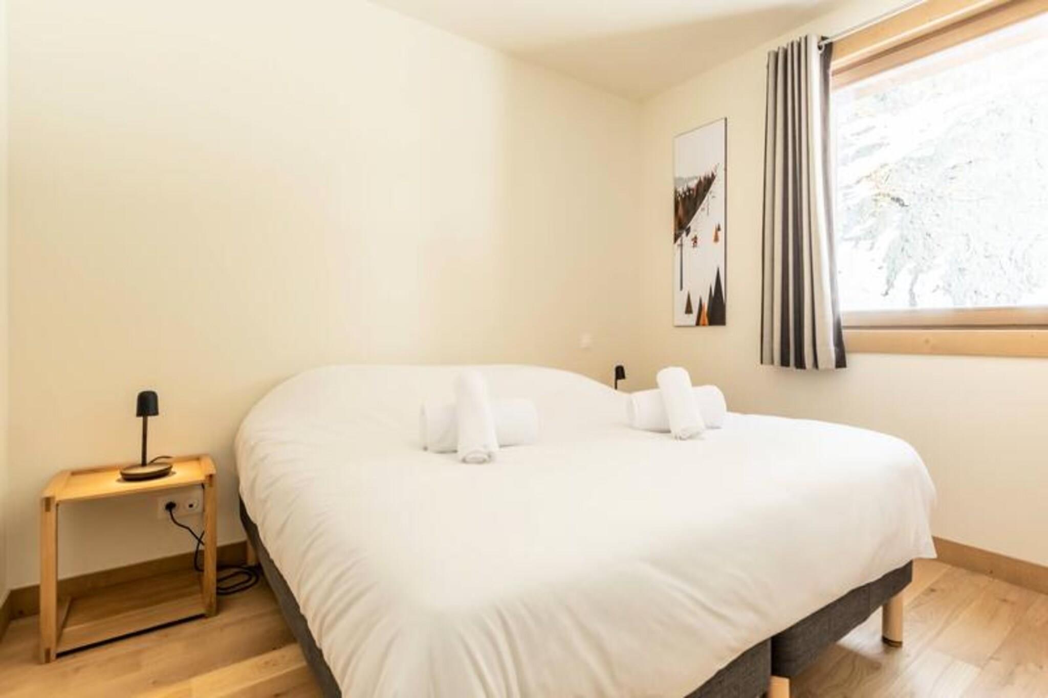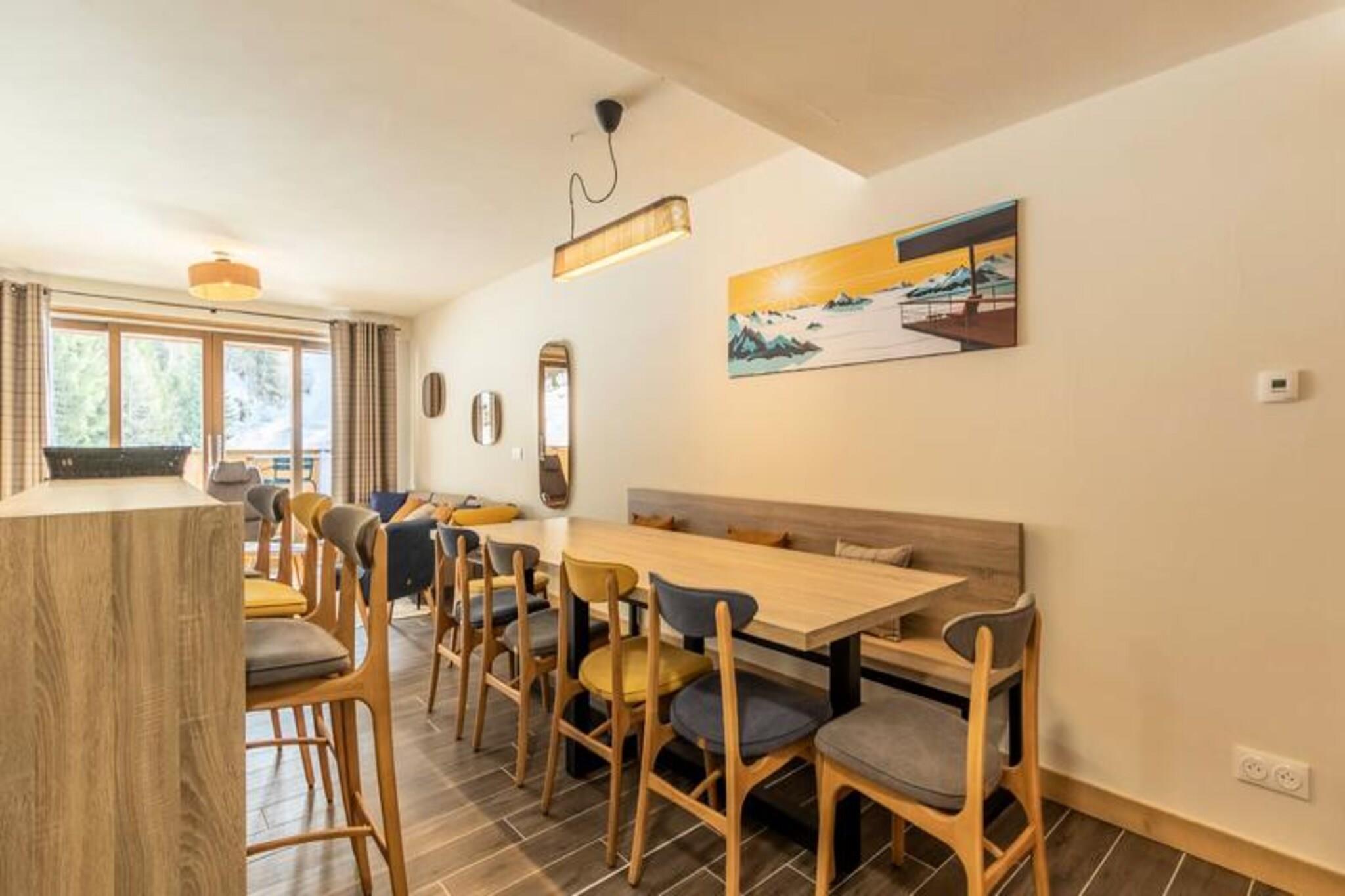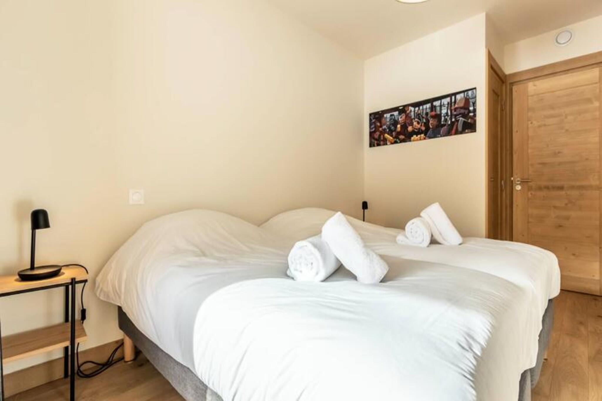 Denne luksuriøse 6-værelses lejlighed, beliggende ved foden af ??pisterne, byder på 106 m² plads til op til 12 personer. Den har 1 soveværelse med dobbeltseng (180x200 cm), 2 enkeltsenge (90x190 cm), 1 dobbeltseng (180x200 cm), 2 sæt køjesenge (i alt 4 senge) og et bjerghjørne med en dobbeltseng (140x190 cm). Lejligheden er ikke-ryger og kæledyrsfri, med gulvvarme, opredte senge ved ankomsten og håndklæder inkluderet. Tre overdækkede parkeringspladser er til rådighed. Med en førsteklasses beliggenhed direkte på Cachette-skråningen tilbyder denne lejlighed ski-in/ski-out adgang og en fantastisk panoramaudsigt over bjergene og dalen. Det er centralt beliggende i Paradiski-regionen, med nem adgang til Arcs 1800, 1950 og 2000. Udforsk nærliggende caféer, restauranter og købmanden French Touch, der tilbyder takeaway-måltider og leveringstjenester. Lejligheden har et fuldt udstyret køkken med induktionskomfur, opvaskemaskine, mikroovn, køleskab og kaffemaskine. Nyd en rummelig stue med et 65" tilsluttet tv med Apple TV og Netflix. Boligen tilbyder adgang til et wellness-område med indendørs pool, spa, sauna og fitnesscenter samt skiskabe og concierge-tjenester.