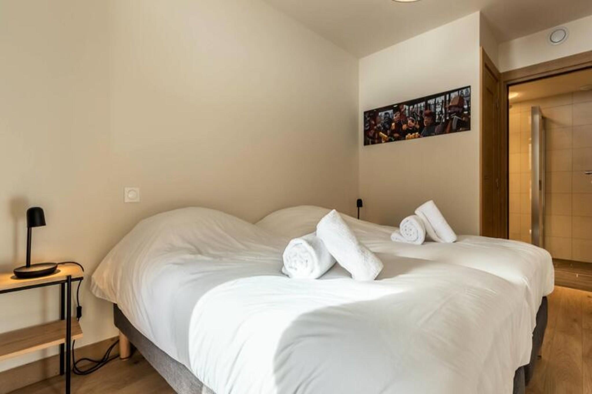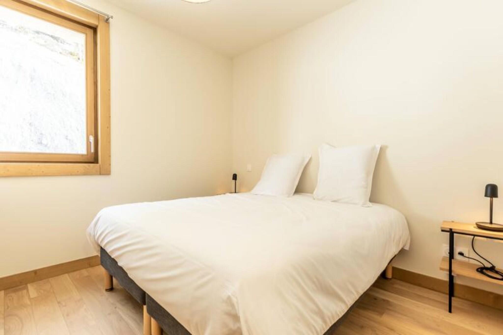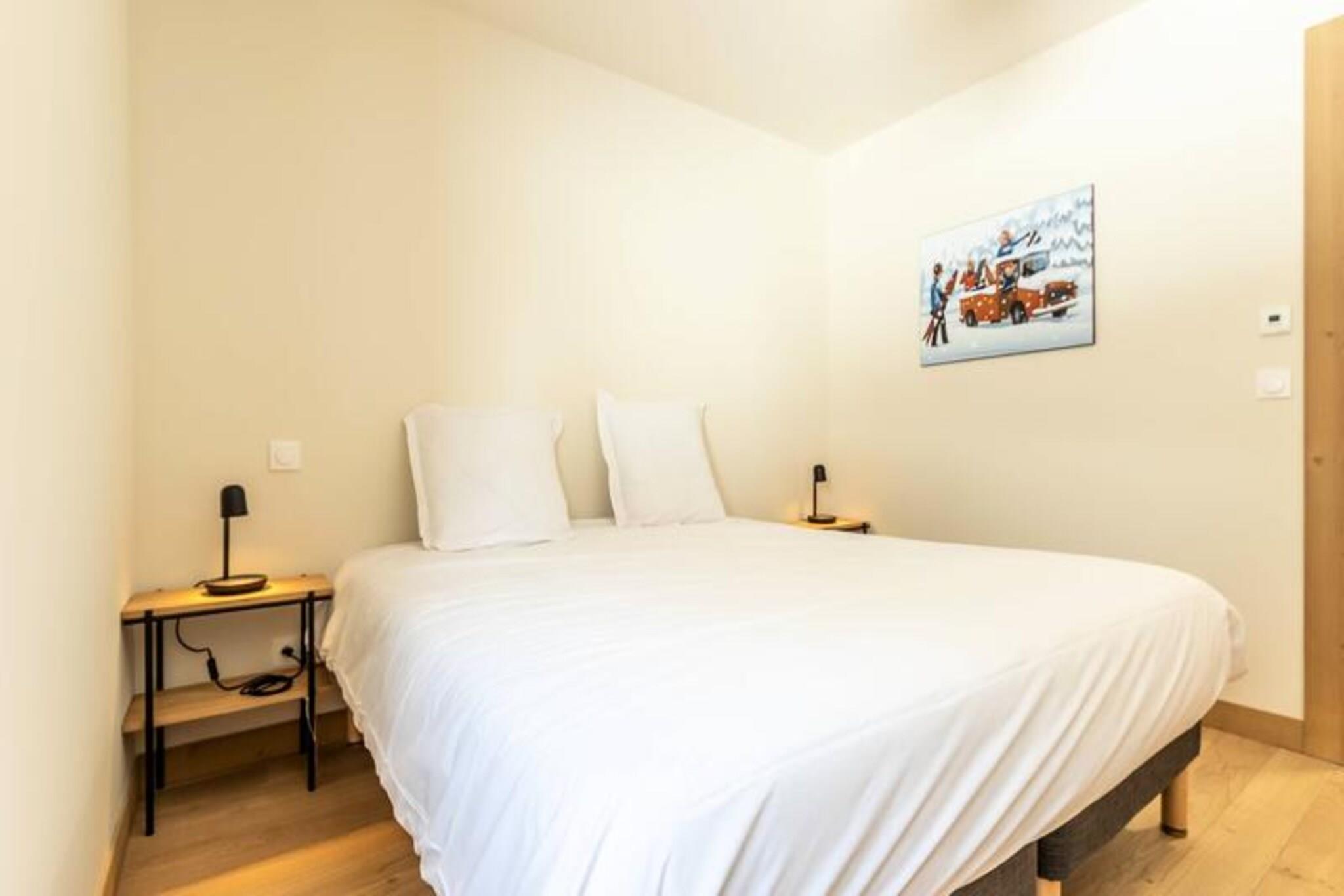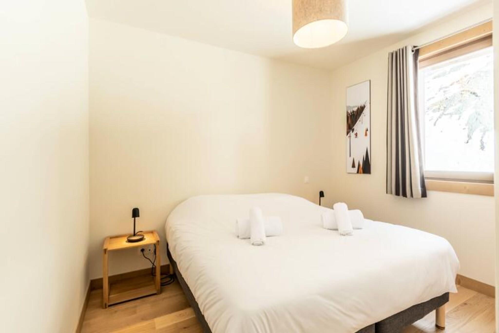 Denne luksuriøse 6-værelses lejlighed, beliggende ved foden af ??pisterne, byder på 106 m² plads til op til 12 personer. Den har 1 soveværelse med dobbeltseng (180x200 cm), 2 enkeltsenge (90x190 cm), 1 dobbeltseng (180x200 cm), 2 sæt køjesenge (i alt 4 senge) og et bjerghjørne med en dobbeltseng (140x190 cm). Lejligheden er ikke-ryger og kæledyrsfri, med gulvvarme, opredte senge ved ankomsten og håndklæder inkluderet. Tre overdækkede parkeringspladser er til rådighed. Med en førsteklasses beliggenhed direkte på Cachette-skråningen tilbyder denne lejlighed ski-in/ski-out adgang og en fantastisk panoramaudsigt over bjergene og dalen. Det er centralt beliggende i Paradiski-regionen, med nem adgang til Arcs 1800, 1950 og 2000. Udforsk nærliggende caféer, restauranter og købmanden French Touch, der tilbyder takeaway-måltider og leveringstjenester. Lejligheden har et fuldt udstyret køkken med induktionskomfur, opvaskemaskine, mikroovn, køleskab og kaffemaskine. Nyd en rummelig stue med et 65" tilsluttet tv med Apple TV og Netflix. Boligen tilbyder adgang til et wellness-område med indendørs pool, spa, sauna og fitnesscenter samt skiskabe og concierge-tjenester.