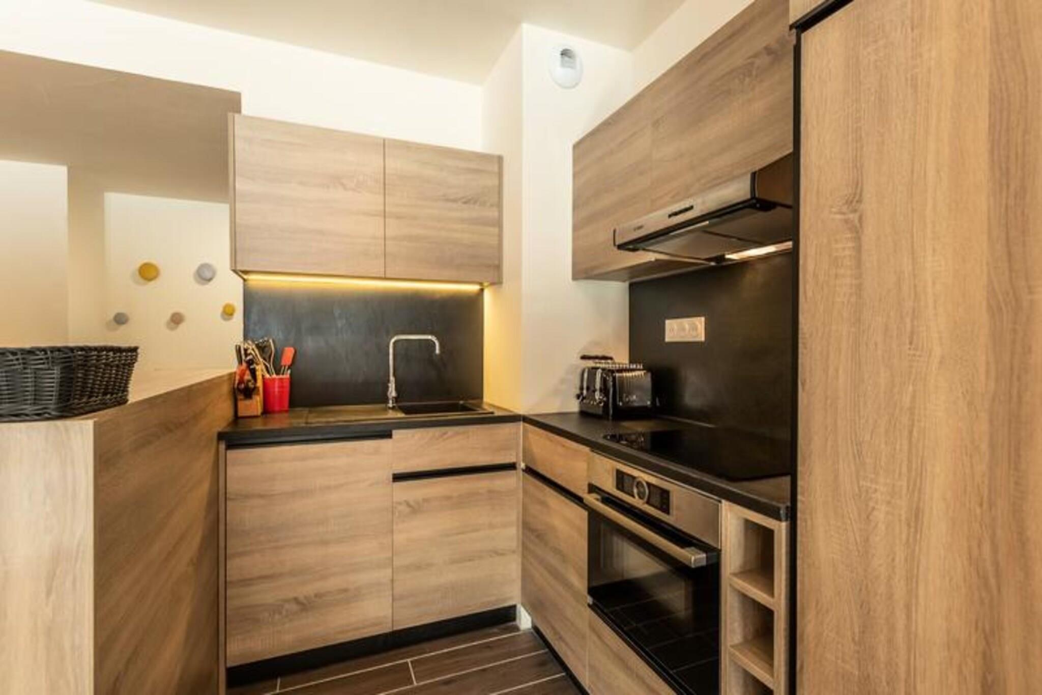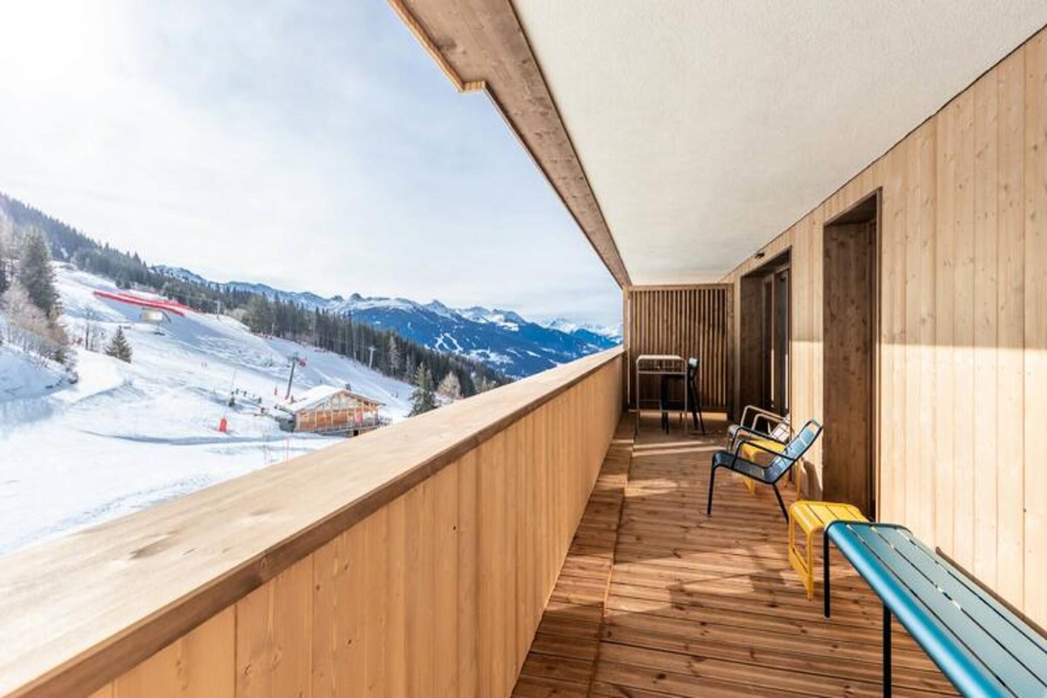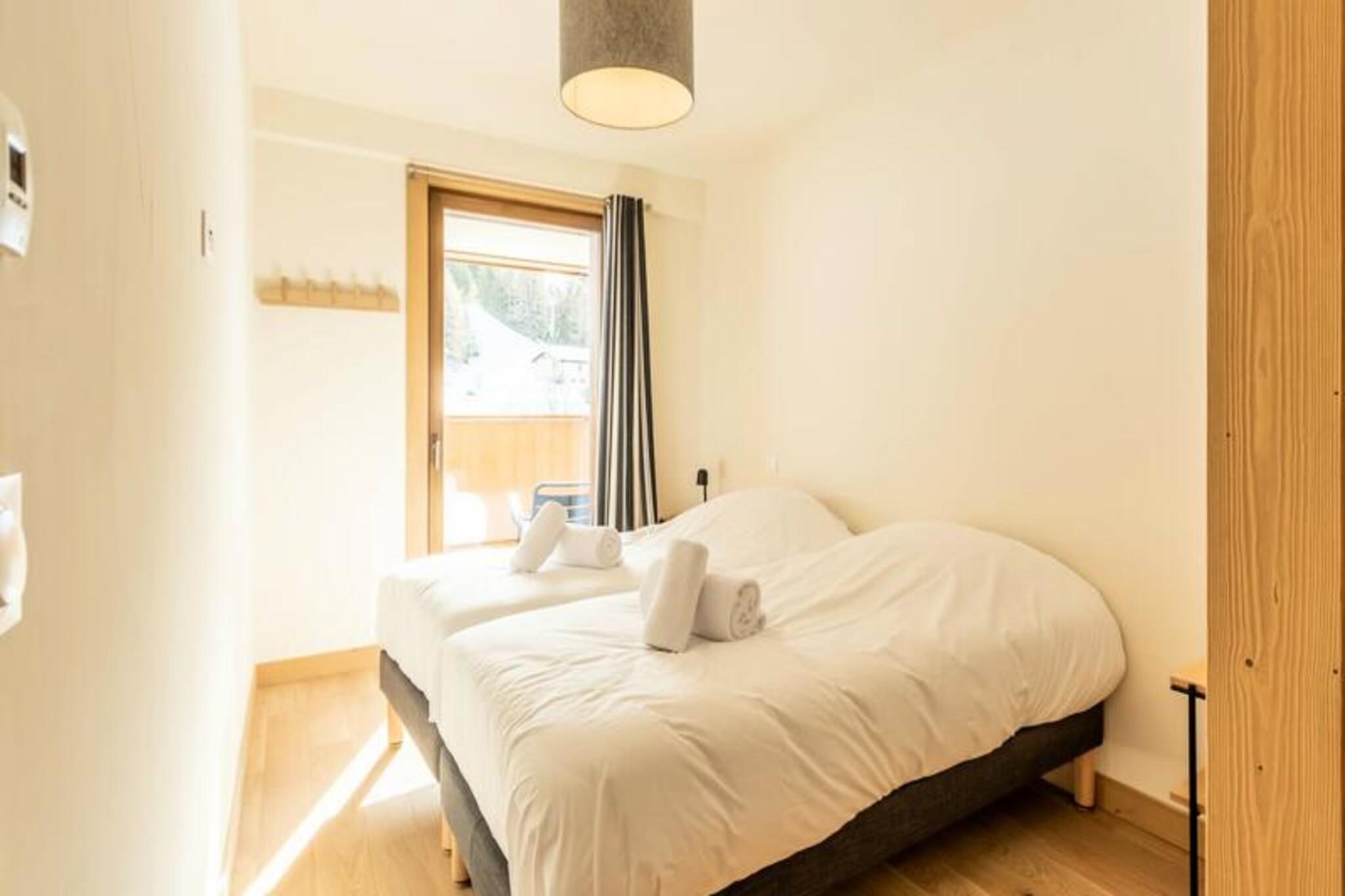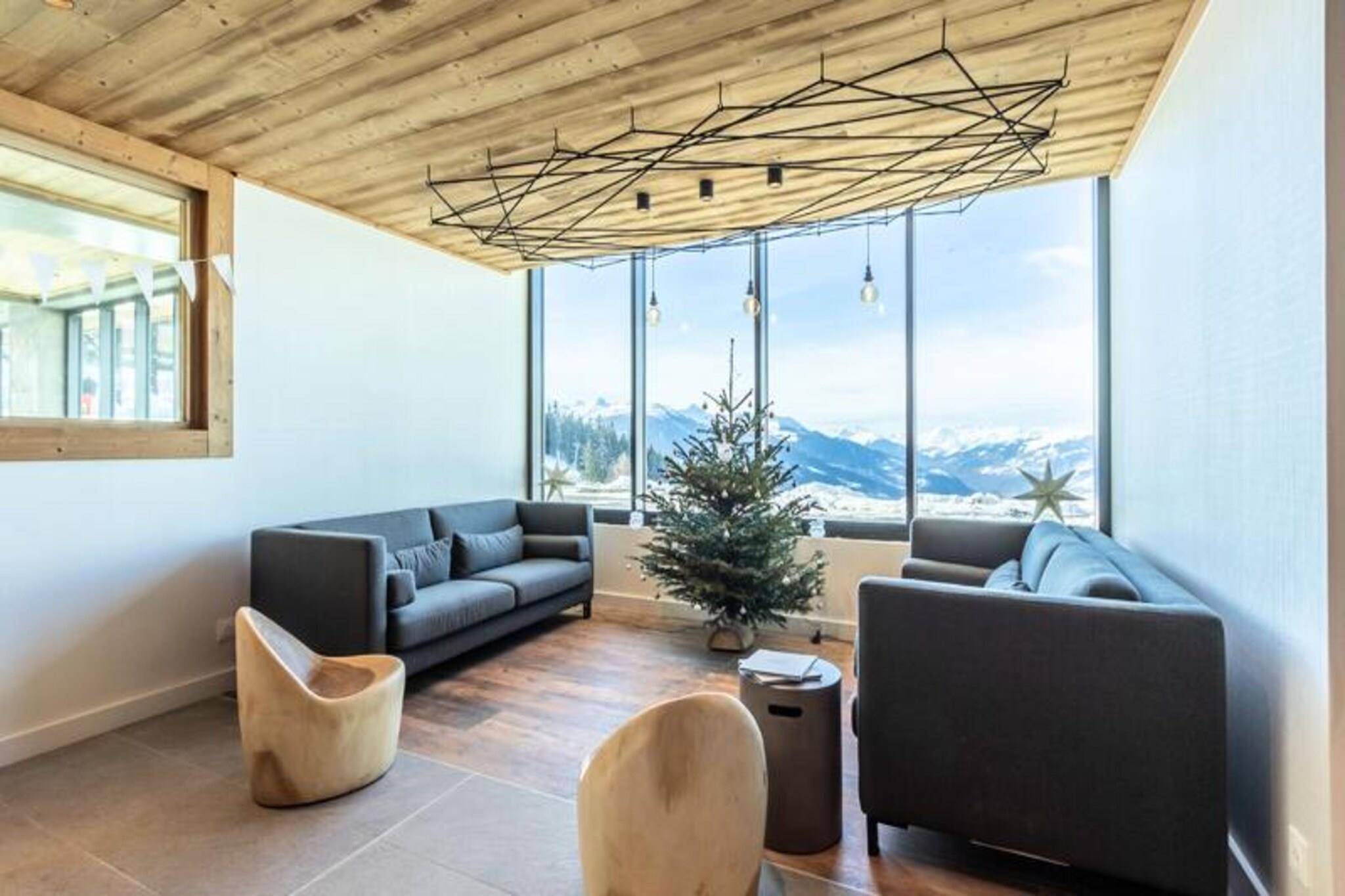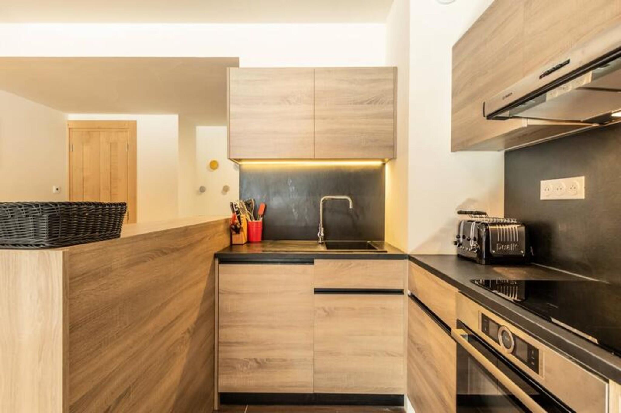 Denne luksuriøse 6-værelses lejlighed, beliggende ved foden af ??pisterne, byder på 106 m² plads til op til 12 personer. Den har 1 soveværelse med dobbeltseng (180x200 cm), 2 enkeltsenge (90x190 cm), 1 dobbeltseng (180x200 cm), 2 sæt køjesenge (i alt 4 senge) og et bjerghjørne med en dobbeltseng (140x190 cm). Lejligheden er ikke-ryger og kæledyrsfri, med gulvvarme, opredte senge ved ankomsten og håndklæder inkluderet. Tre overdækkede parkeringspladser er til rådighed. Med en førsteklasses beliggenhed direkte på Cachette-skråningen tilbyder denne lejlighed ski-in/ski-out adgang og en fantastisk panoramaudsigt over bjergene og dalen. Det er centralt beliggende i Paradiski-regionen, med nem adgang til Arcs 1800, 1950 og 2000. Udforsk nærliggende caféer, restauranter og købmanden French Touch, der tilbyder takeaway-måltider og leveringstjenester. Lejligheden har et fuldt udstyret køkken med induktionskomfur, opvaskemaskine, mikroovn, køleskab og kaffemaskine. Nyd en rummelig stue med et 65" tilsluttet tv med Apple TV og Netflix. Boligen tilbyder adgang til et wellness-område med indendørs pool, spa, sauna og fitnesscenter samt skiskabe og concierge-tjenester.